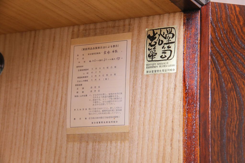 ラフジュ工房> ワードローブ・ロッカー> ワードローブ > 中古 伝統民芸家具 岩谷堂箪笥 存在感を放つ上質なワードローブ(洋服タンス、洋服箪笥)