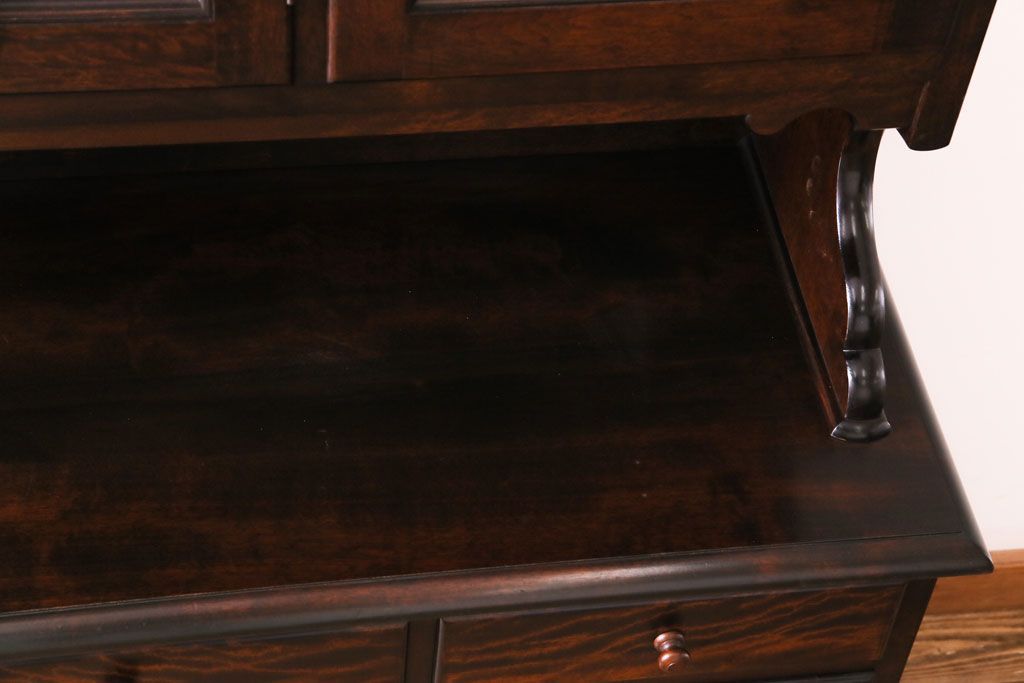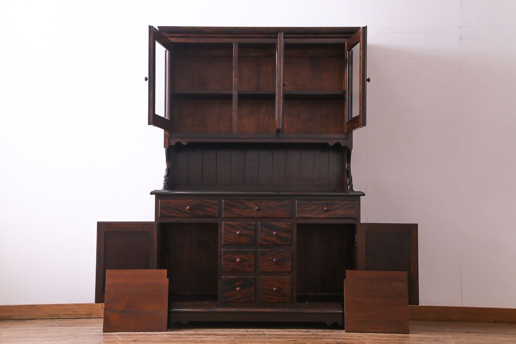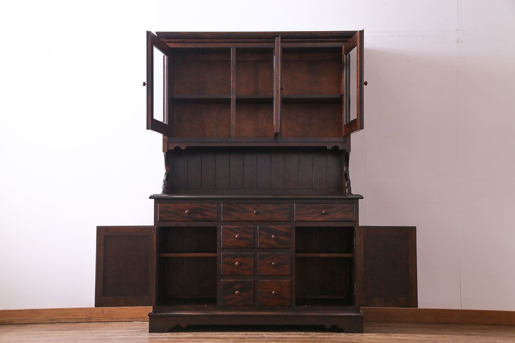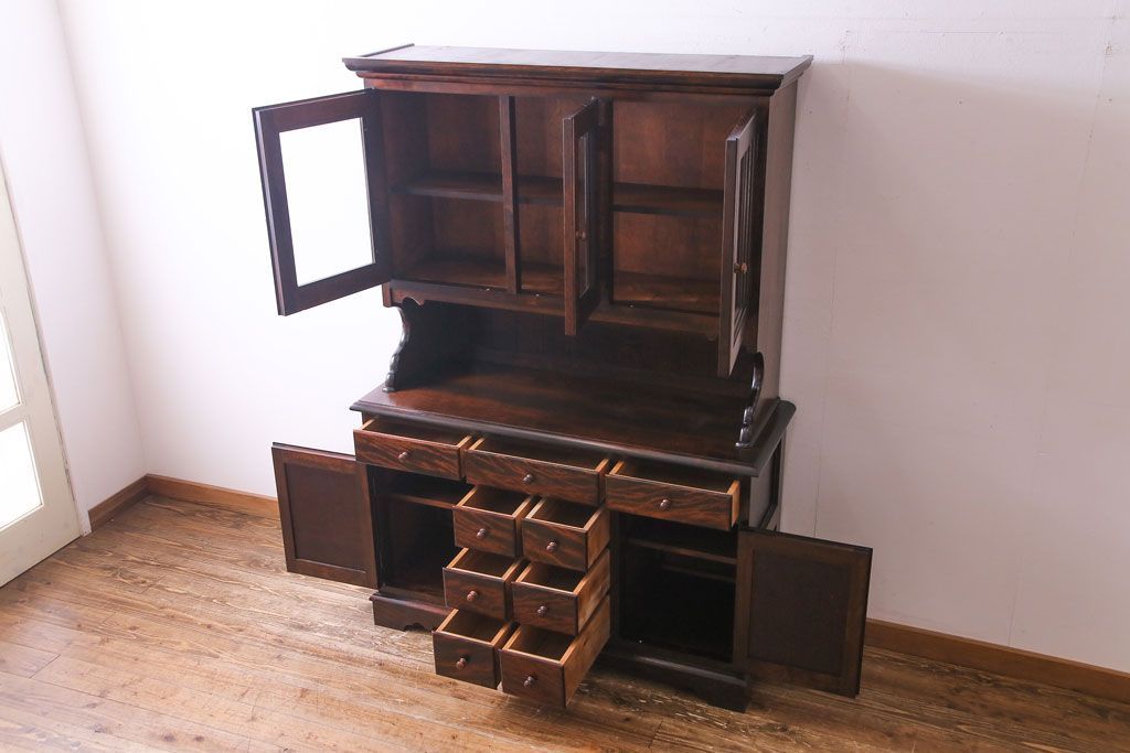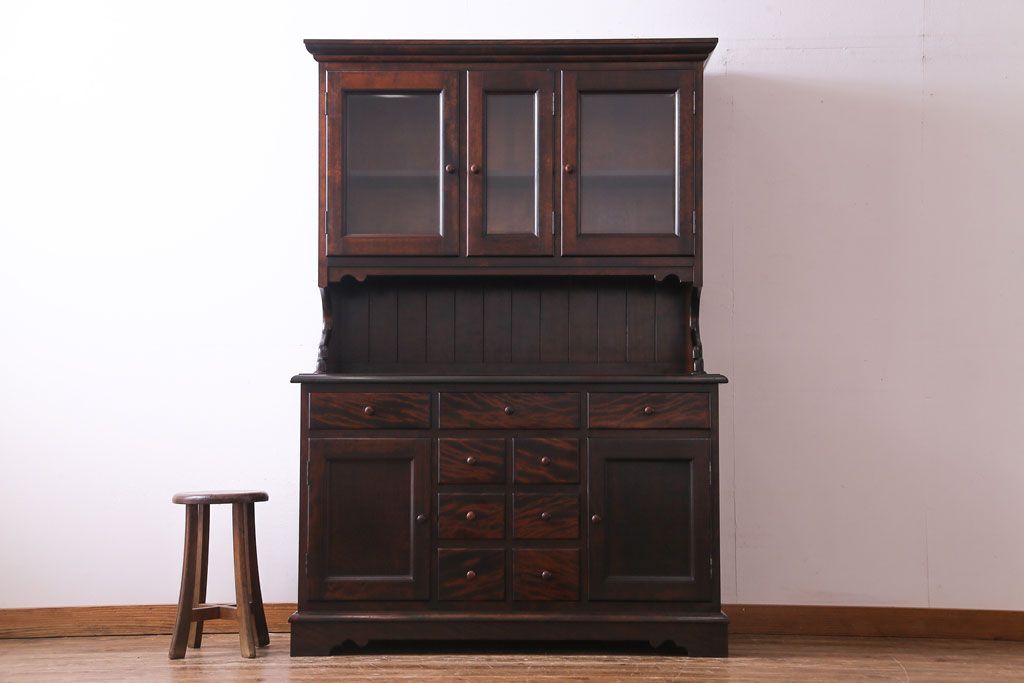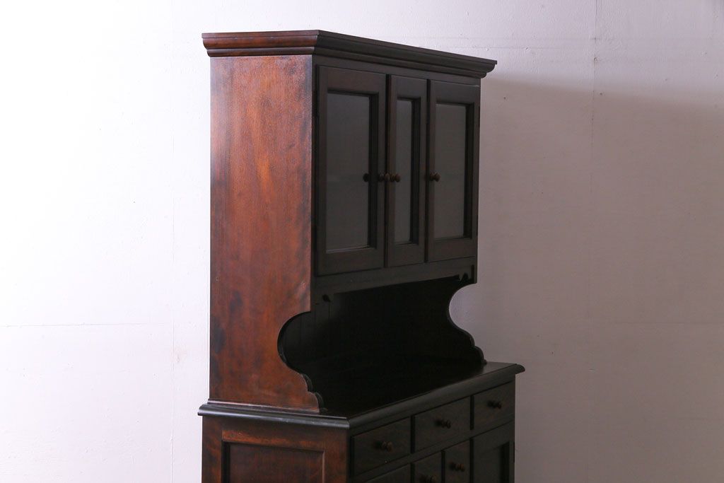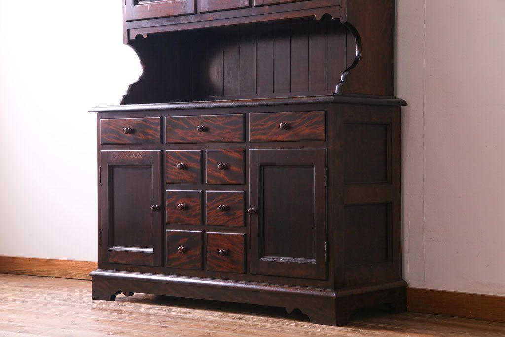 ラフジュ工房> キャビネット・戸棚> 食器棚・カップボード > 中古 松本民芸家具 シックな雰囲気が魅力的なC型食器棚(飾り棚、収納棚、キャビネット)(定価約66万円)(1)