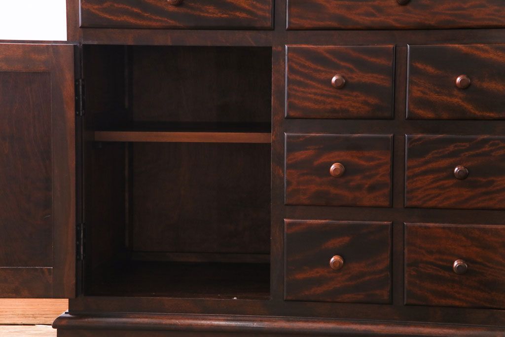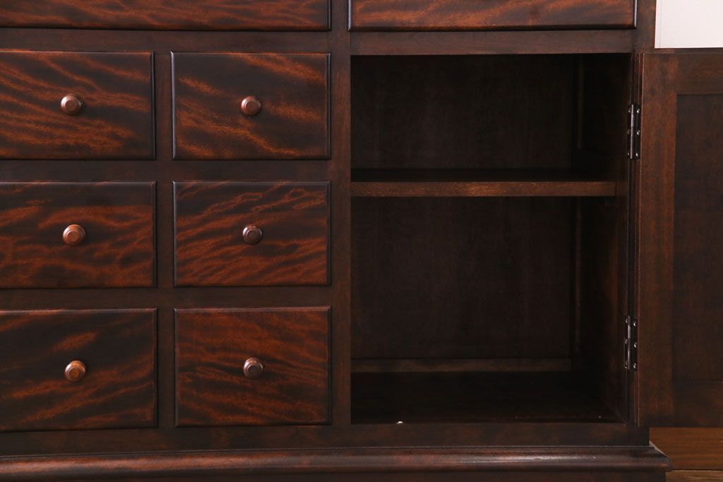 ラフジュ工房> 民芸家具 > 中古 松本民芸家具 シックな雰囲気が魅力的なC型食器棚(飾り棚、収納棚、キャビネット)(定価約66万円)(1)