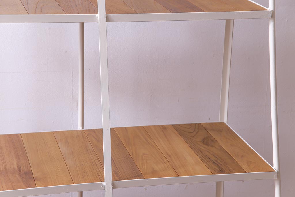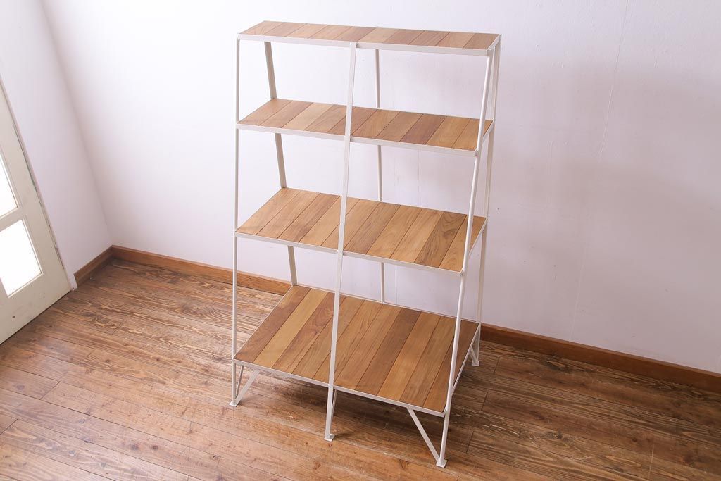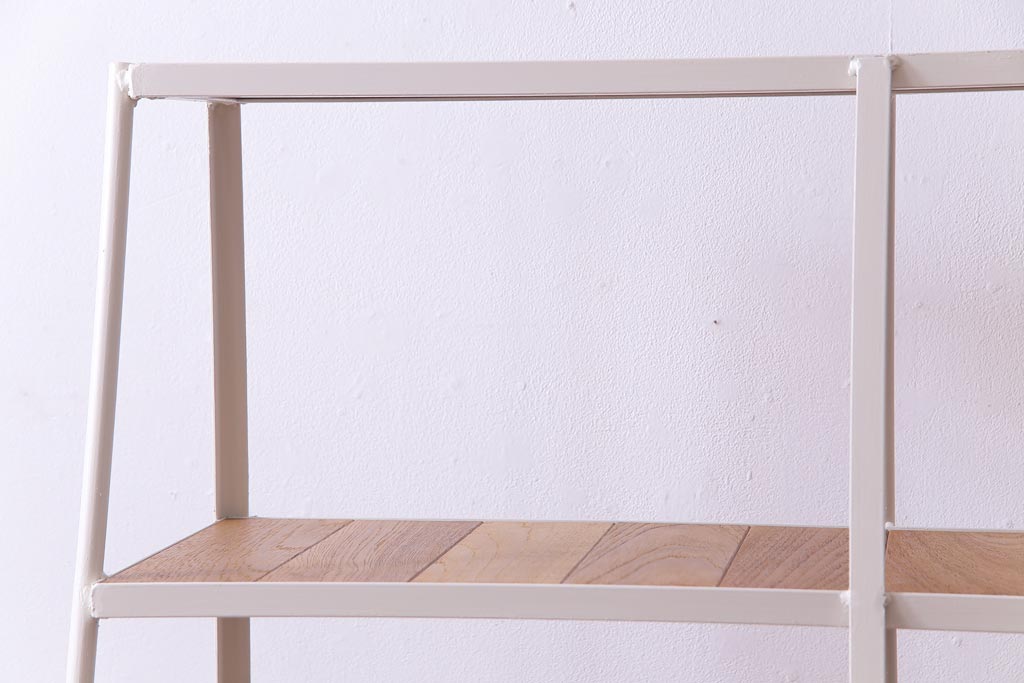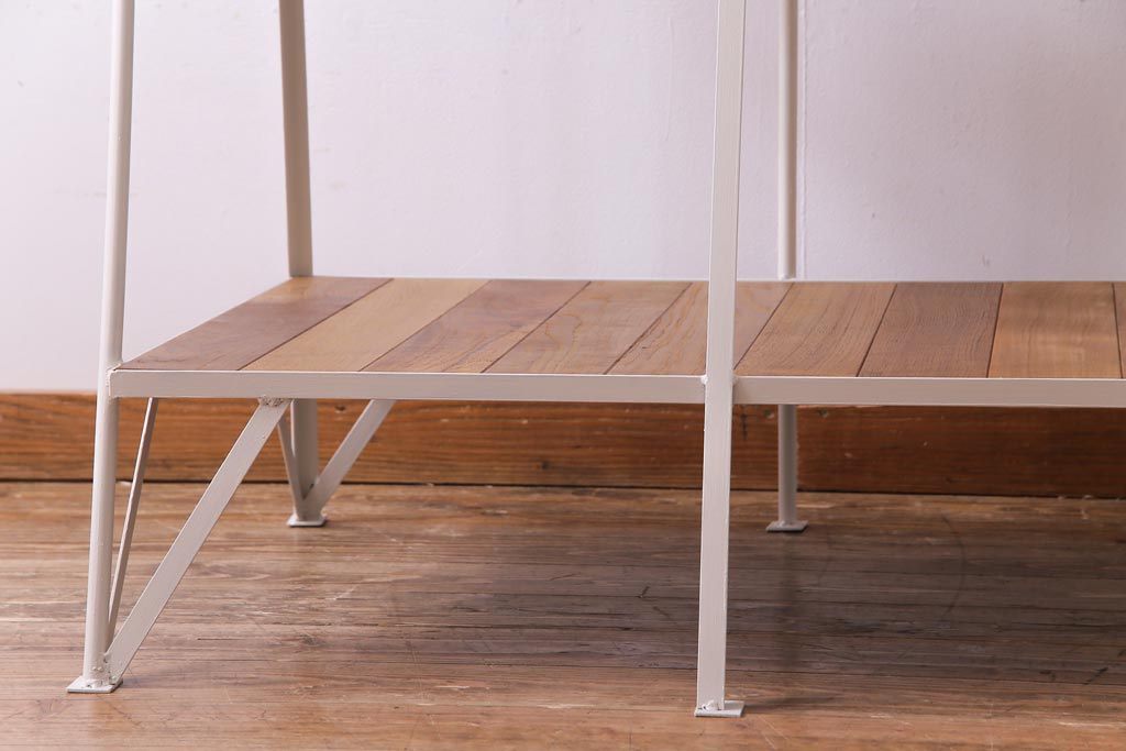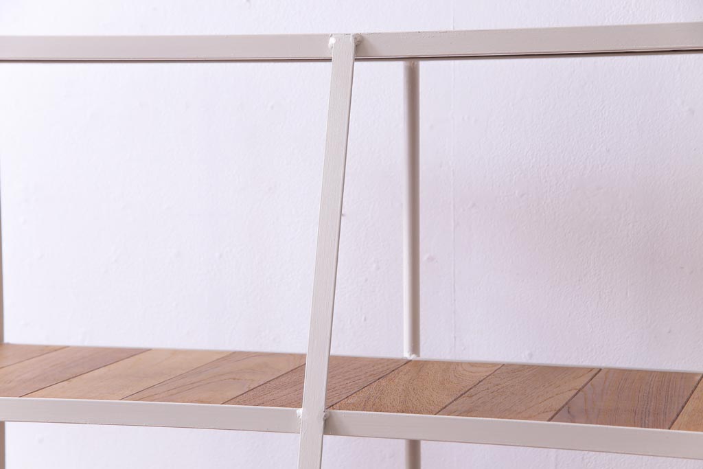 ラフジュ工房オリジナル チーク無垢材 ペイント台形アイアンラック(飾り棚、陳列棚)