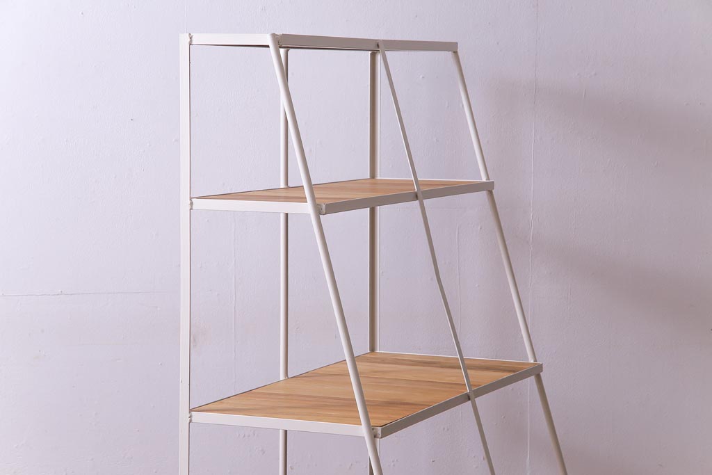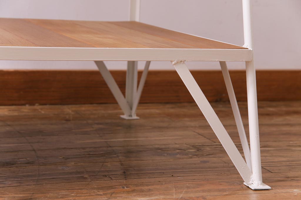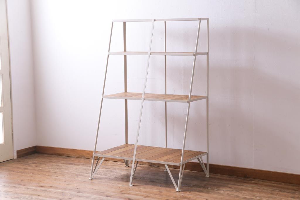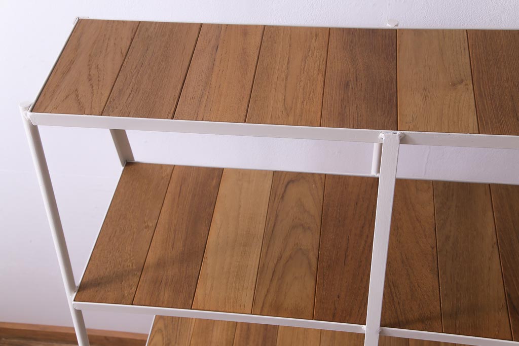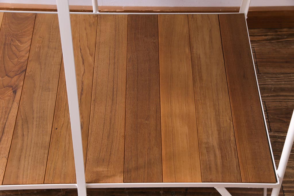 ラフジュ工房オリジナル チーク無垢材 ペイント台形アイアンラック(飾り棚、陳列棚)