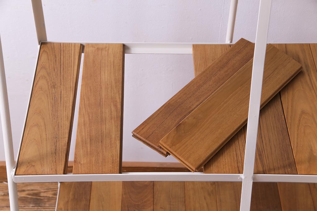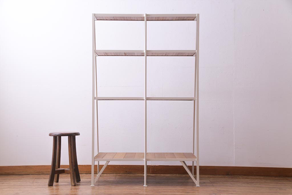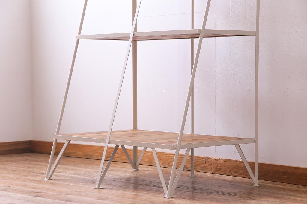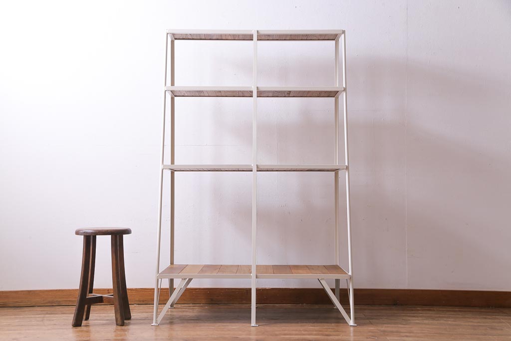 ラフジュ工房> 店舗什器 > ラフジュ工房オリジナル チーク無垢材 ペイント台形アイアンラック(飾り棚、陳列棚)
