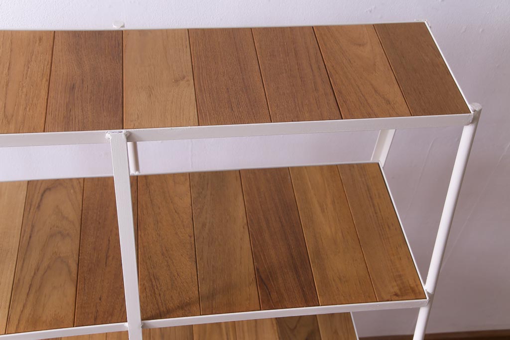 ラフジュ工房> オープンラック・シェルフ > ラフジュ工房オリジナル チーク無垢材 ペイント台形アイアンラック(飾り棚、陳列棚)