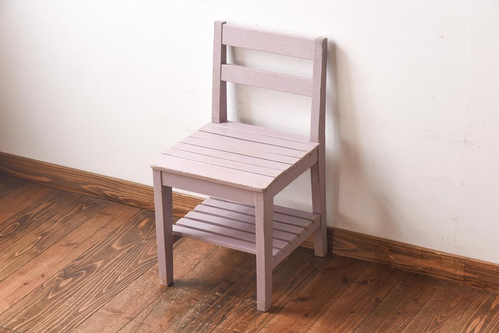 ペイント家具 棚付き ナチュラルスタイルにぴったりなチェア(キッズチェア、椅子、イス、板座チェア)(R-031056)(2)
