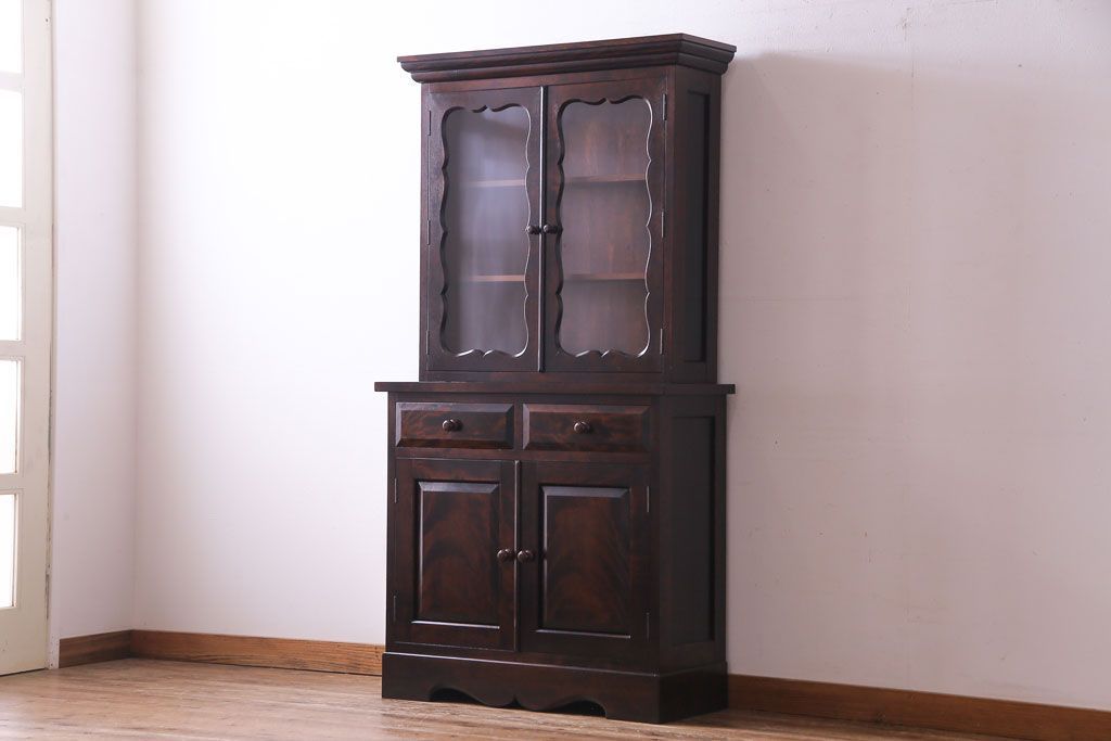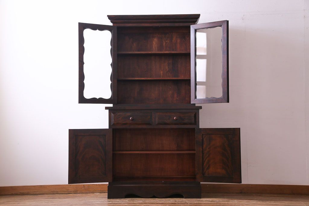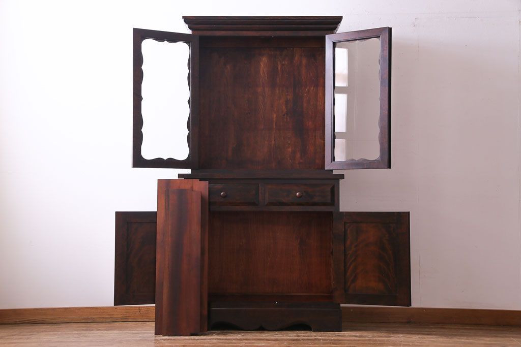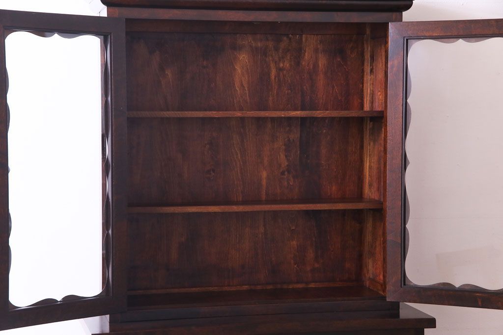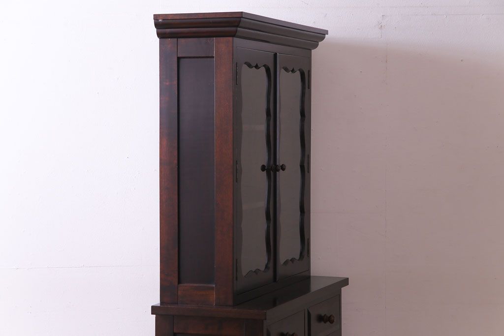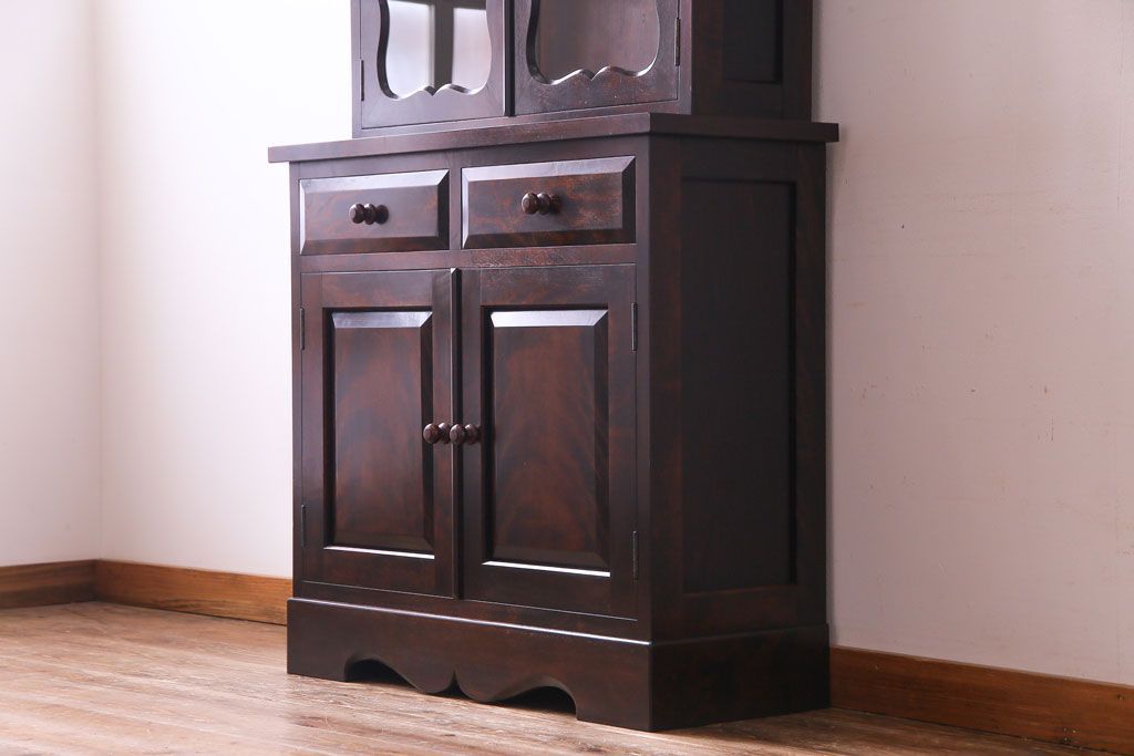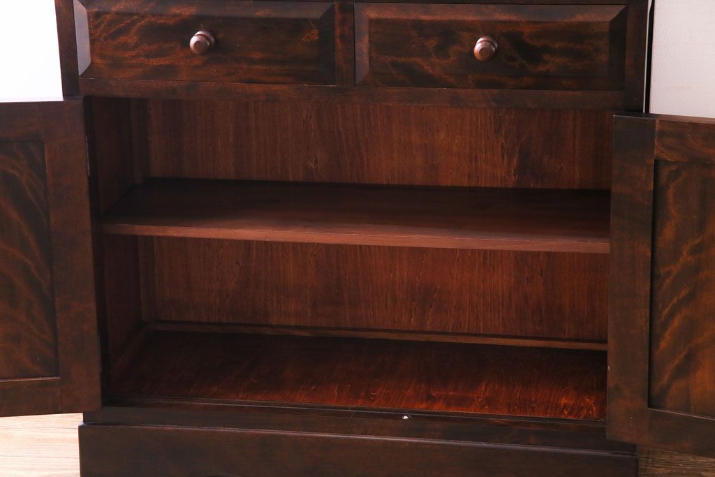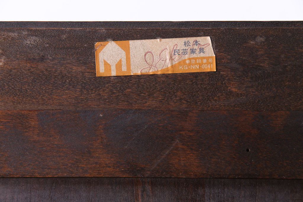 ラフジュ工房> キャビネット・戸棚> 食器棚・カップボード > 中古 松本民芸家具 #58型 お洒落な扉が印象的な食器棚(カップボード、収納棚)