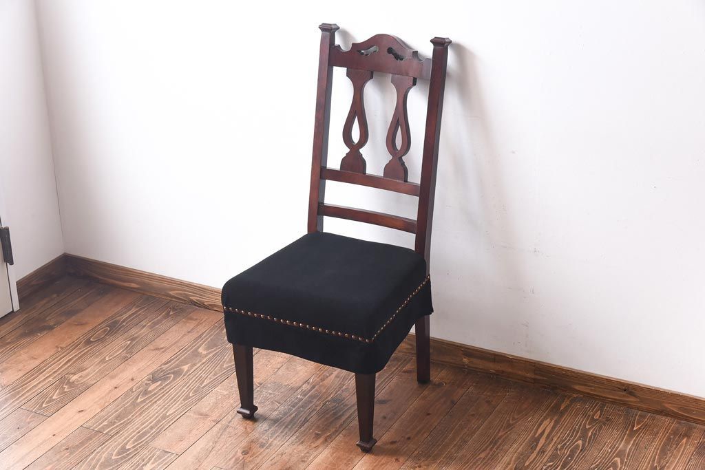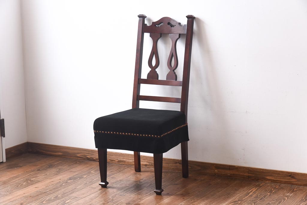 アンティーク家具 イギリスアンティーク オーク材 クラシカルな佇まいが魅力のダイニングチェア(ワークチェア、椅子)(1)