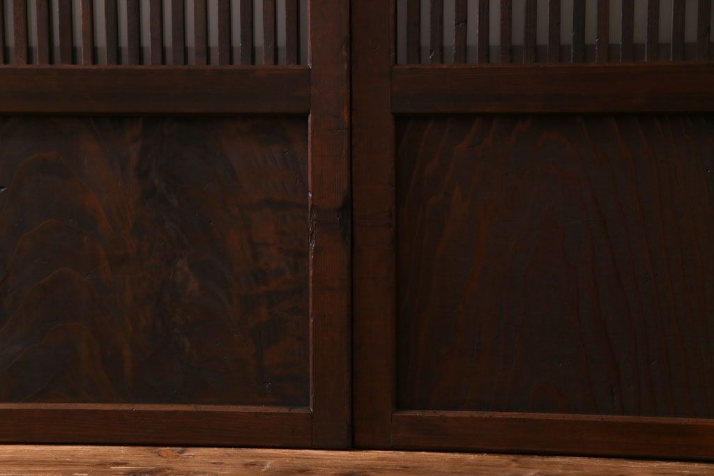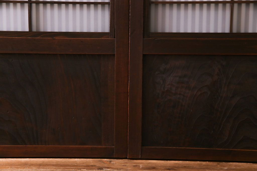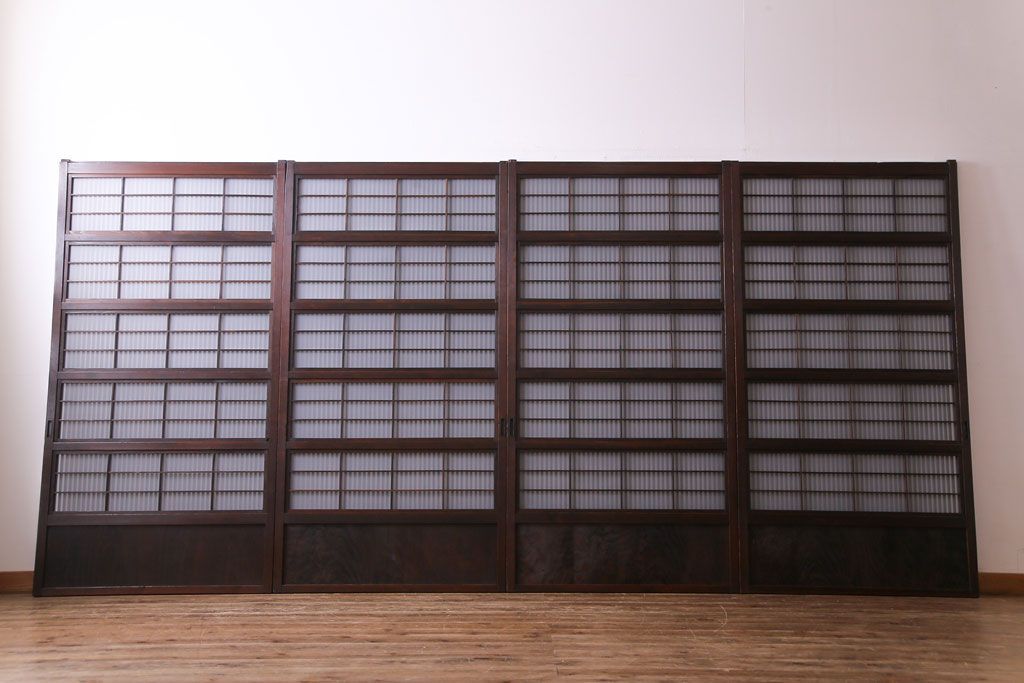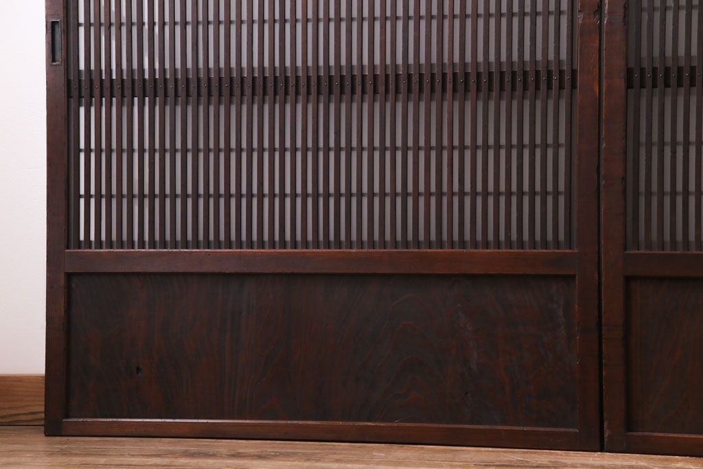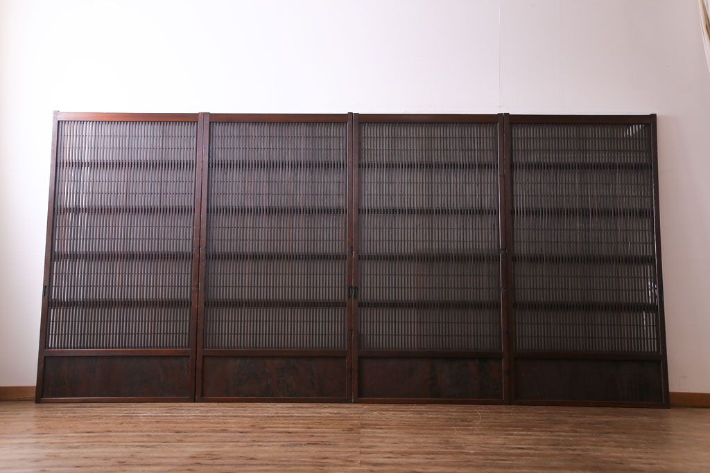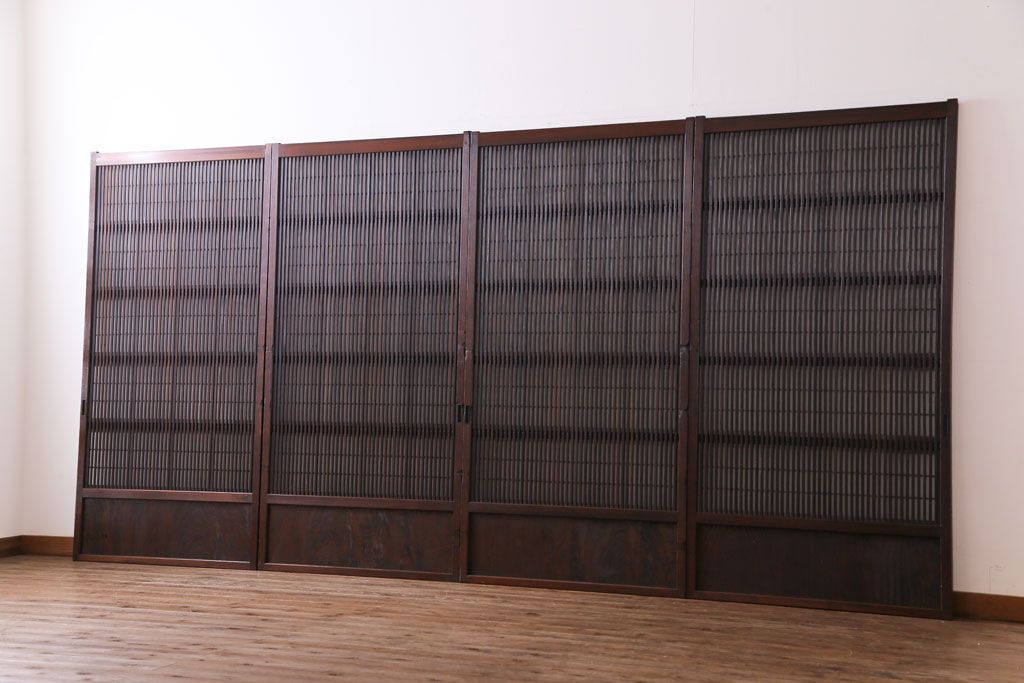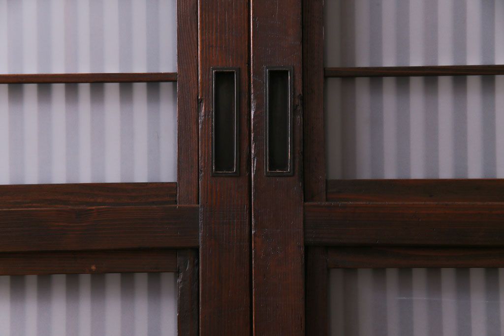 和製アンティーク 板ガラス裏障子留め 古い木の味わいが風情漂う格子戸4枚セット(仕切り戸、引き戸、建具)