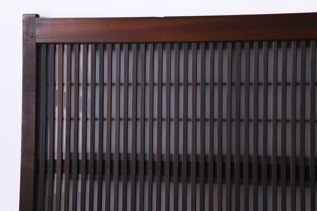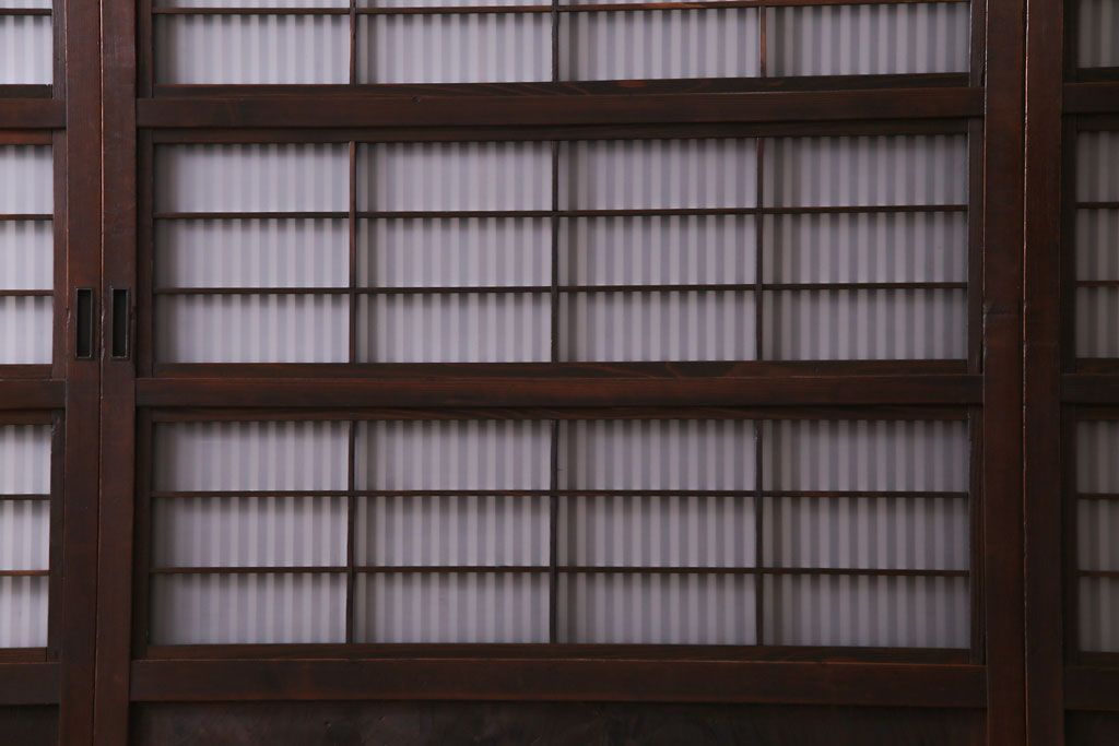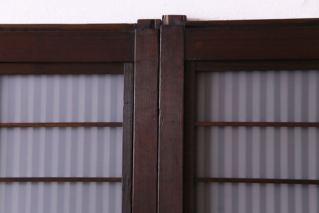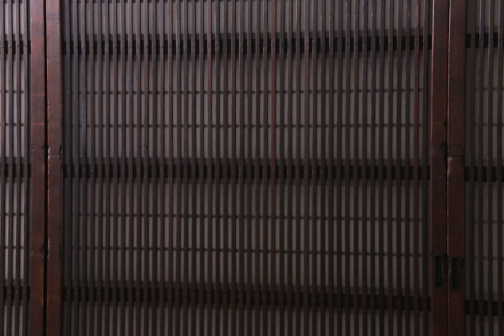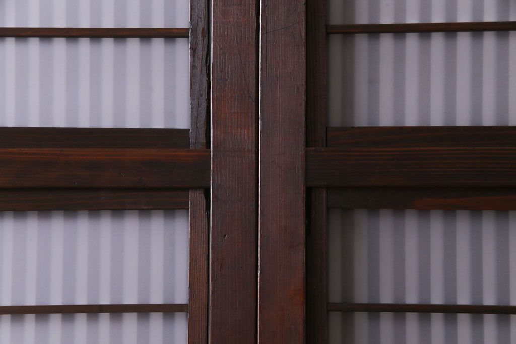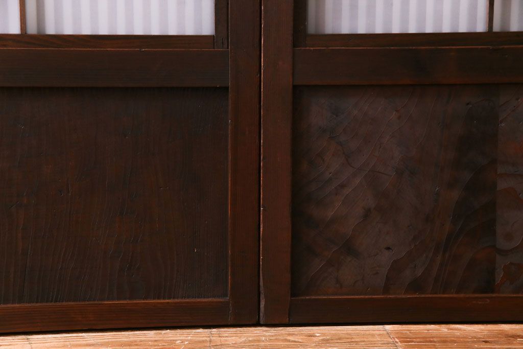 和製アンティーク 板ガラス裏障子留め 古い木の味わいが風情漂う格子戸4枚セット(仕切り戸、引き戸、建具)