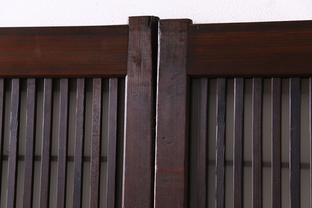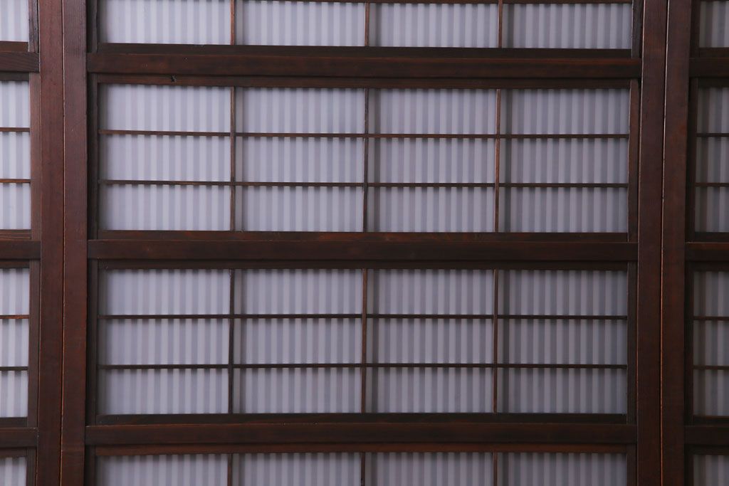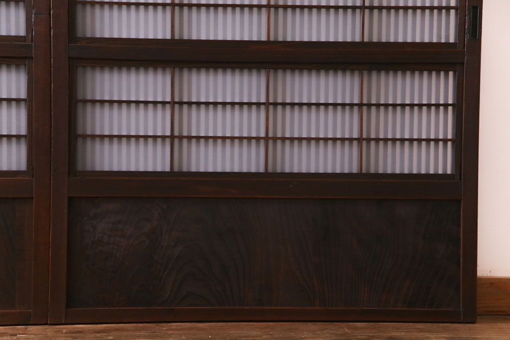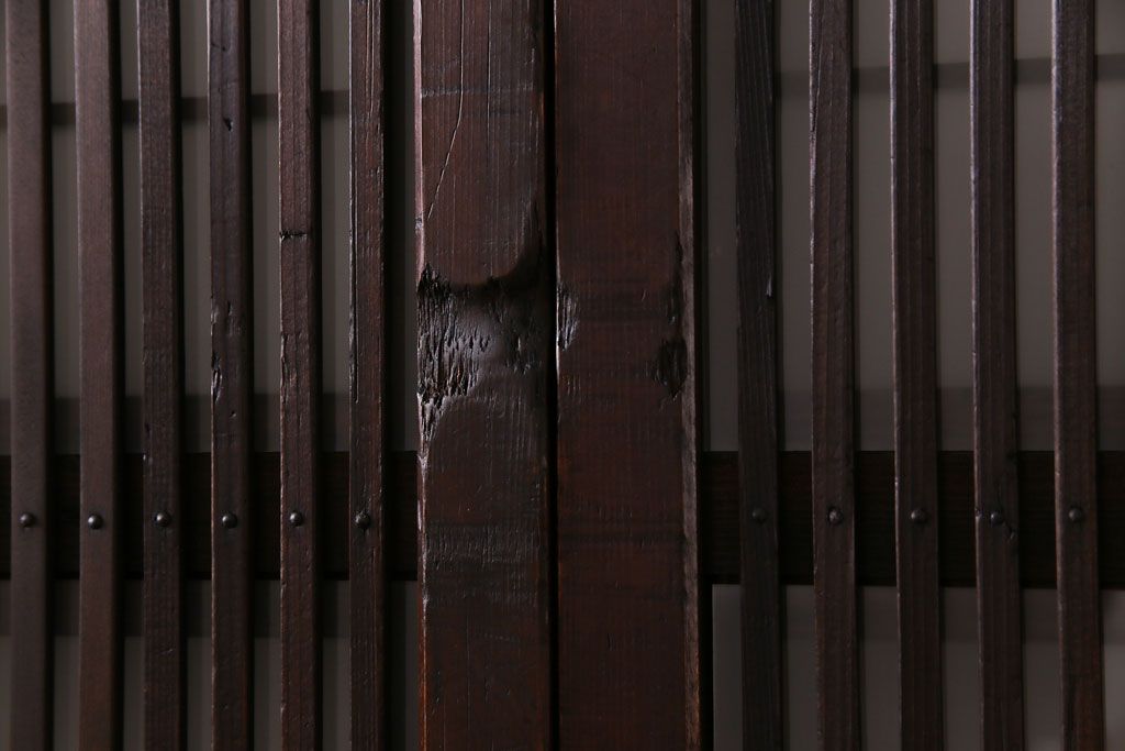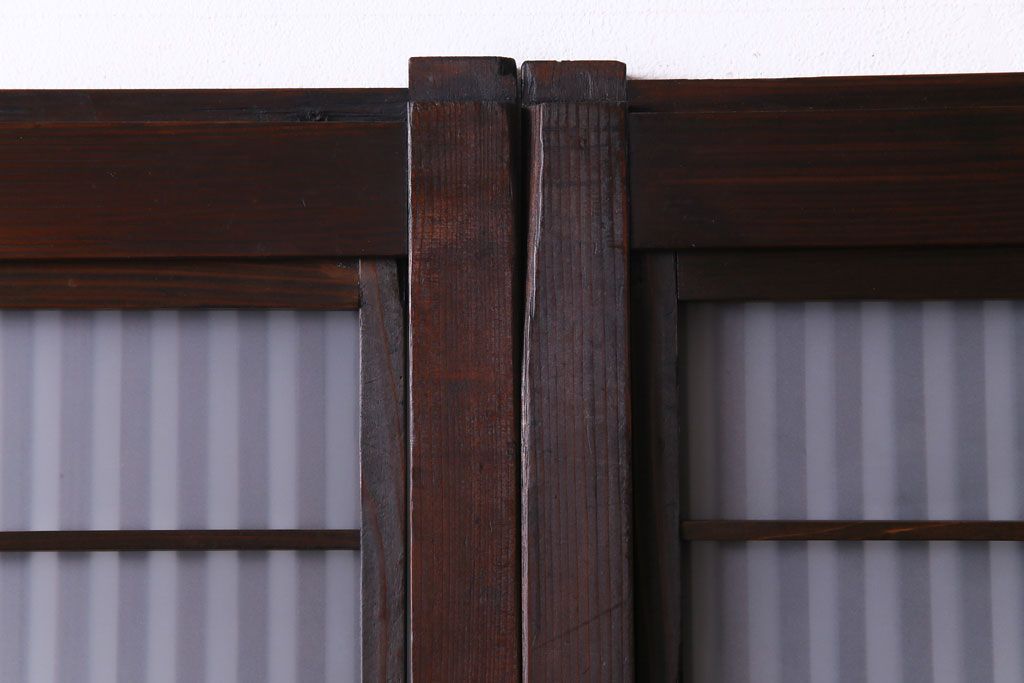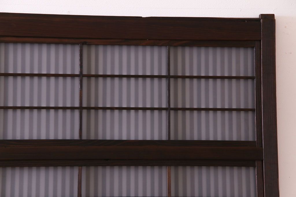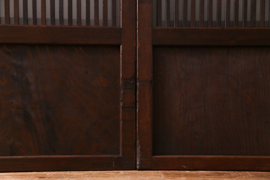 和製アンティーク 板ガラス裏障子留め 古い木の味わいが風情漂う格子戸4枚セット(仕切り戸、引き戸、建具)