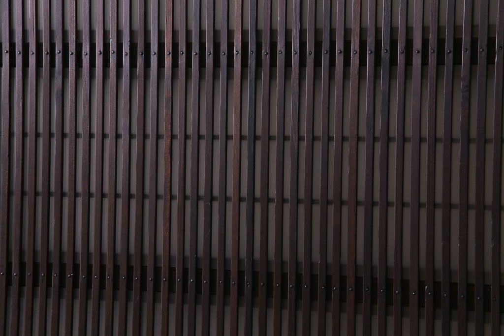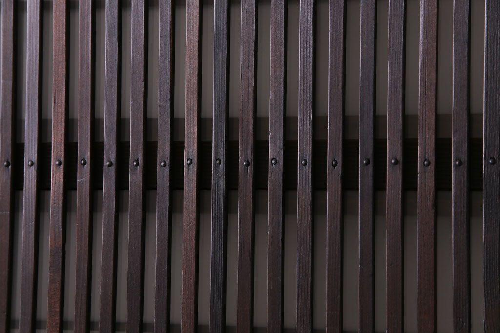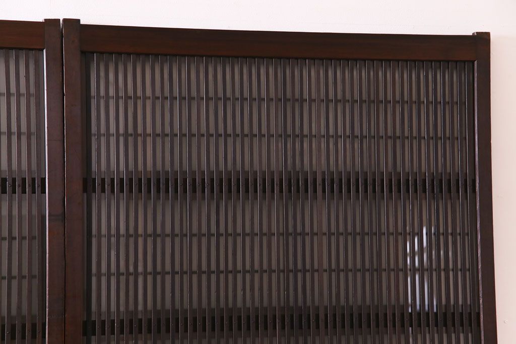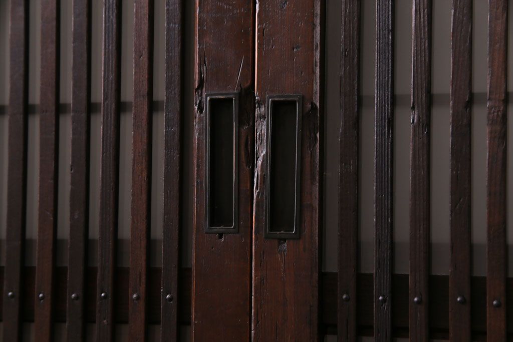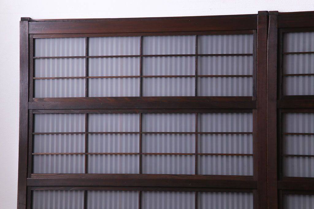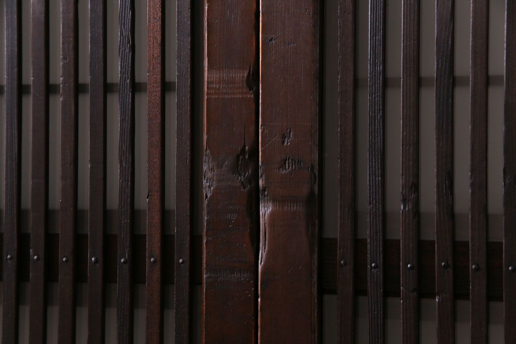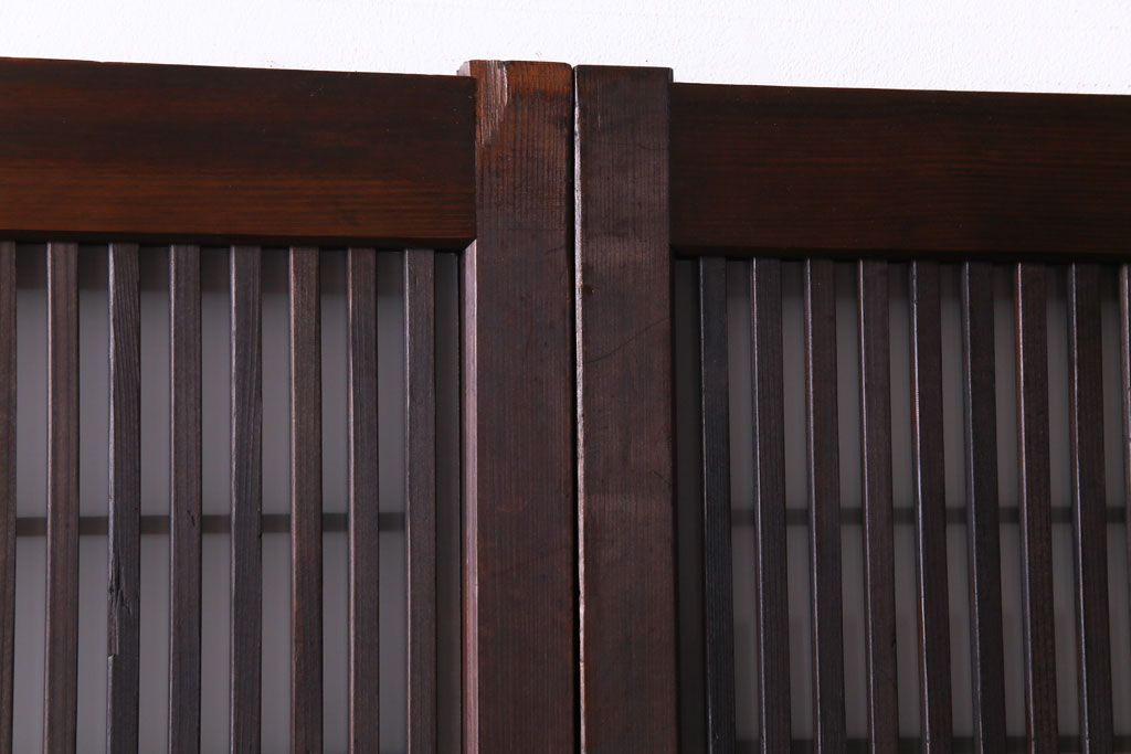 和製アンティーク 板ガラス裏障子留め 古い木の味わいが風情漂う格子戸4枚セット(仕切り戸、引き戸、建具)