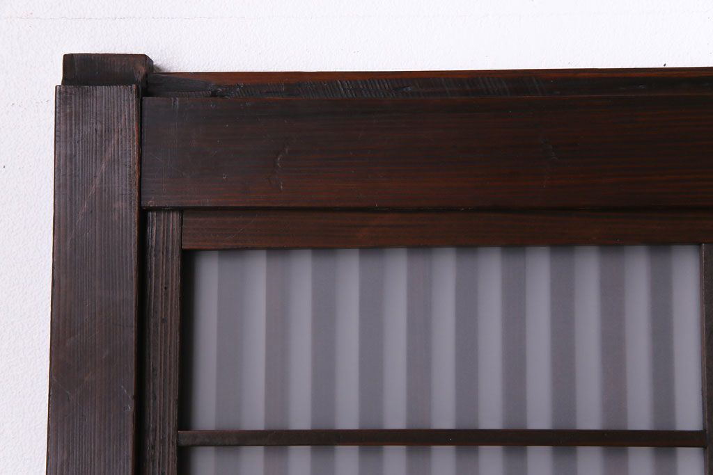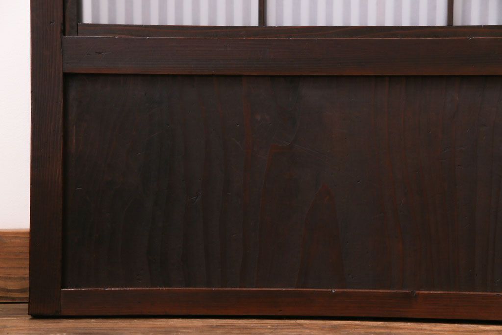 和製アンティーク 板ガラス裏障子留め 古い木の味わいが風情漂う格子戸4枚セット(仕切り戸、引き戸、建具)です。
