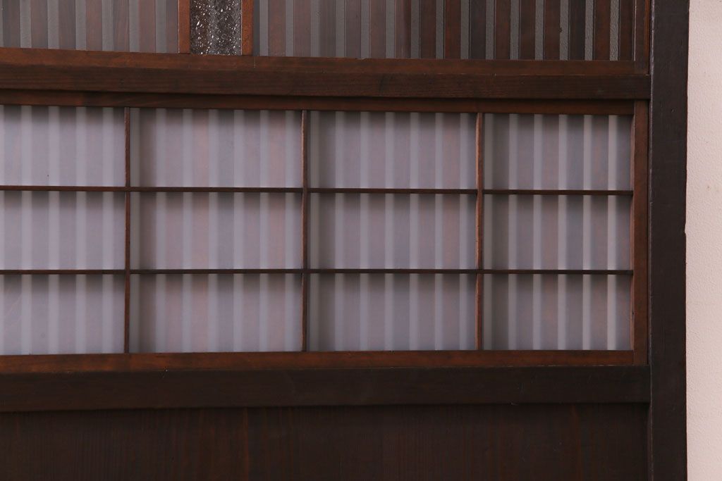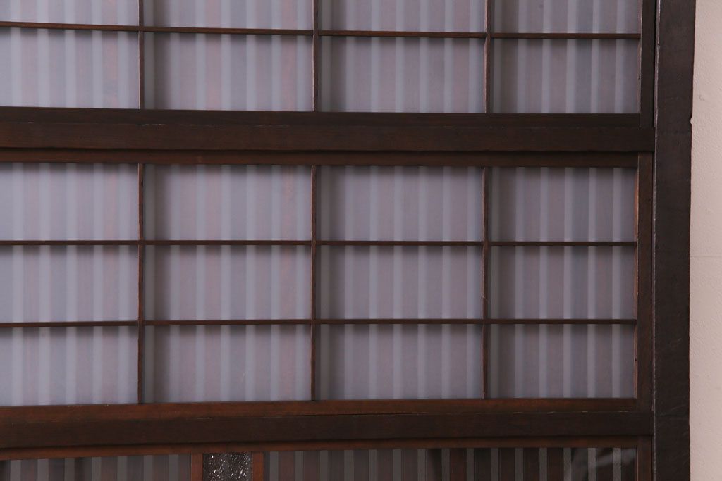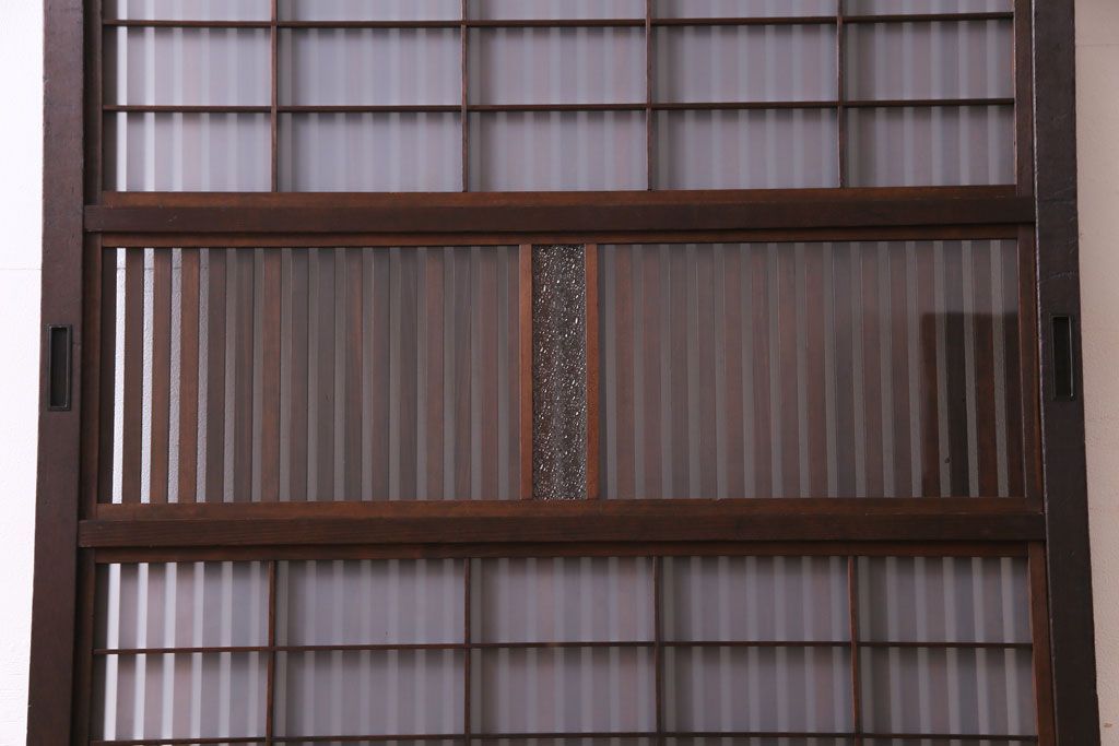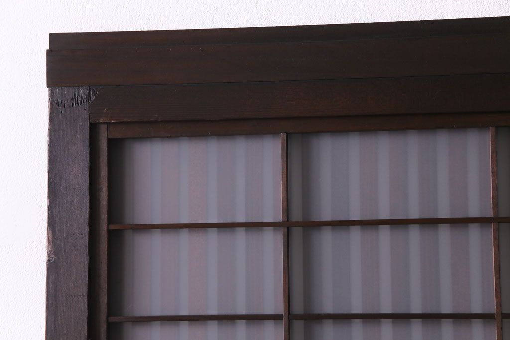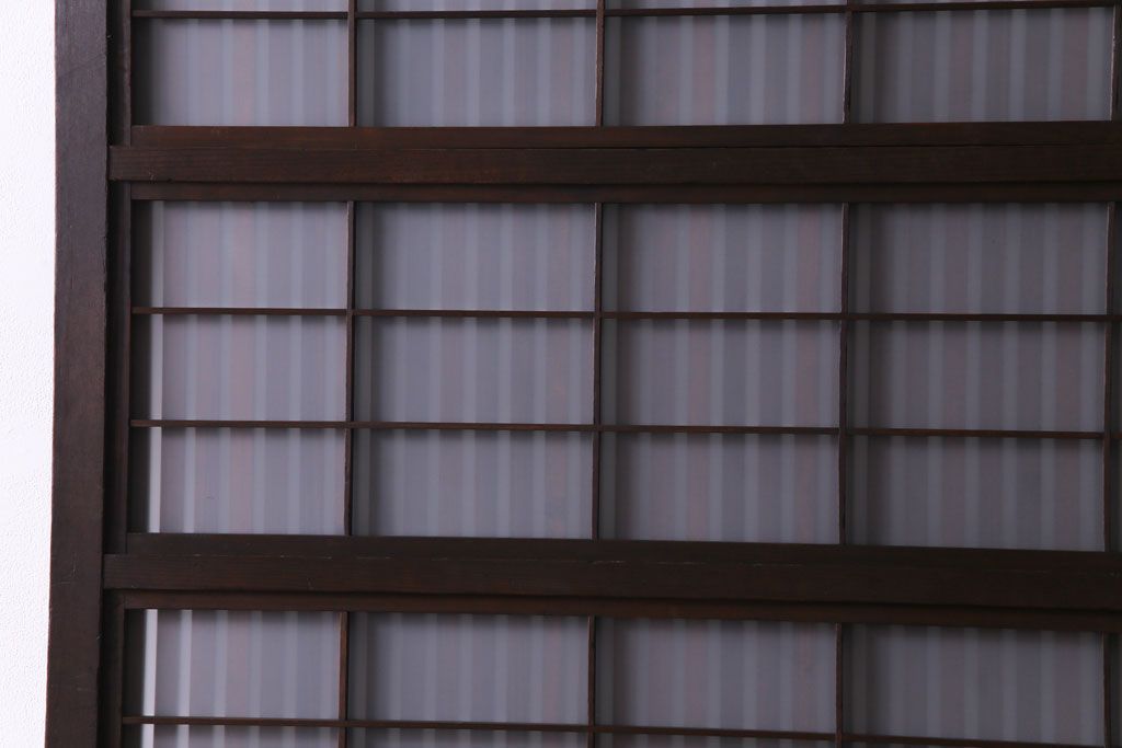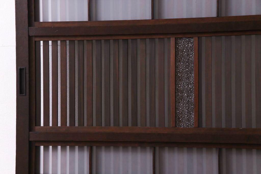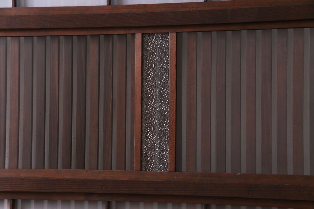 昭和期 板ガラス裏障子留め ガラスから透ける縦桟が美しい格子戸(ガラス帯戸、仕切り戸、引き戸、建具)