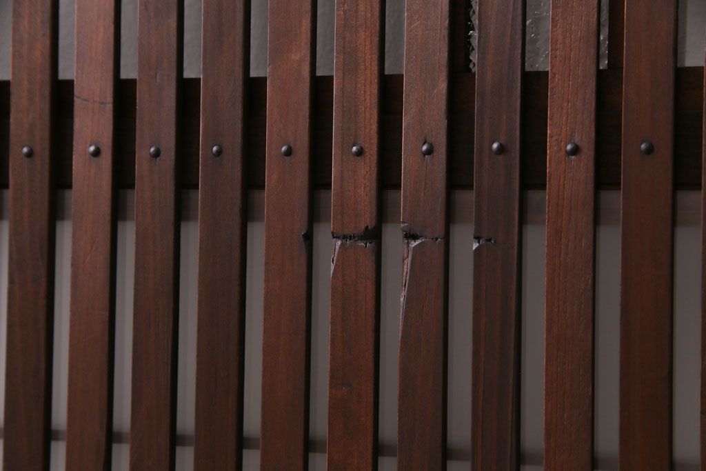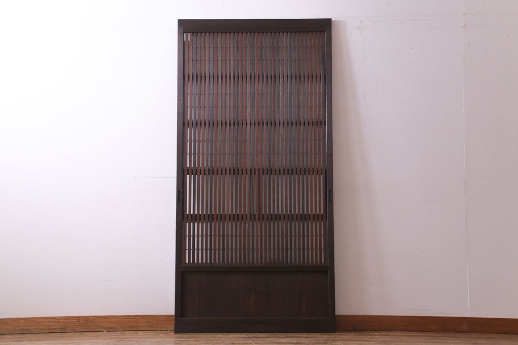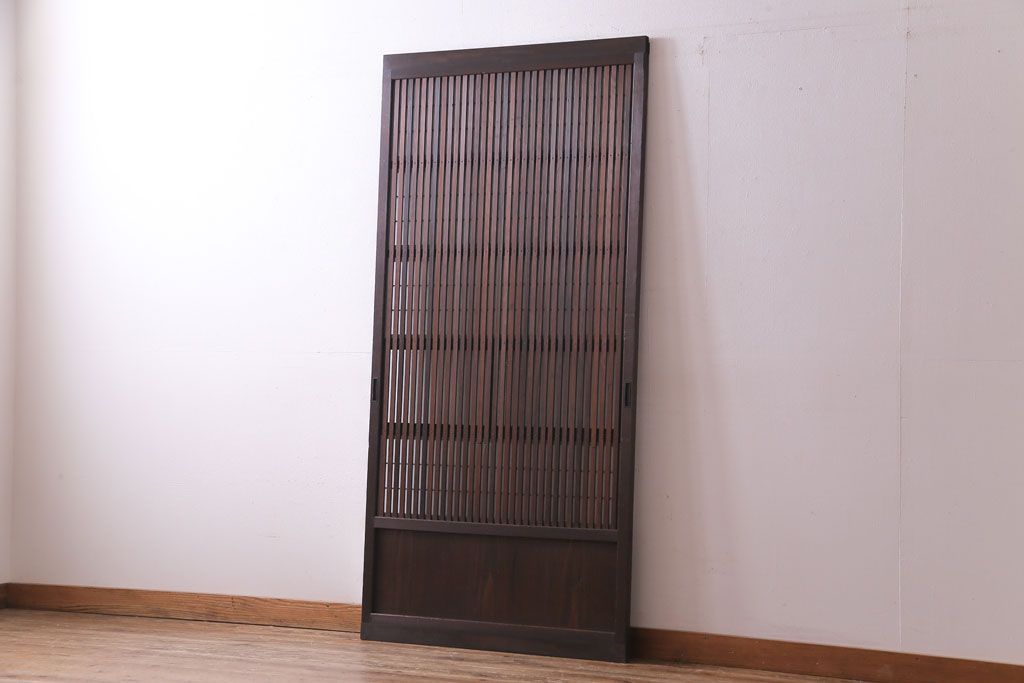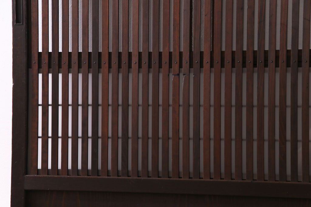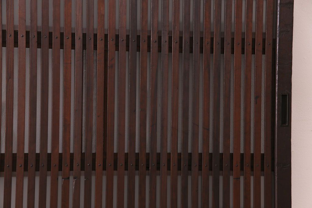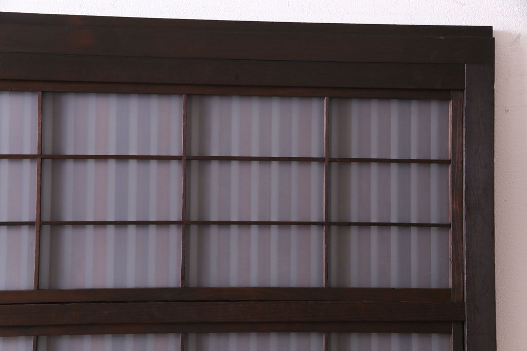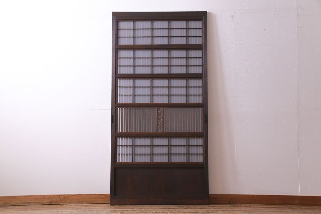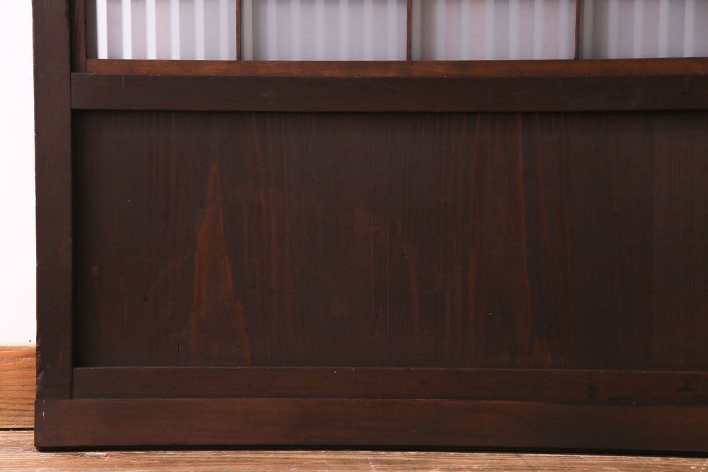 昭和期 板ガラス裏障子留め ガラスから透ける縦桟が美しい格子戸(ガラス帯戸、仕切り戸、引き戸、建具)