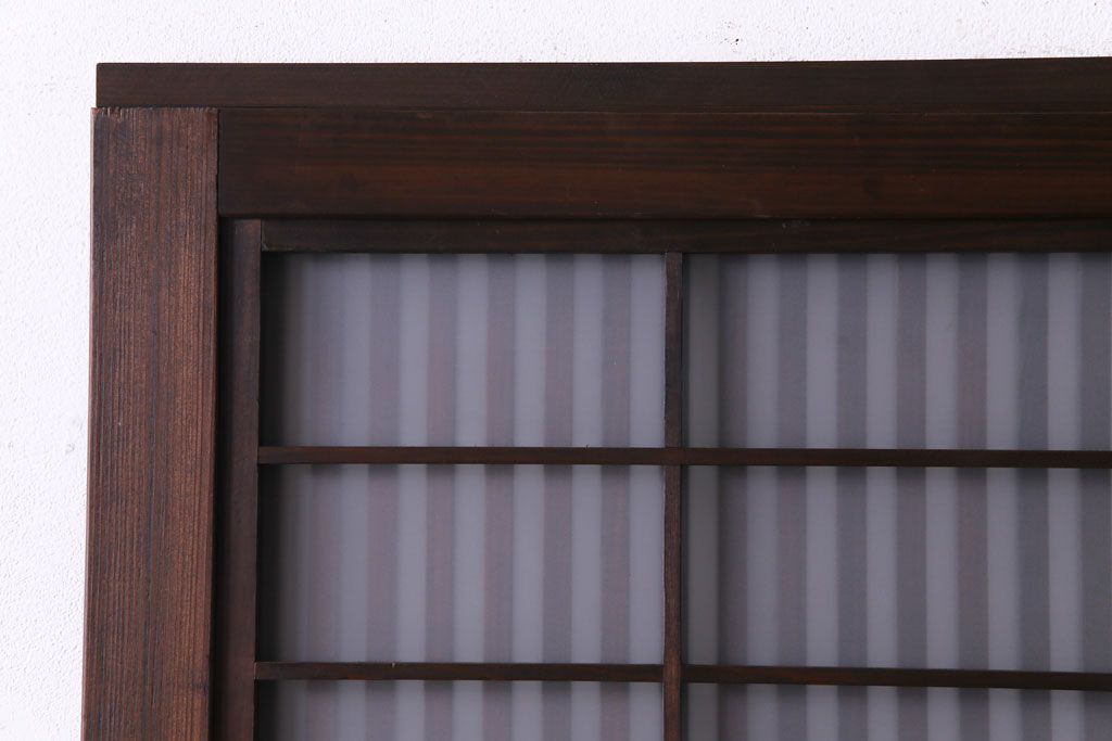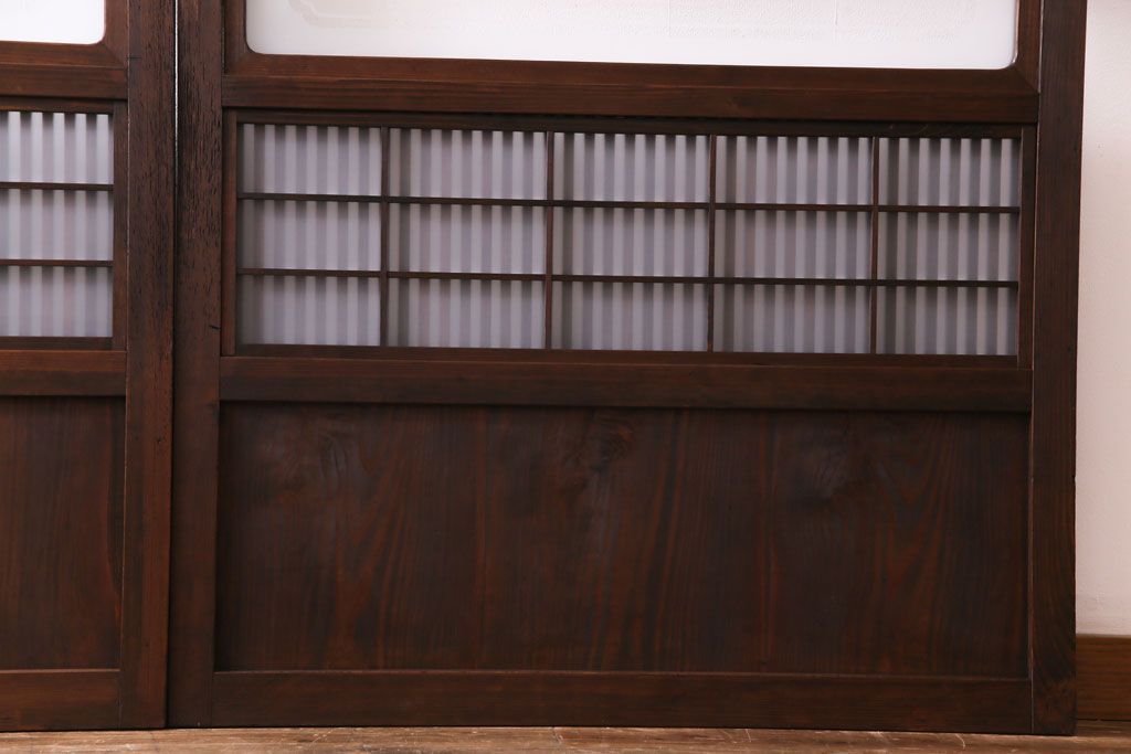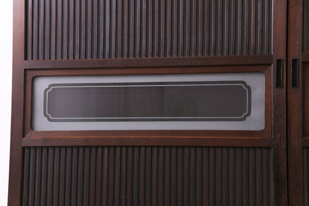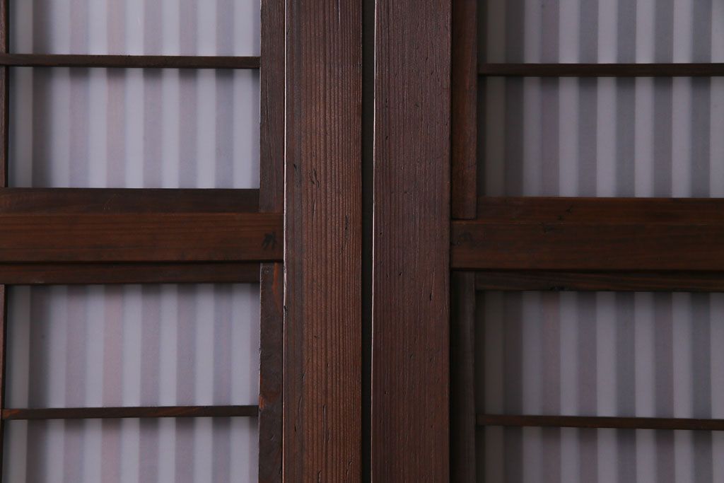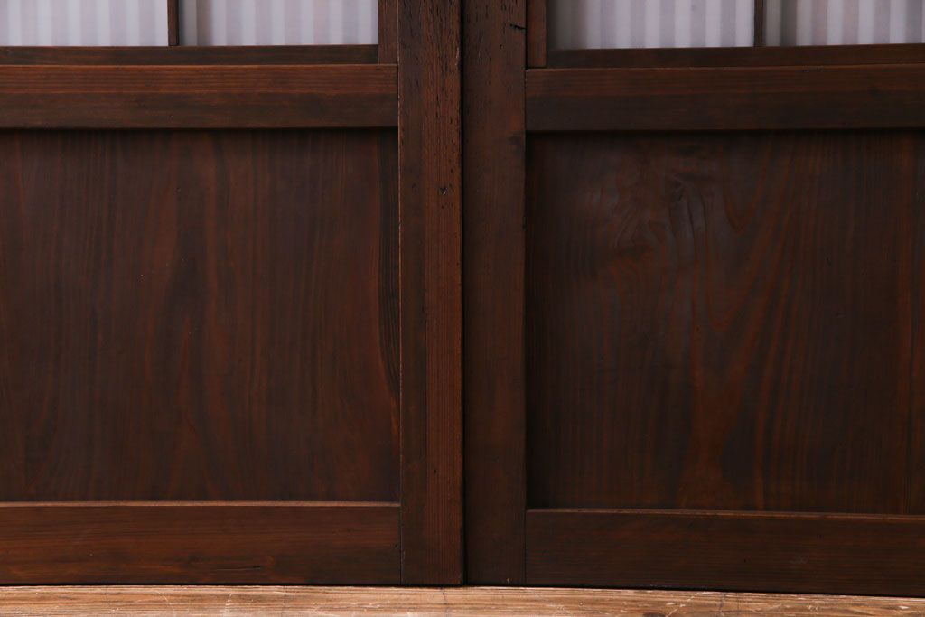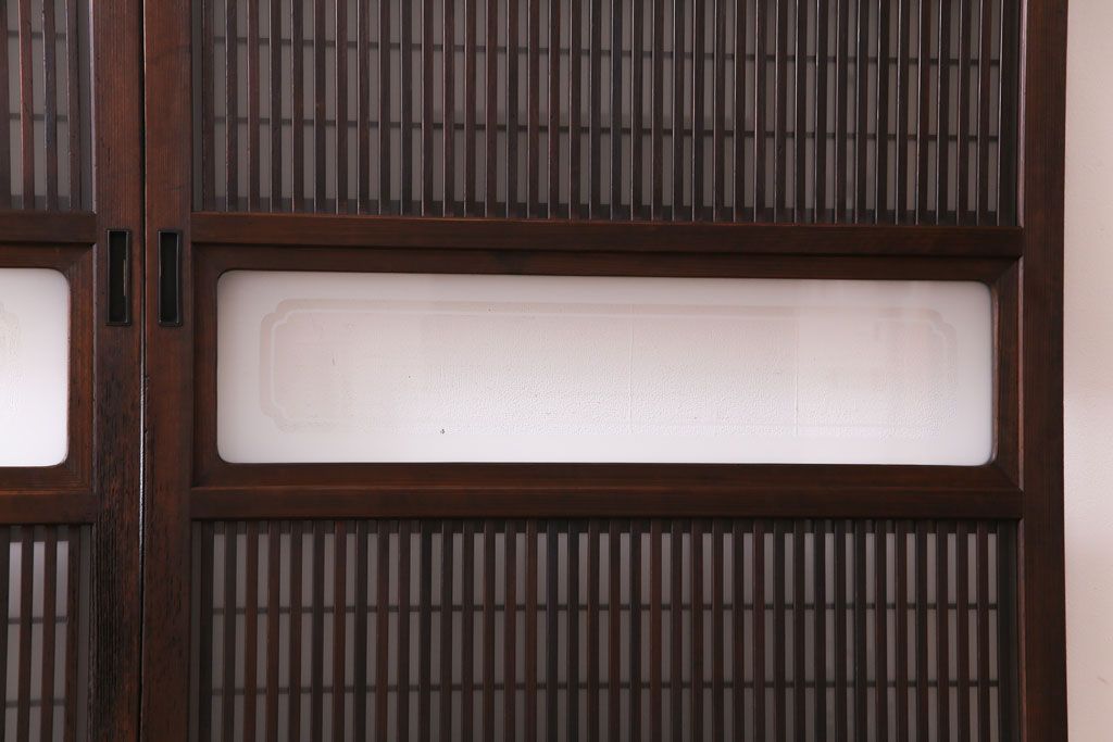 ドア・建具> 格子戸 > 和製アンティーク 板ガラス裏障子留め 大正ロマンのお部屋におすすめな格子戸(ガラス帯戸、引き戸、建具)2枚セット