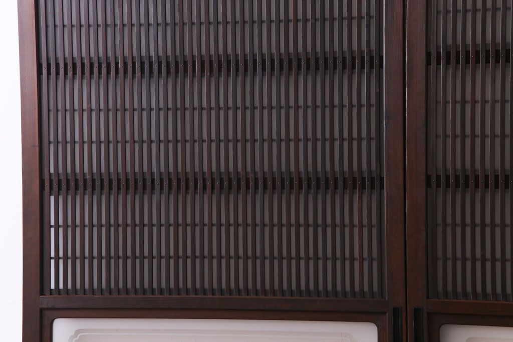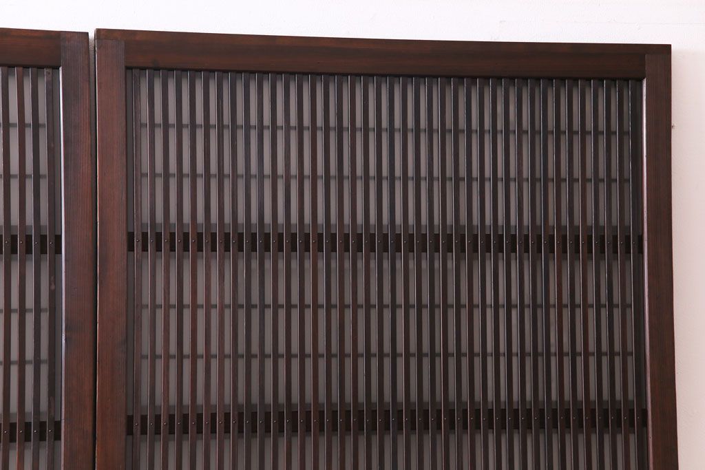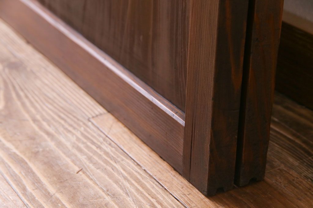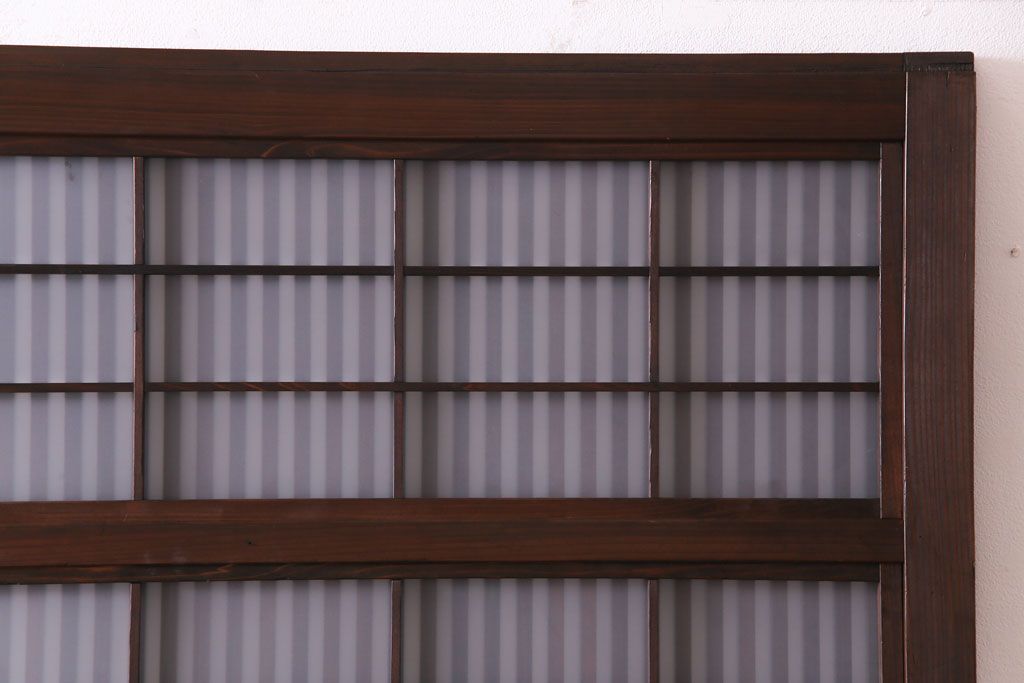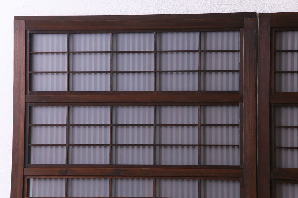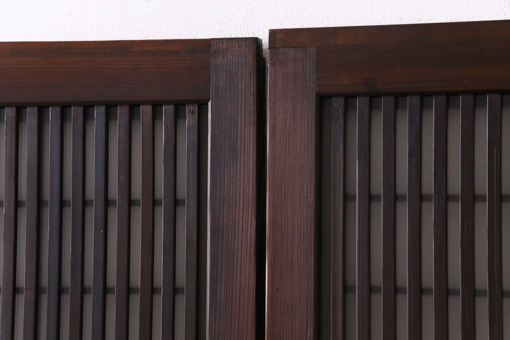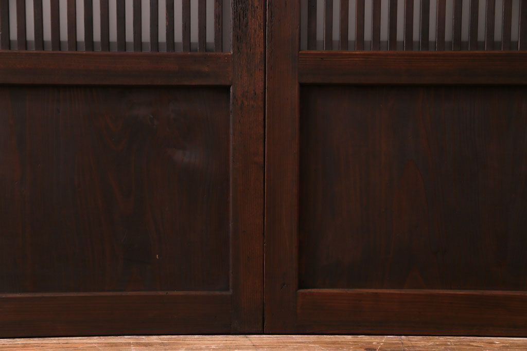 ドア・建具> 格子戸 > 和製アンティーク 板ガラス裏障子留め 大正ロマンのお部屋におすすめな格子戸(ガラス帯戸、引き戸、建具)2枚セット