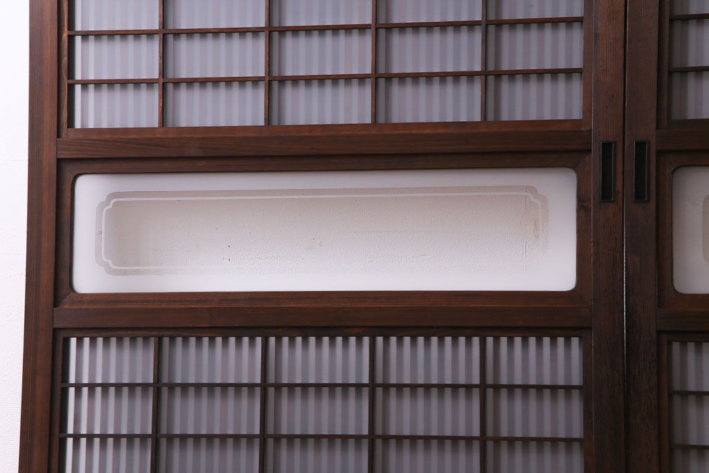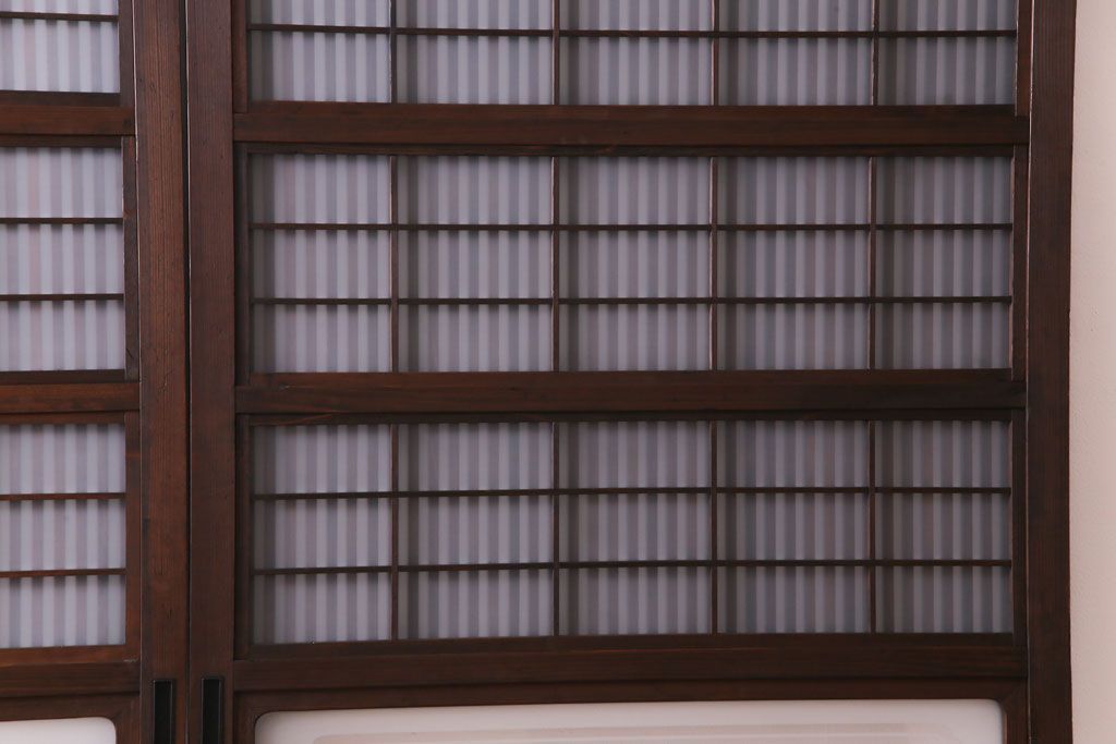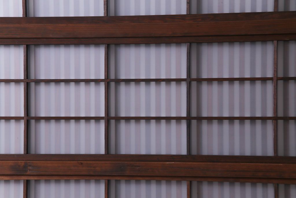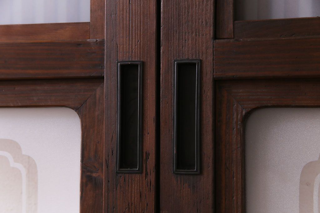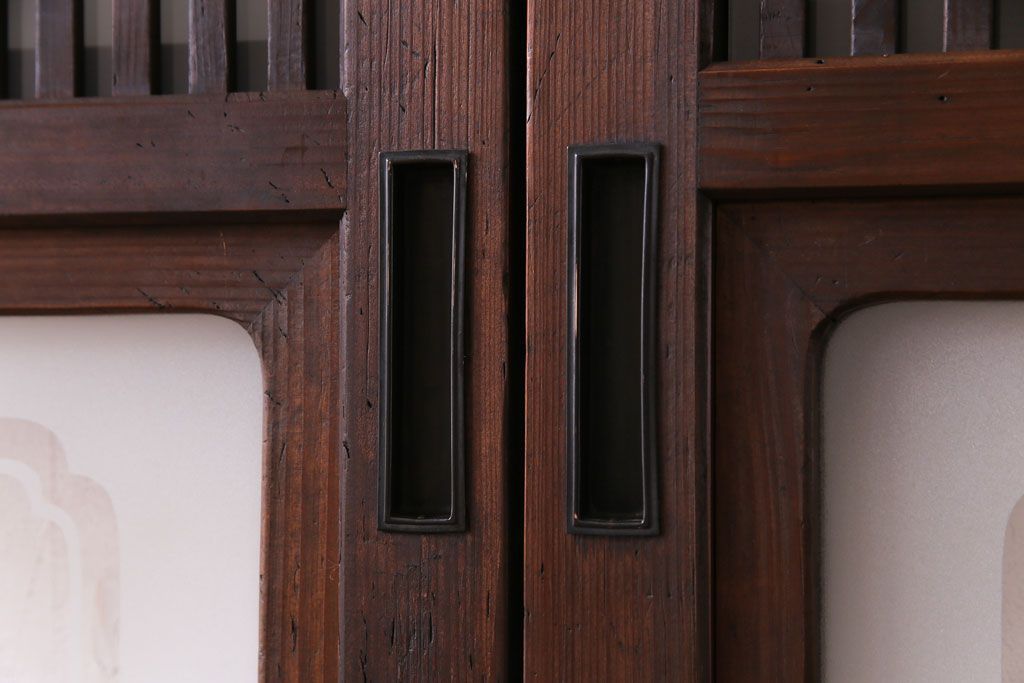 ドア・建具> 引き戸 > 和製アンティーク 板ガラス裏障子留め 大正ロマンのお部屋におすすめな格子戸(ガラス帯戸、引き戸、建具)2枚セット