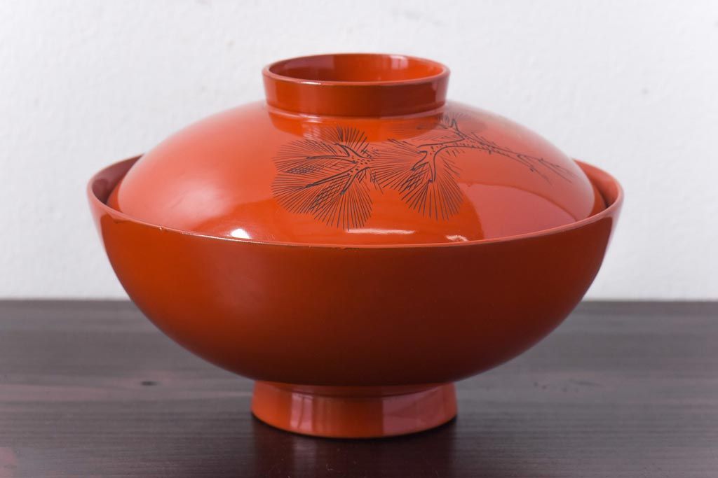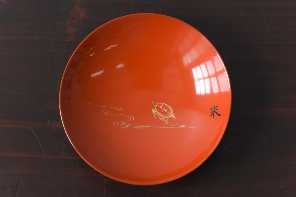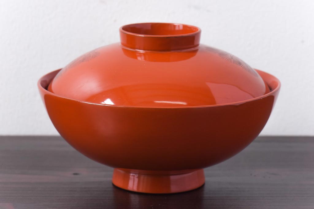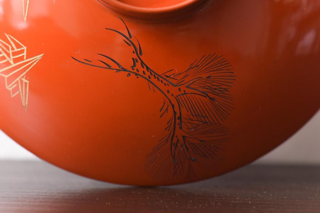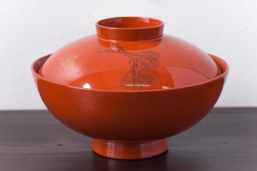 ラフジュ工房> 和食器・茶道具> お椀・茶碗 > 和製アンティーク 鶴松亀 朱塗りの木製椀(漆器、和食器)5客セット
