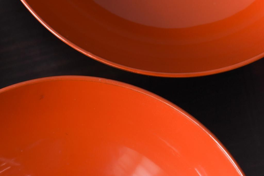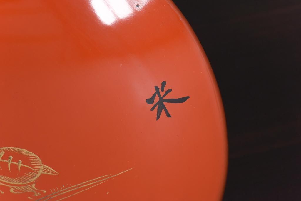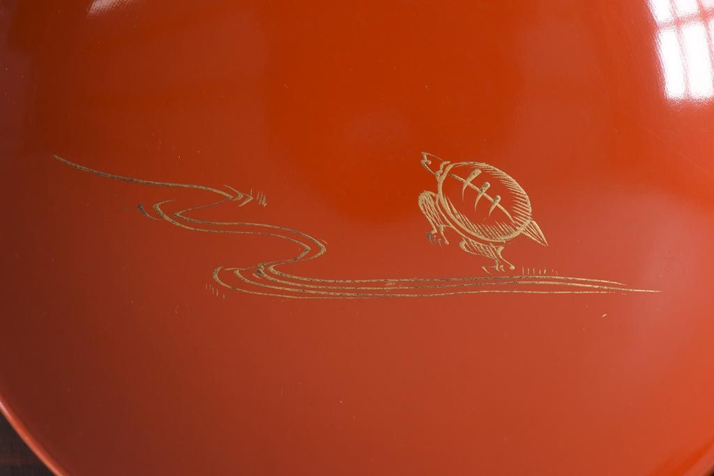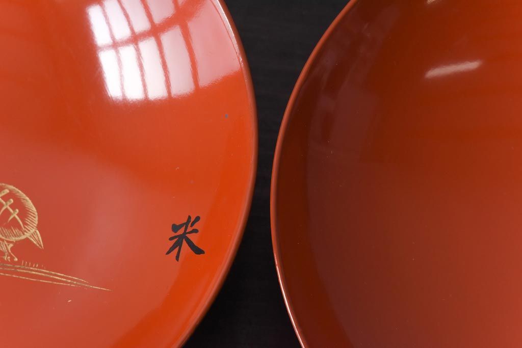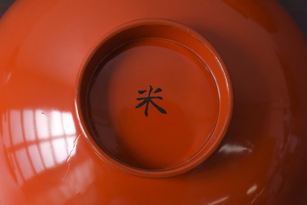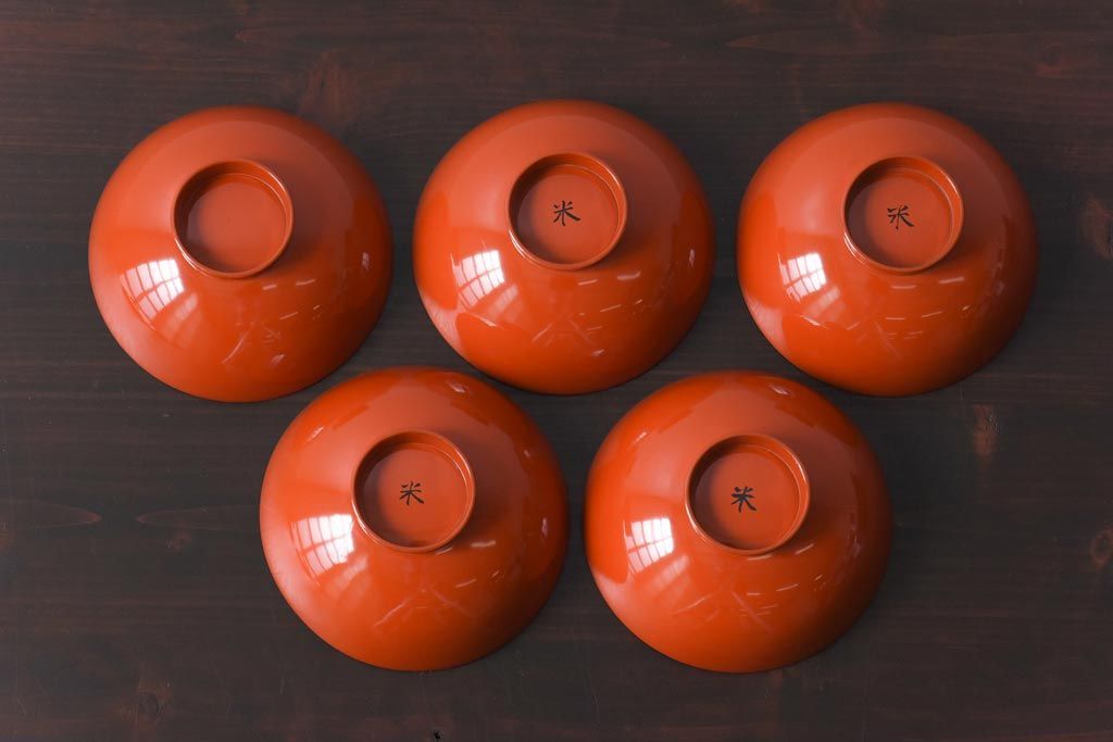 ラフジュ工房> 骨董・美術品> 骨董-漆器 > 和製アンティーク 鶴松亀 朱塗りの木製椀(漆器、和食器)5客セット