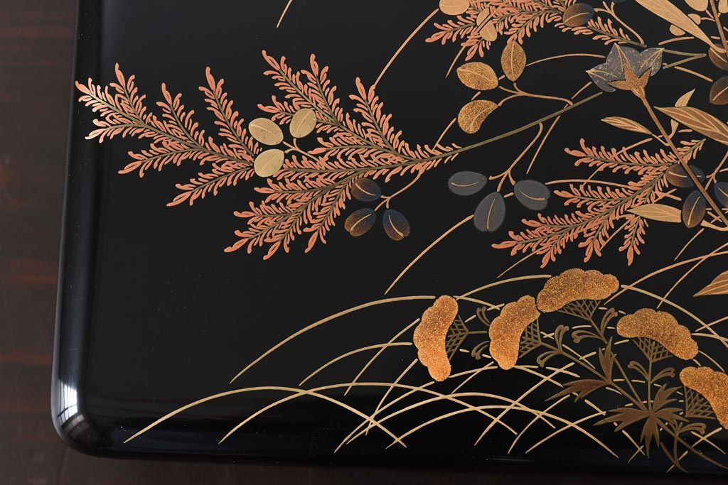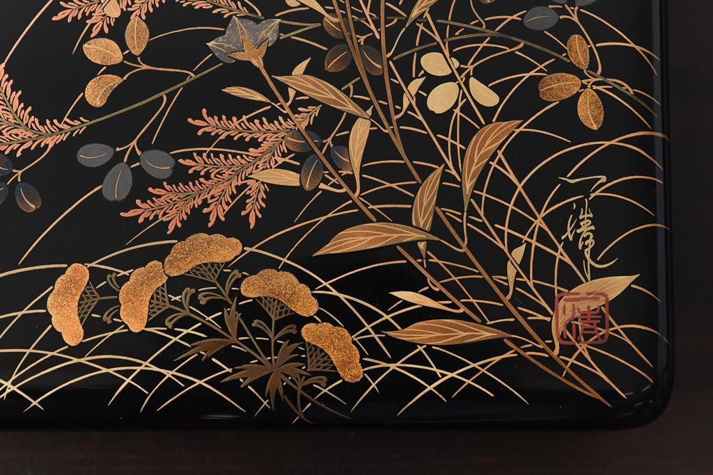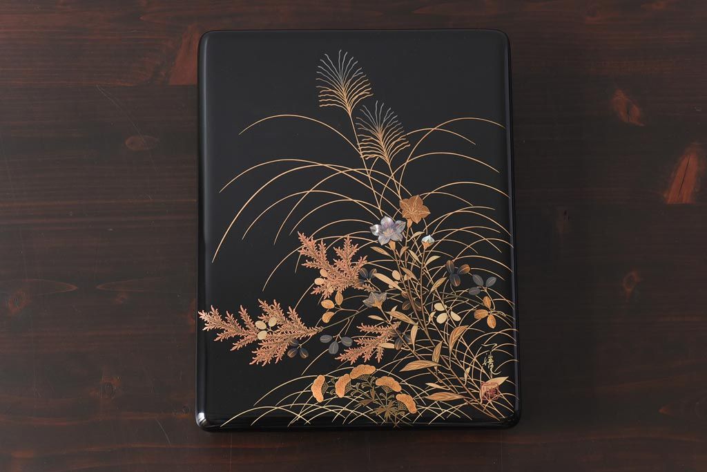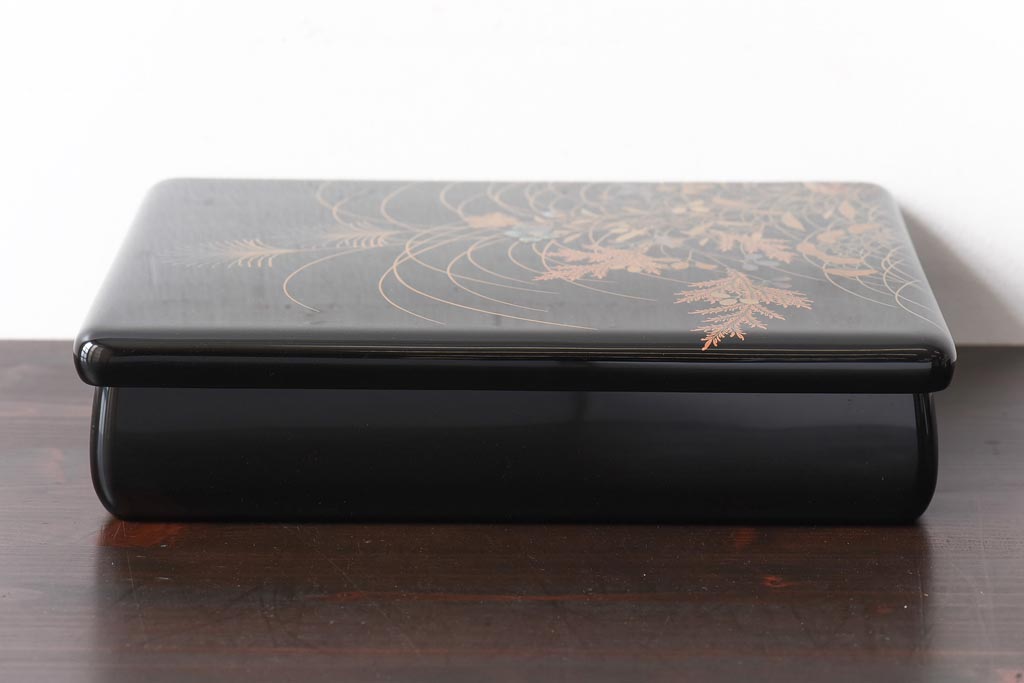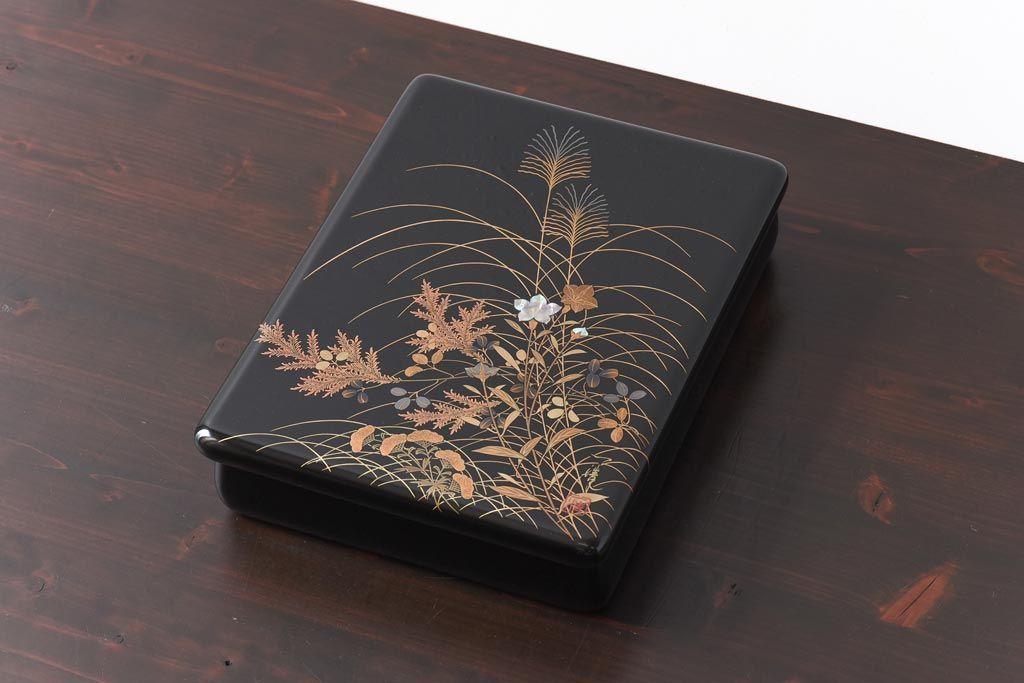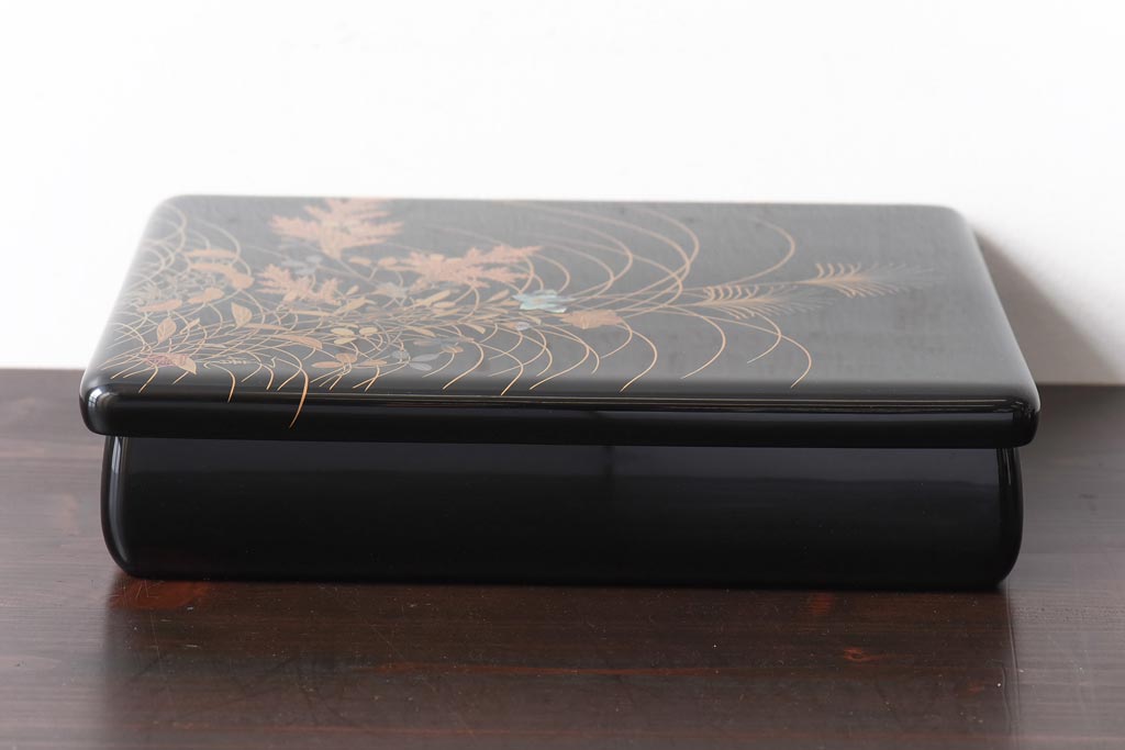 一清作 秋草文 螺鈿 金蒔絵梨地木製文箱(硯箱)です。
