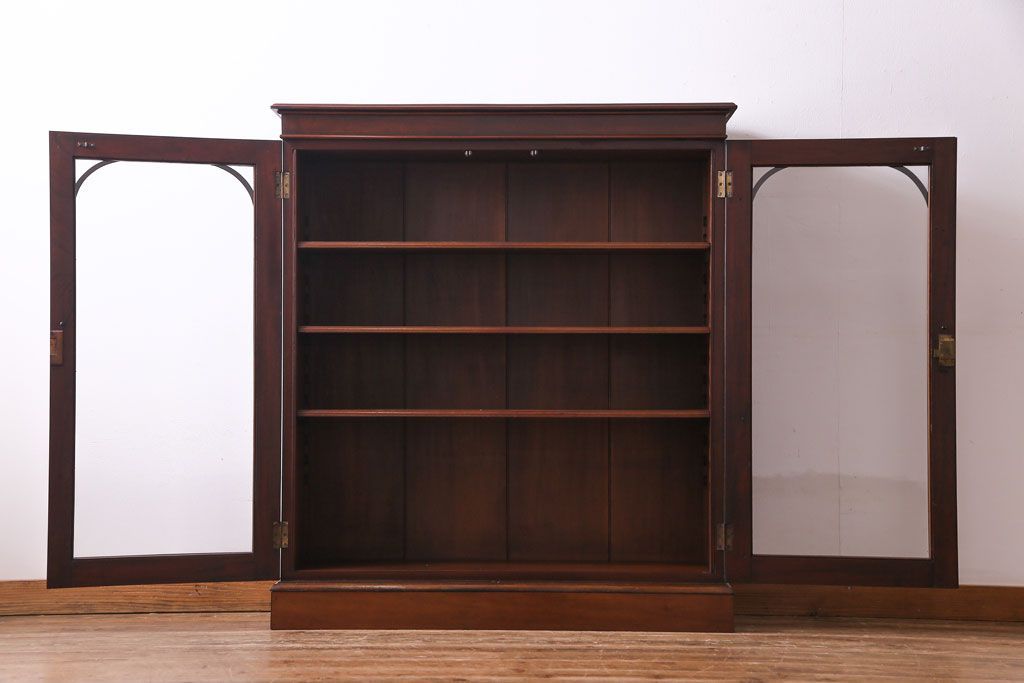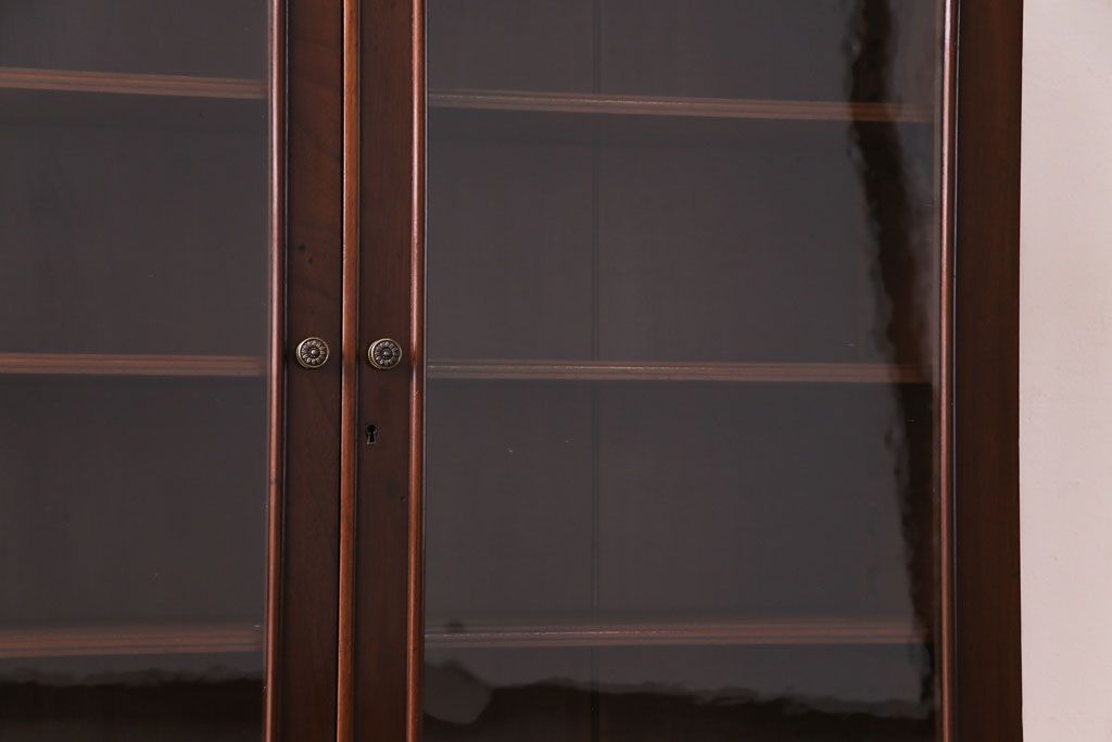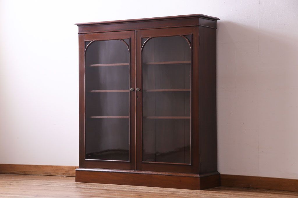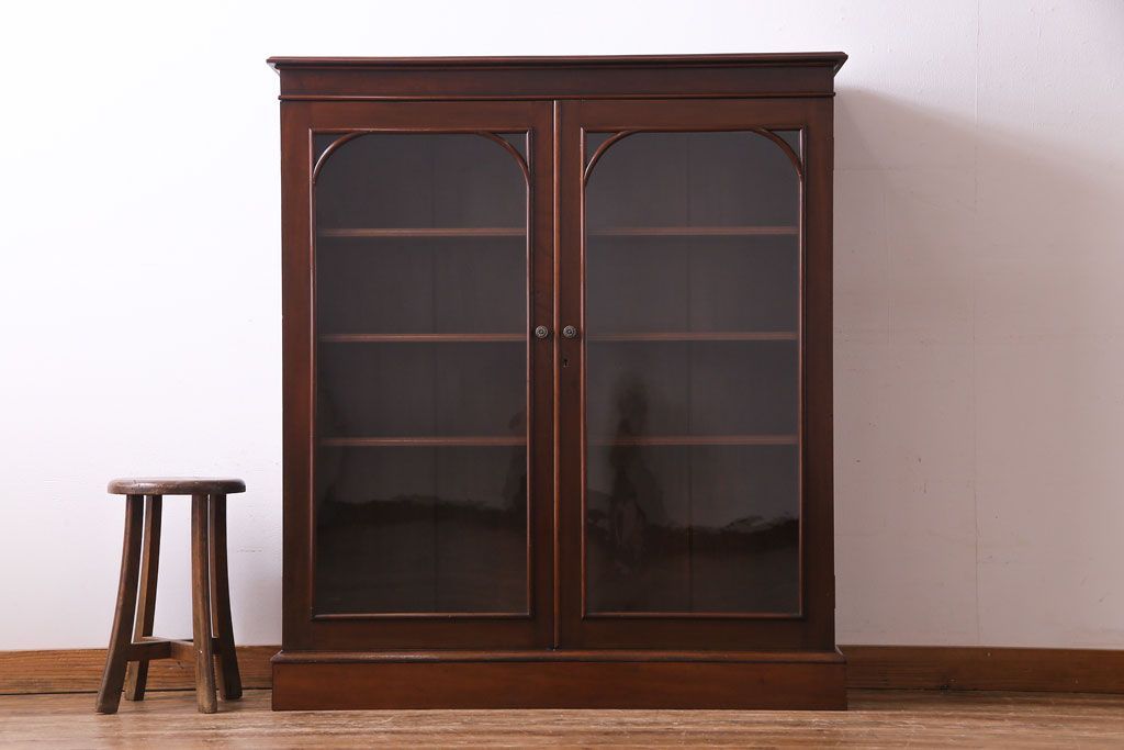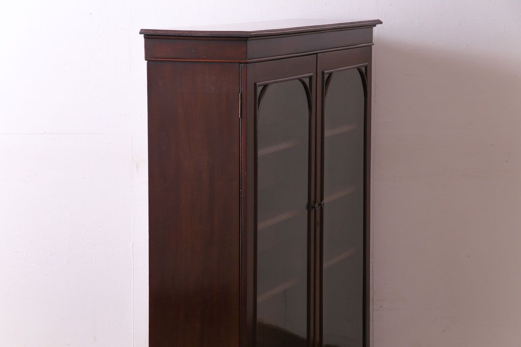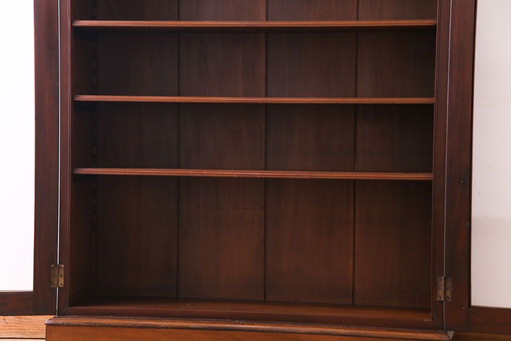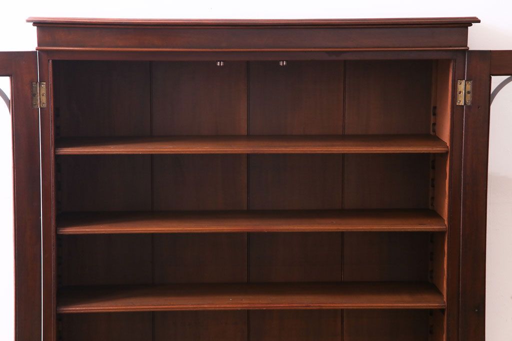 ラフジュ工房> キャビネット・戸棚> 食器棚・カップボード > アンティーク家具 イギリスアンティーク マホガニー材 上品さが漂うシンプルな本箱(飾り棚、キャビネット)