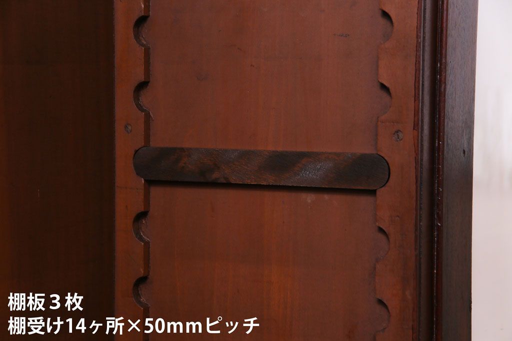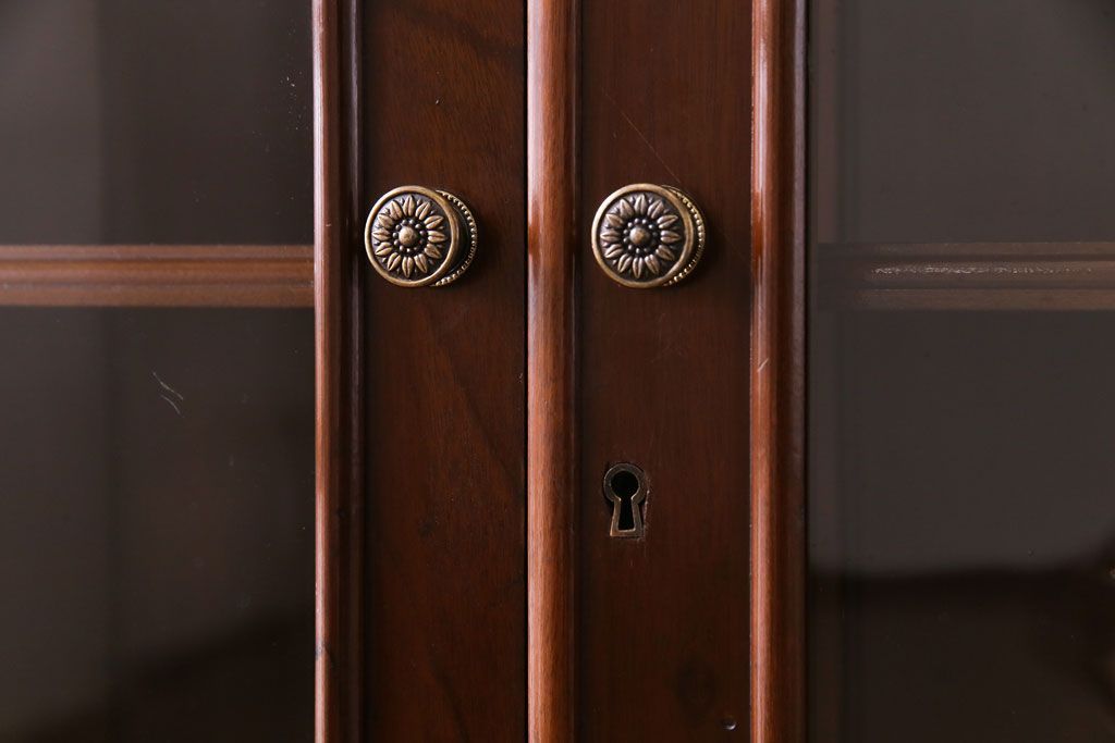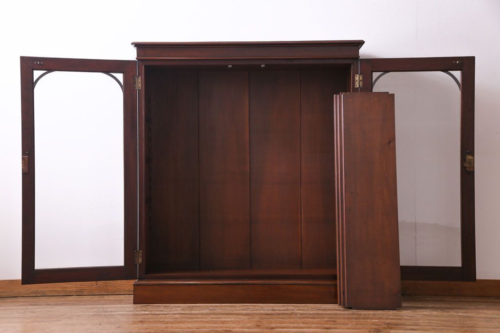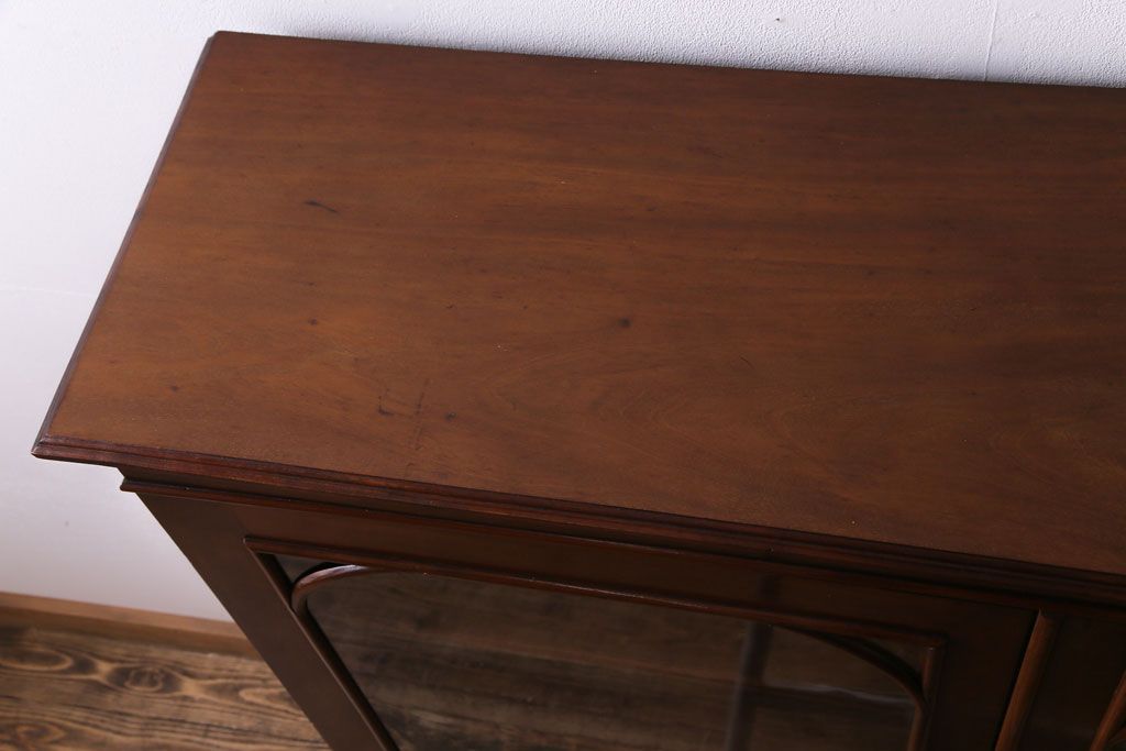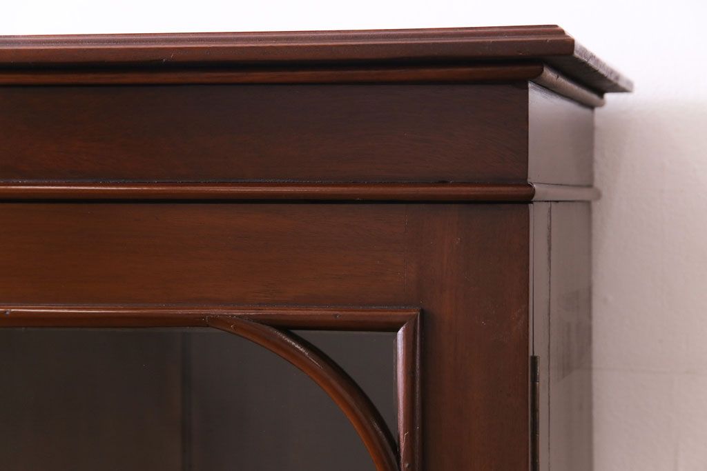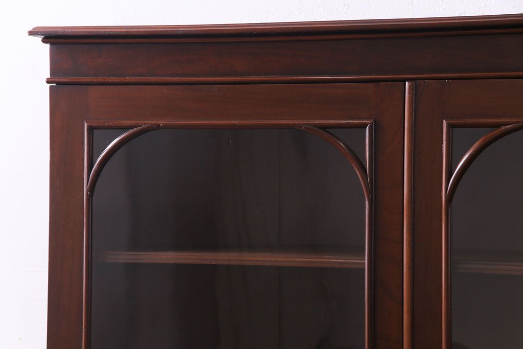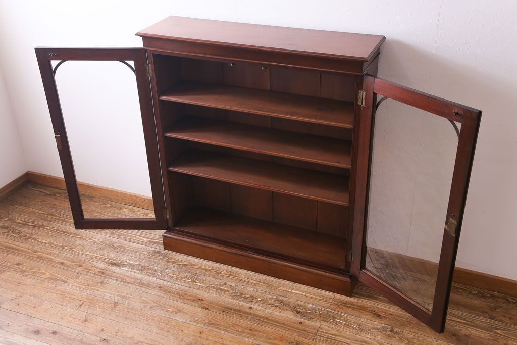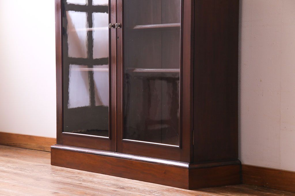 ラフジュ工房> キャビネット・戸棚> 食器棚・カップボード > アンティーク家具 イギリスアンティーク マホガニー材 上品さが漂うシンプルな本箱(飾り棚、キャビネット)