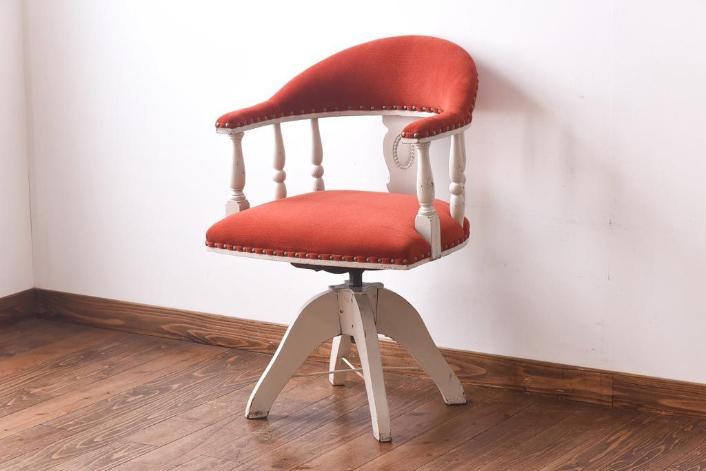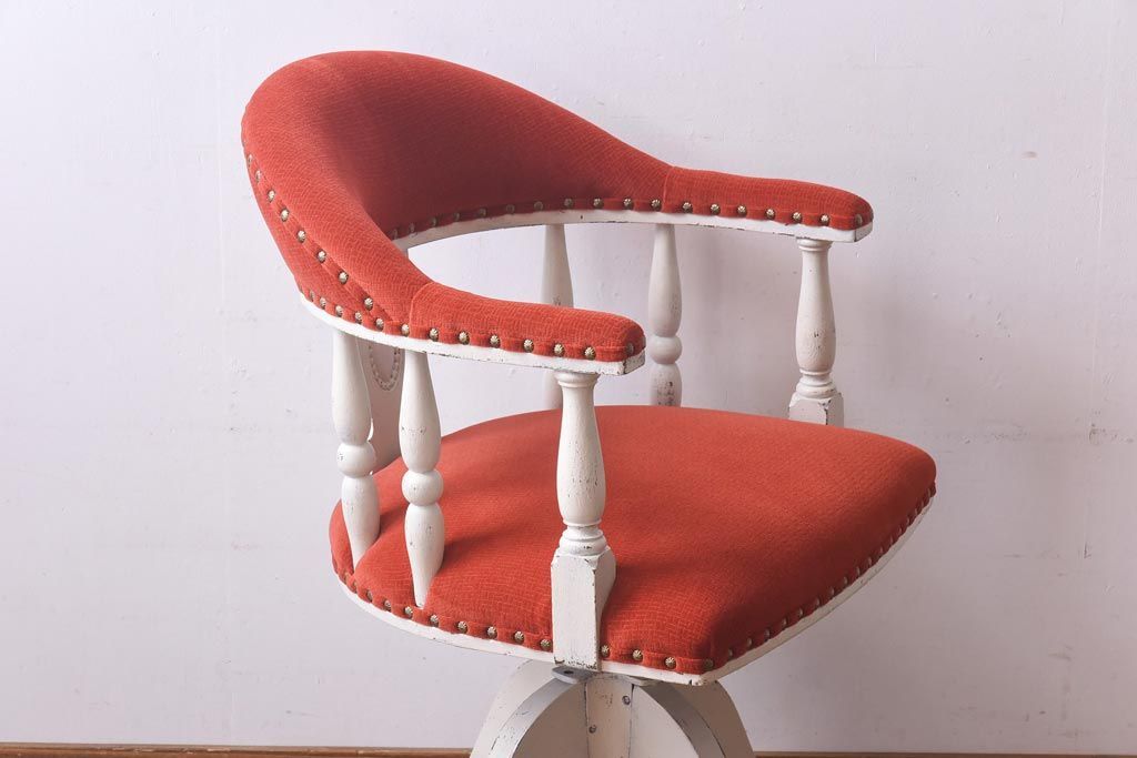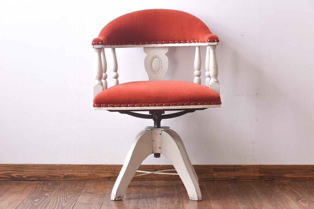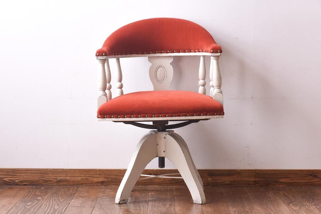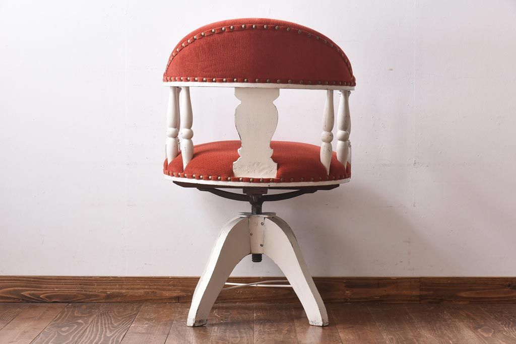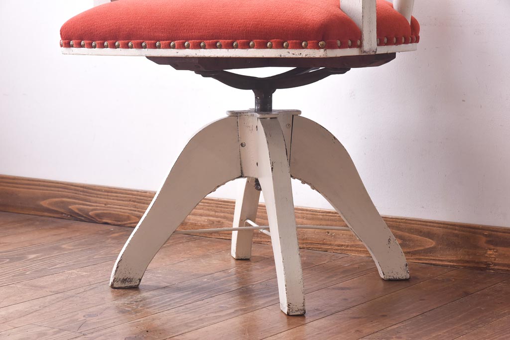ペイント家具 赤い座面が可愛らしいレトロなドクターチェア(回転イス)