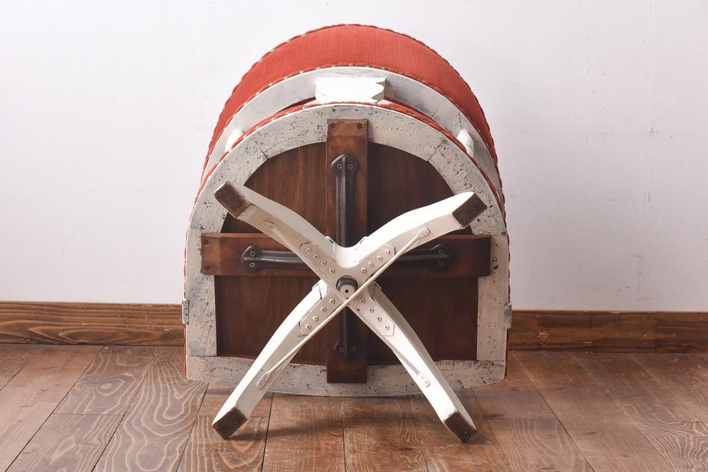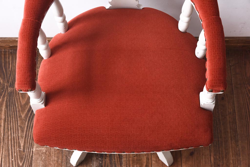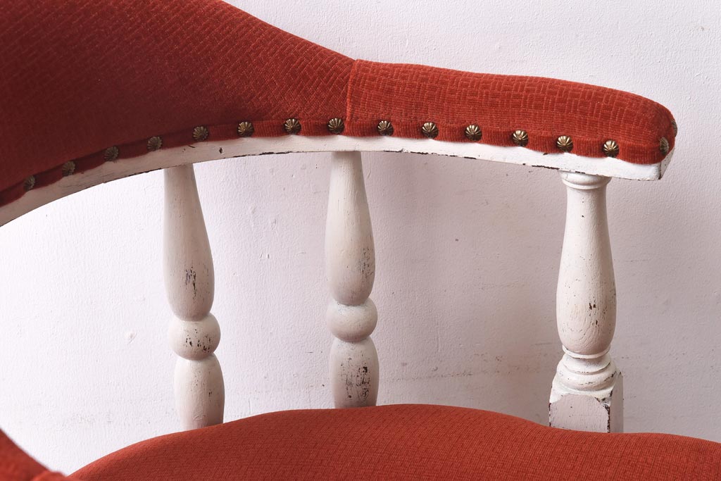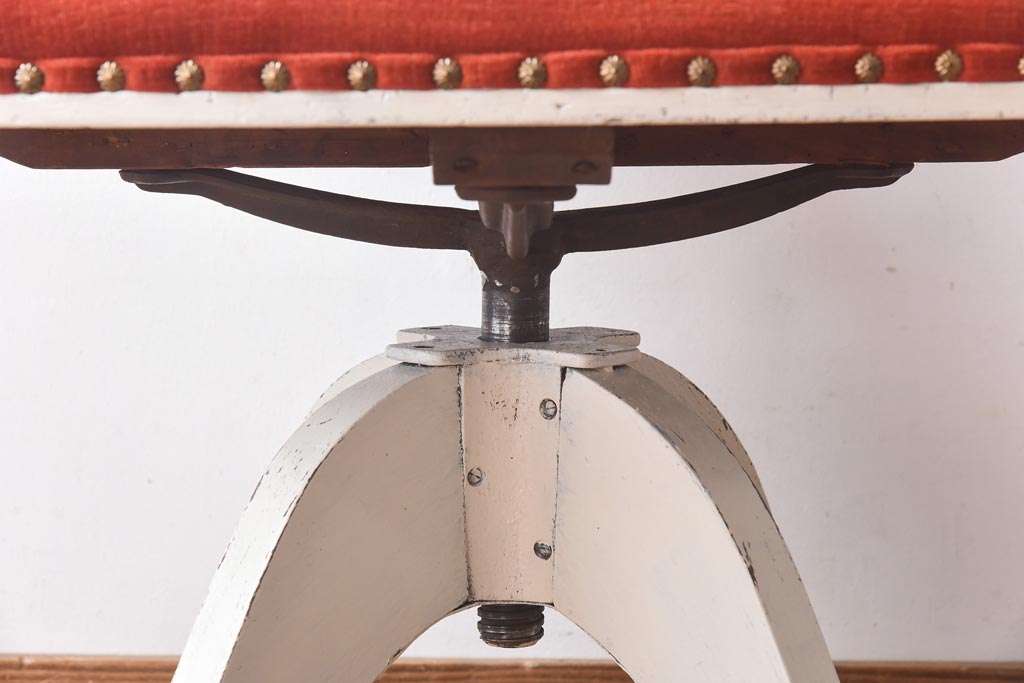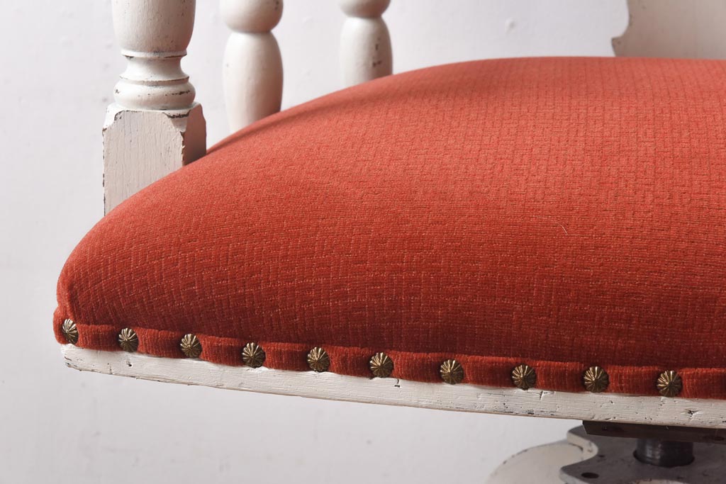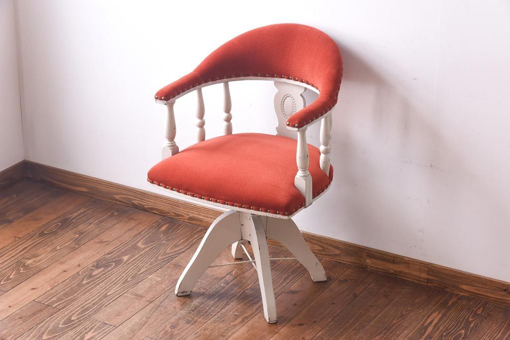 ペイント家具 赤い座面が可愛らしいレトロなドクターチェア(回転イス)