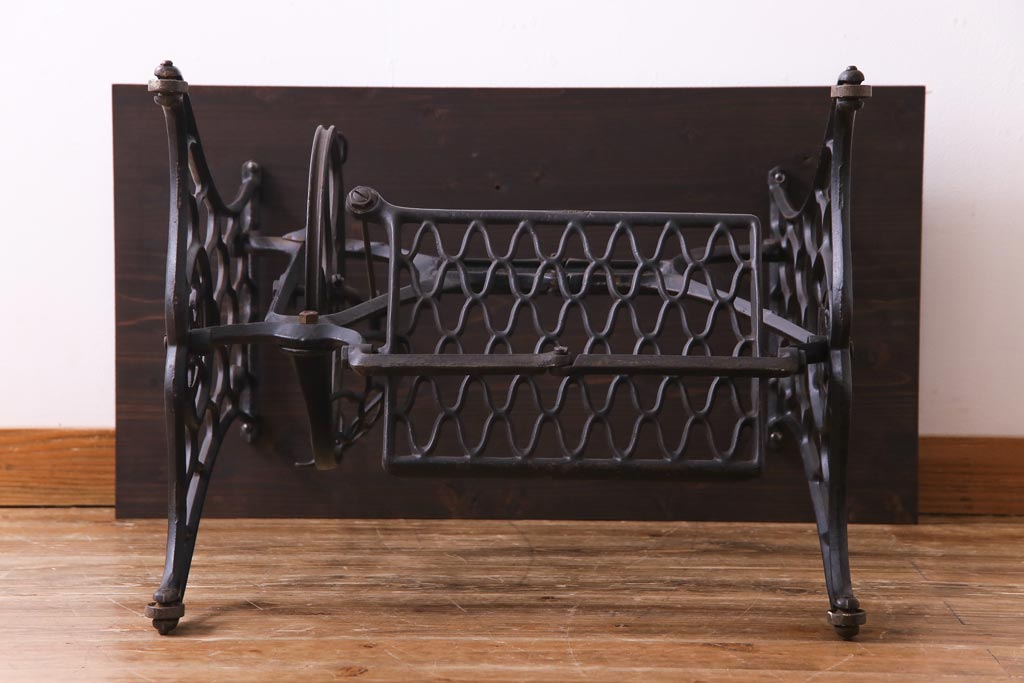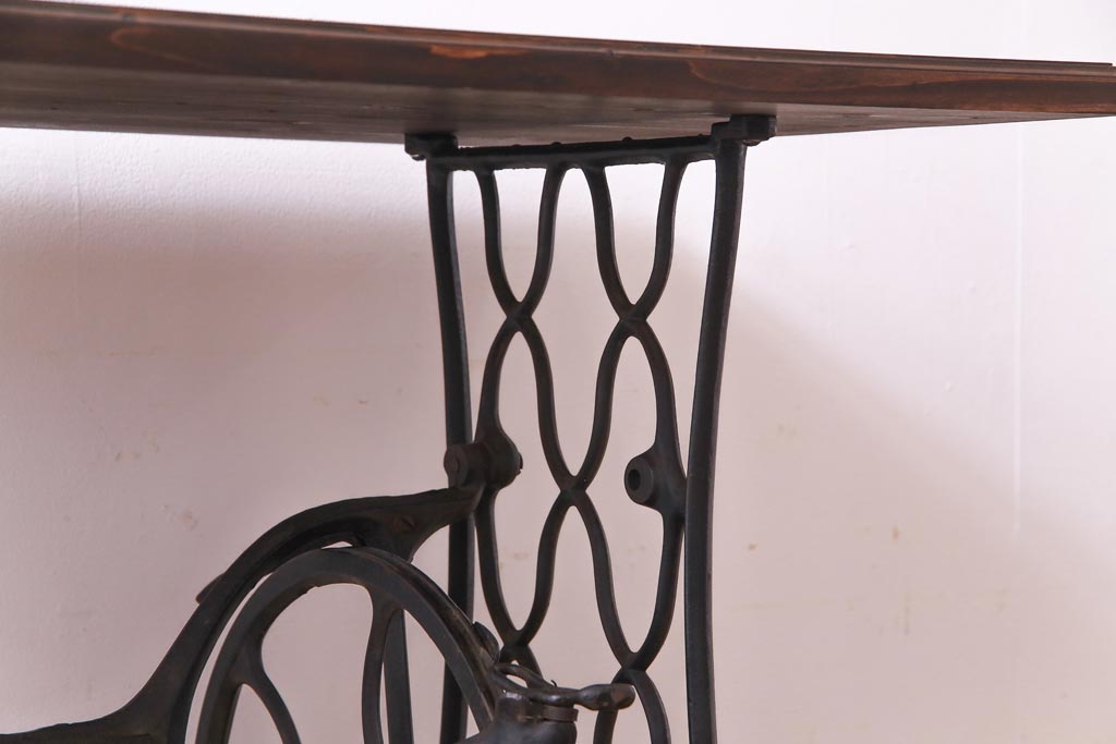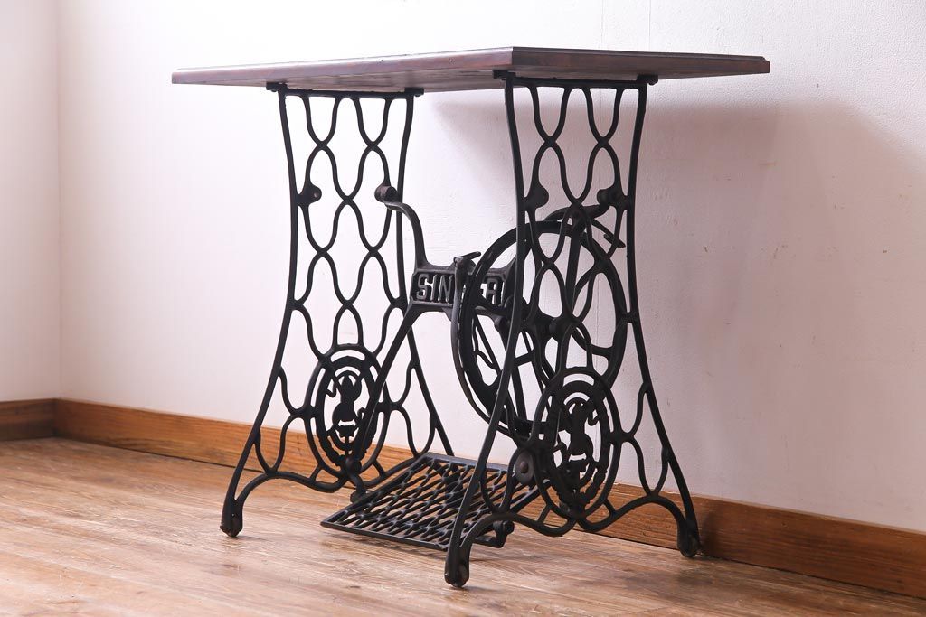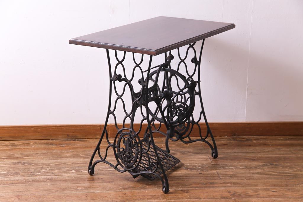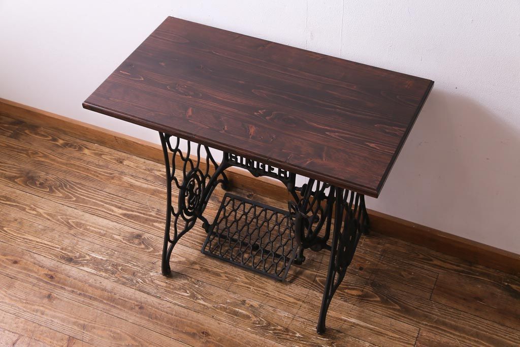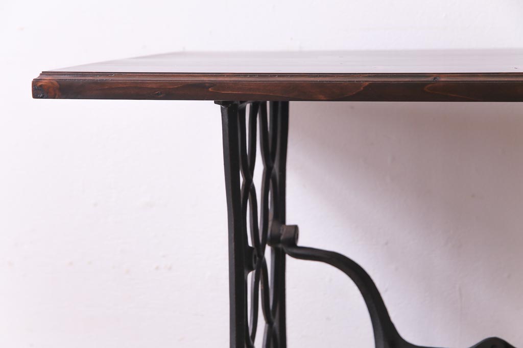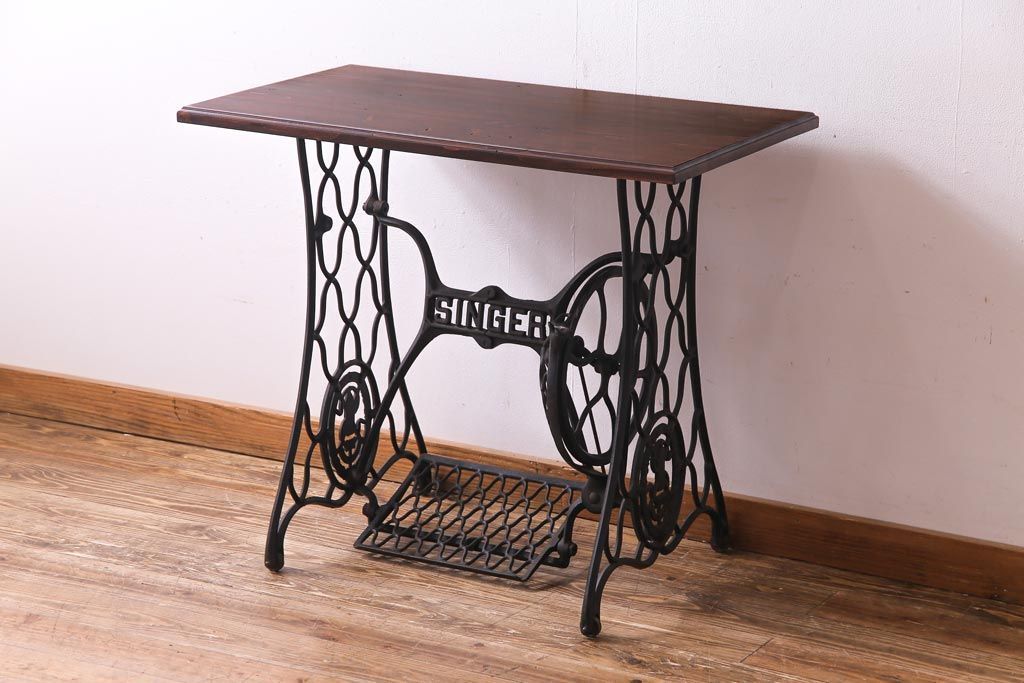ラフジュ工房> テーブル> 鉄脚テーブル > シンガー社(SINGER) ヒノキ材 リメイク シャビーな風合いがお洒落なミシンテーブル(シンガーミシン、サイドテーブル、カフェテーブル)