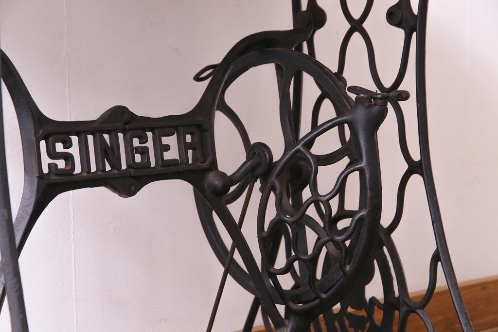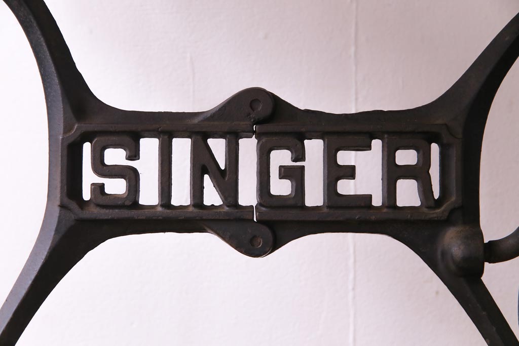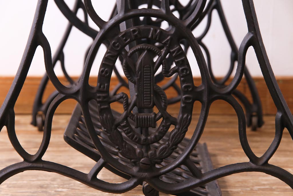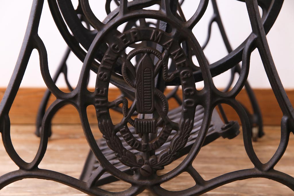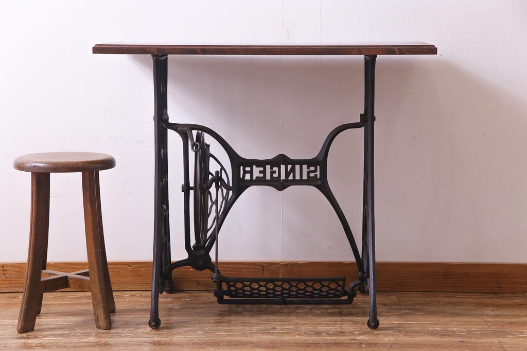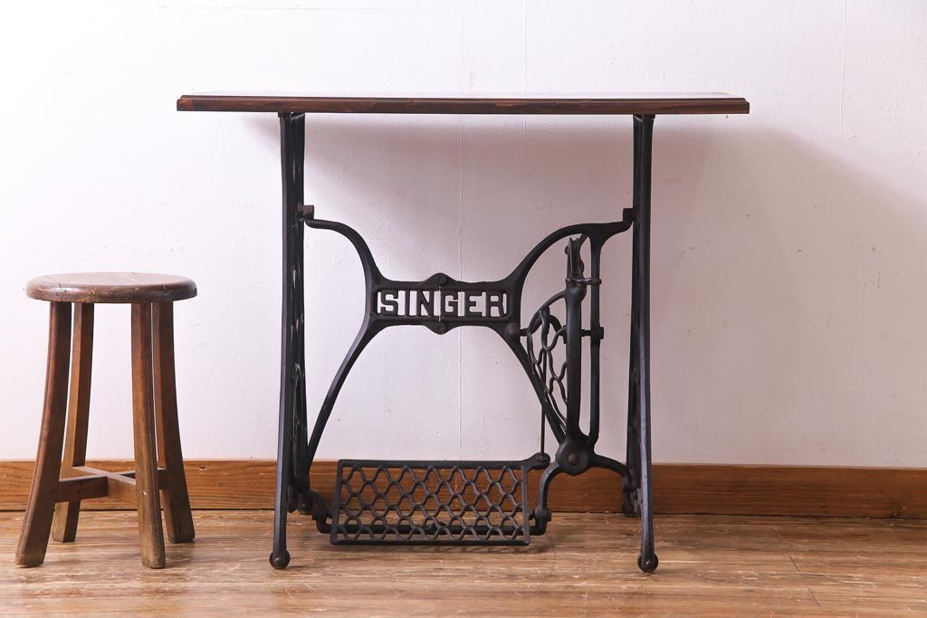 シンガー社(SINGER) ヒノキ材 リメイク シャビーな風合いがお洒落なミシンテーブル(シンガーミシン、サイドテーブル、カフェテーブル)