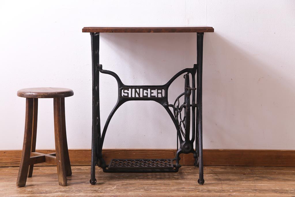 シンガー社(SINGER) ヒノキ材リメイク シャビーな風合いがお洒落なミシンテーブル(シンガーミシン、サイドテーブル、カフェテーブル)(2)です。