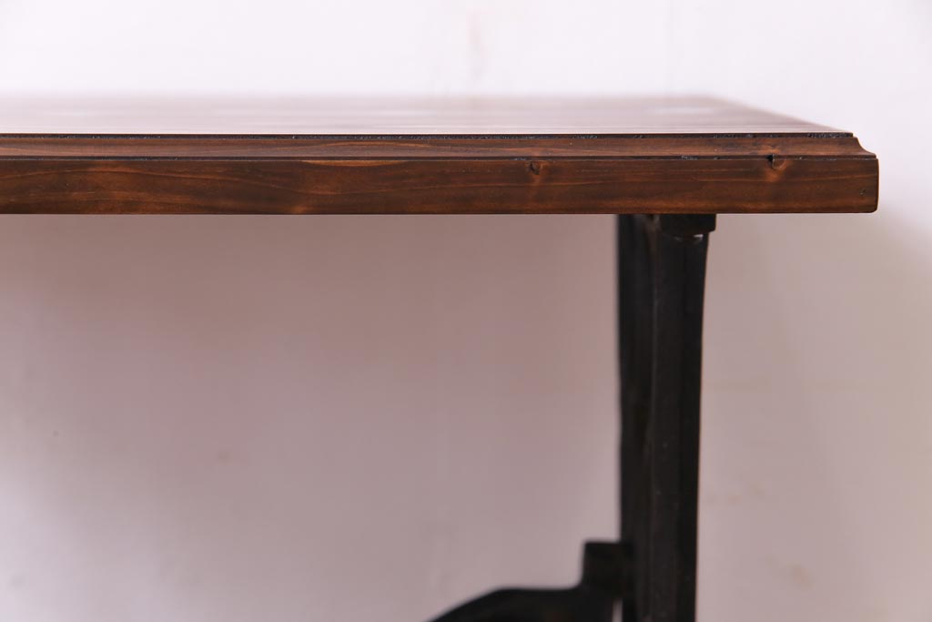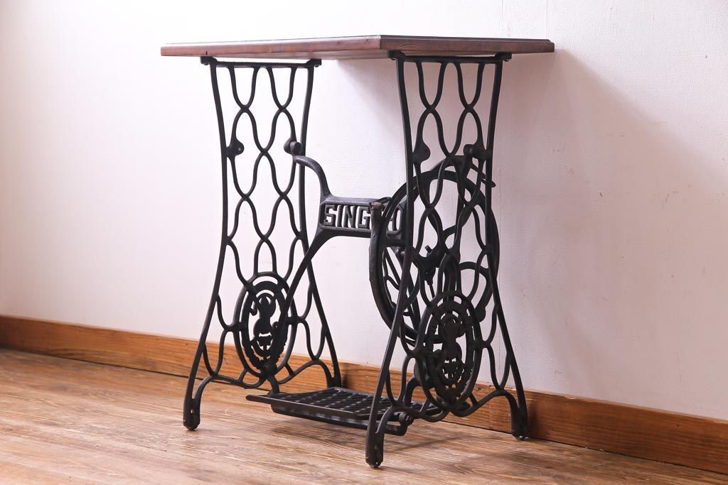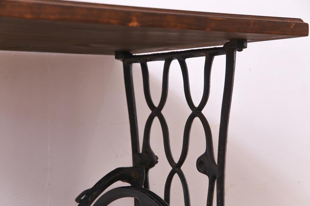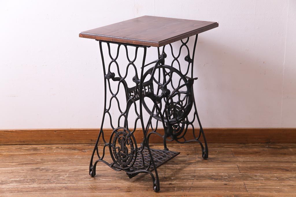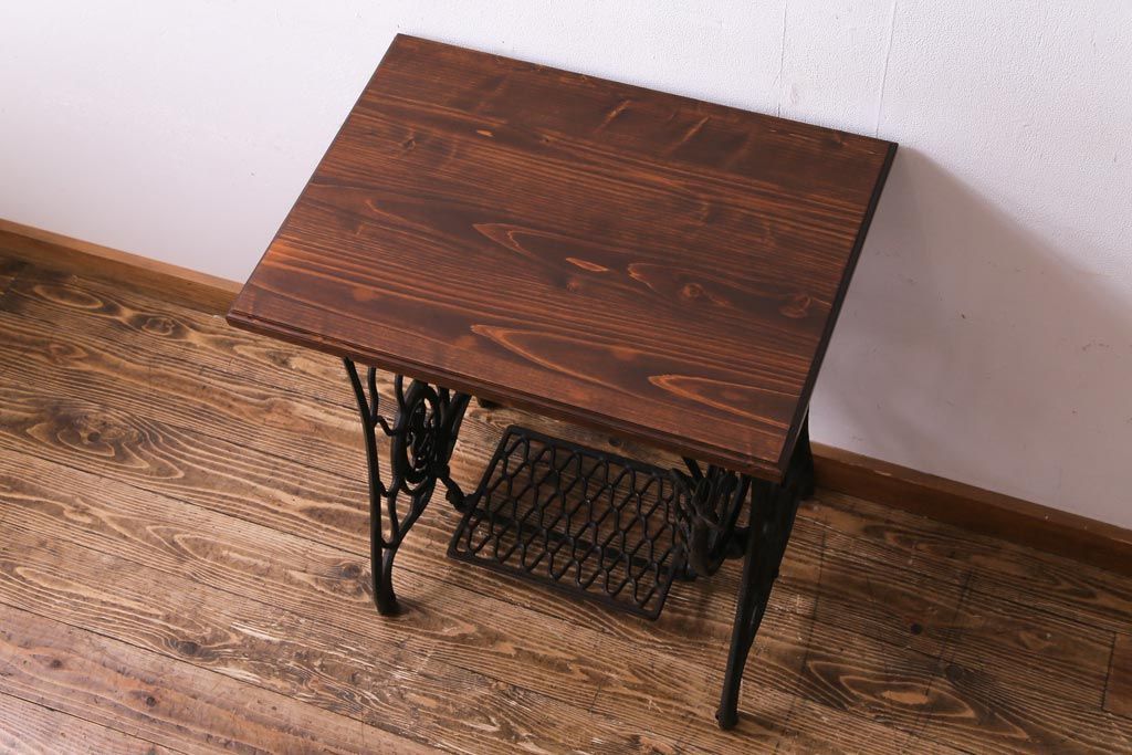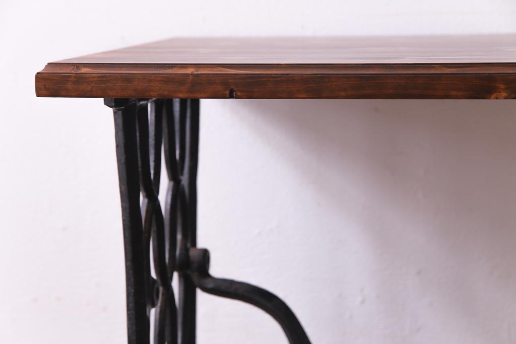 テーブル> 鉄脚テーブル > シンガー社(SINGER) ヒノキ材リメイク シャビーな風合いがお洒落なミシンテーブル(シンガーミシン、サイドテーブル、カフェテーブル)(2)