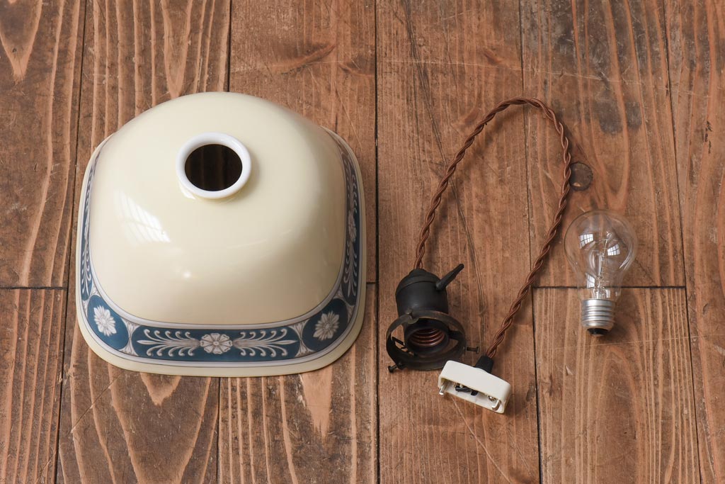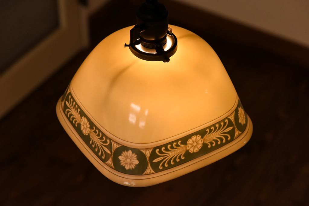 オールドノリタケ・則武(日陶) 四角形 草花モチーフが上品なシェード(電笠、天井照明)(1)