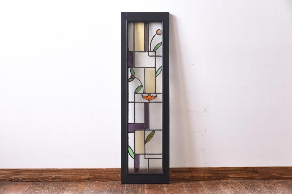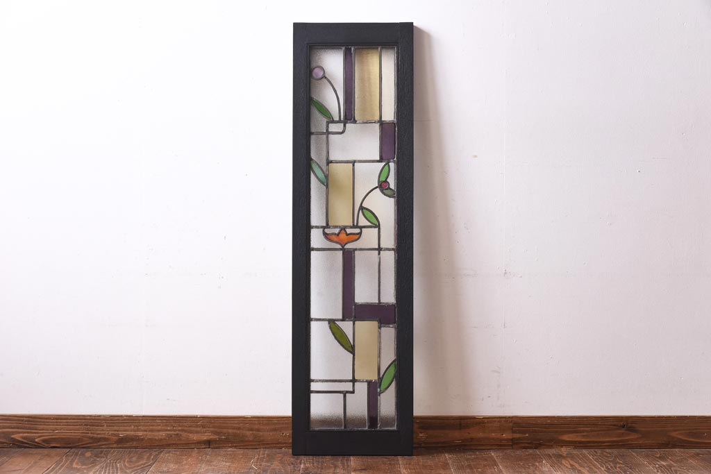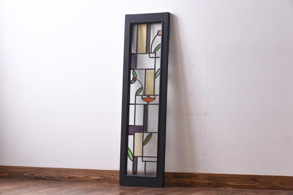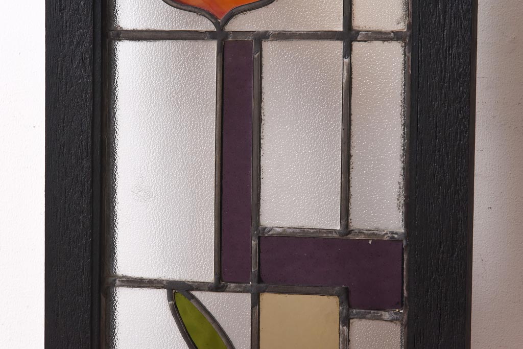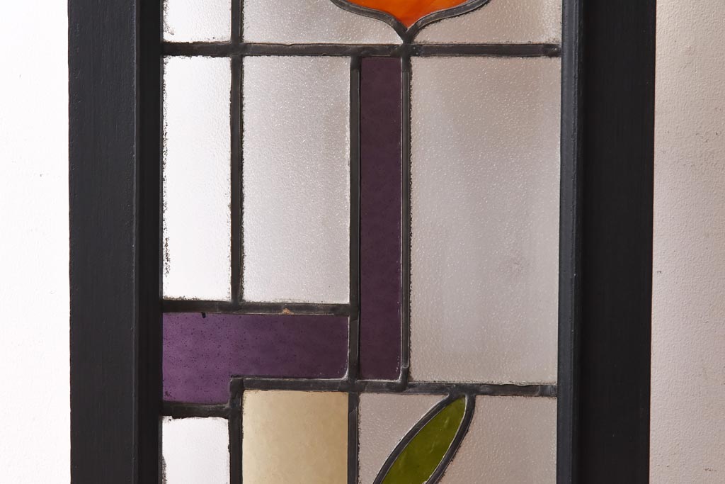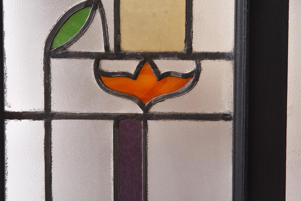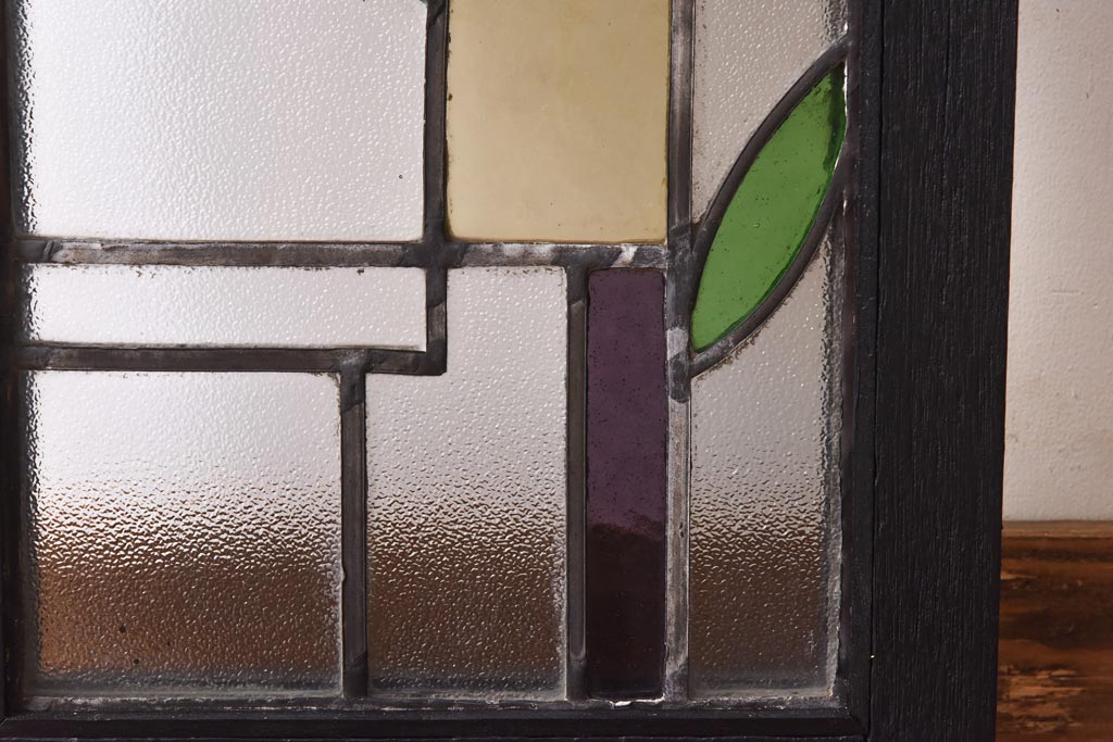 アンティーク雑貨 【N様ご成約分】和製アンティーク ペイント レトロなステンドグラス(フィックス窓、明り取り、はめ殺し)(1)