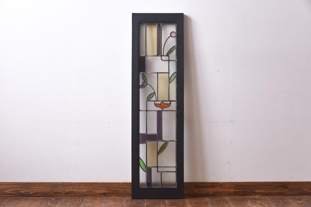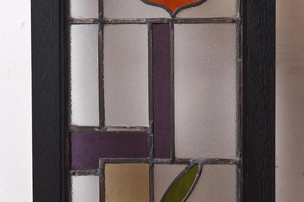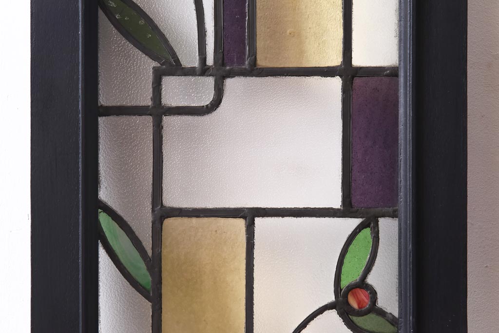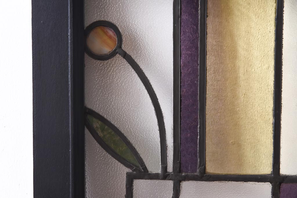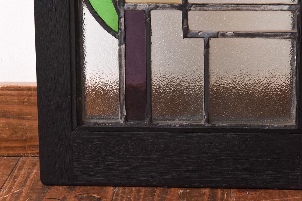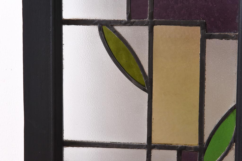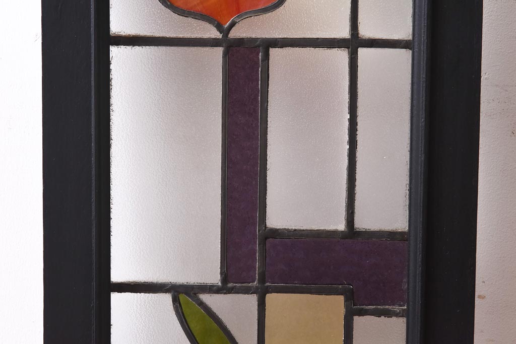 アンティーク雑貨 【N様ご成約分】和製アンティーク ペイント レトロなステンドグラス(フィックス窓、明り取り、はめ殺し)(2)