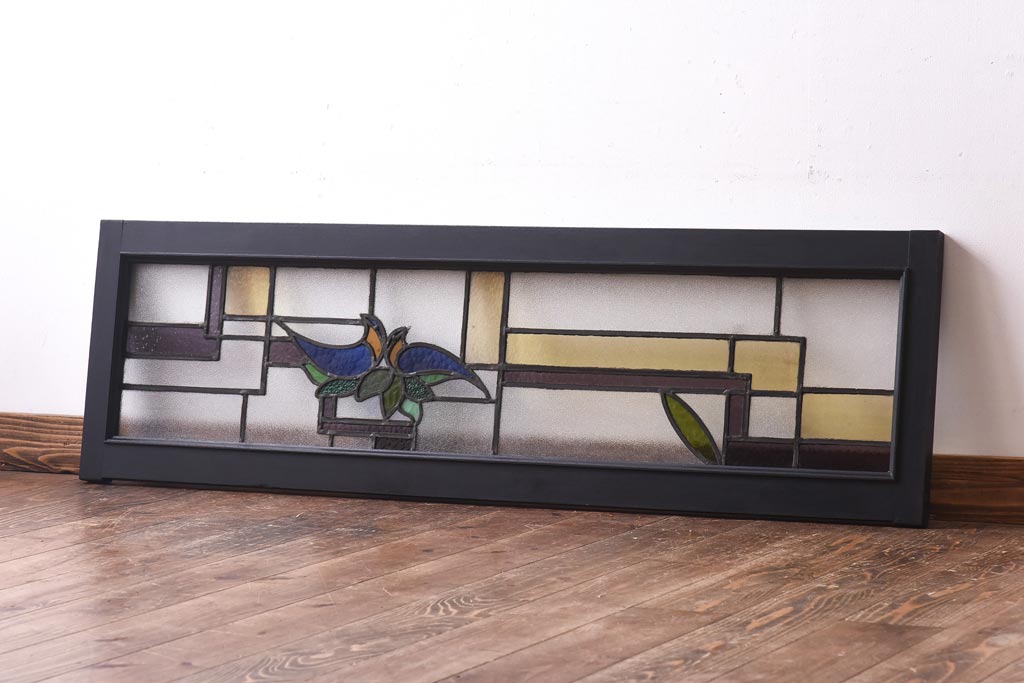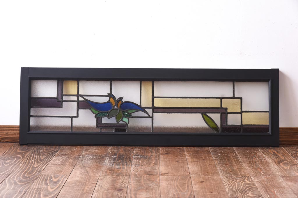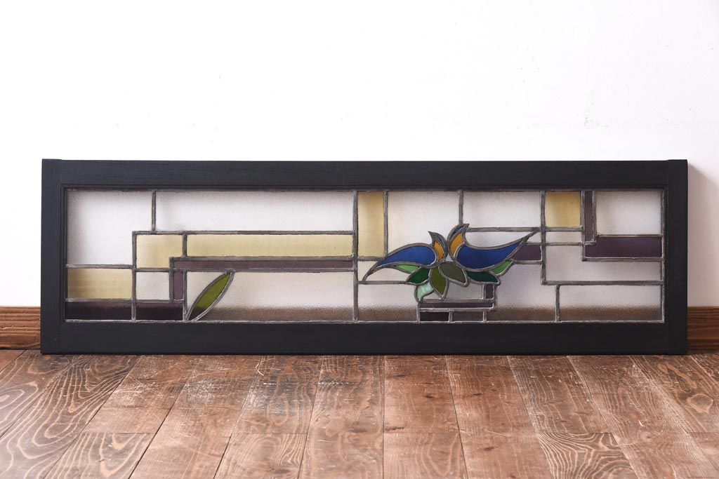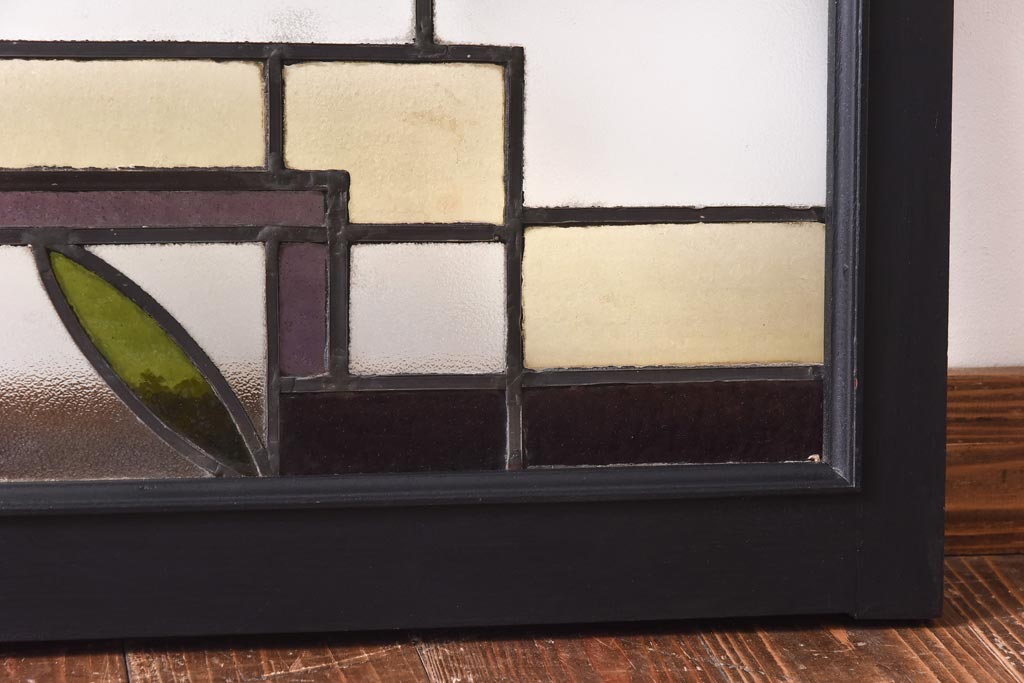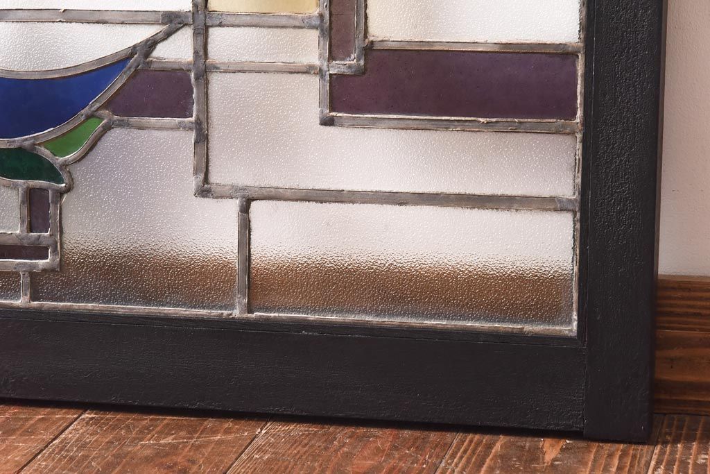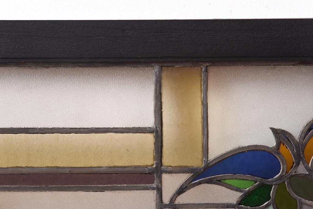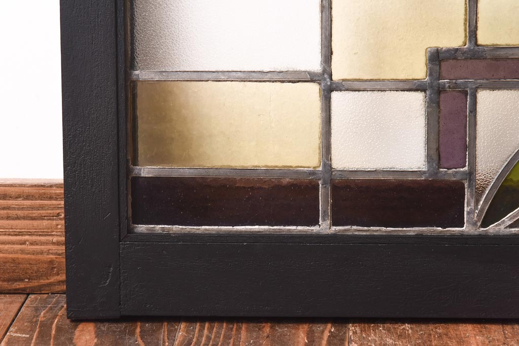 アンティーク雑貨 和製アンティーク ペイント レトロなステンドグラス(フィックス窓、明り取り、はめ殺し)