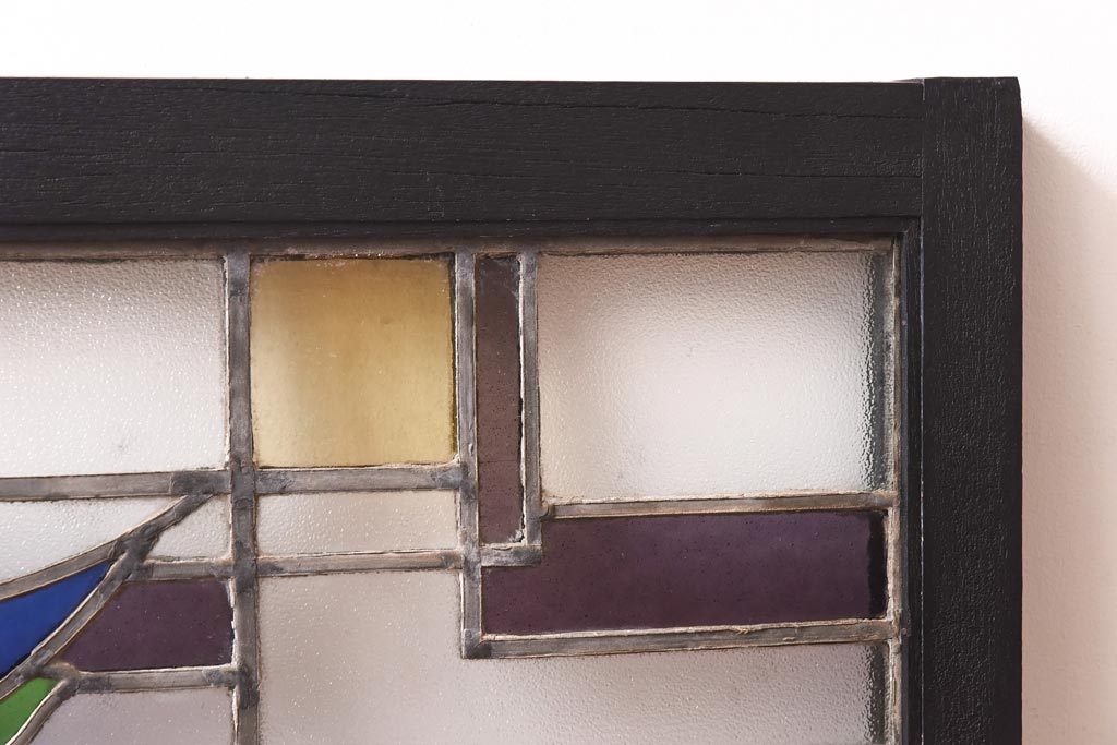 ラフジュ工房> ステンドグラス > アンティーク雑貨 和製アンティーク ペイント レトロなステンドグラス(フィックス窓、明り取り、はめ殺し)