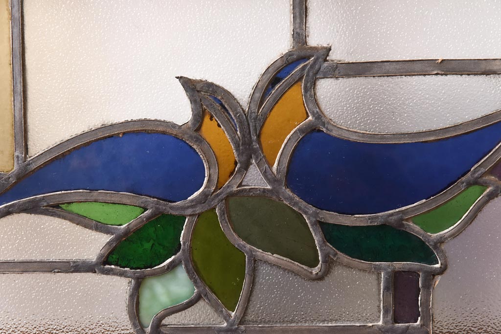 ラフジュ工房> ドア・建具> ガラス戸 > アンティーク雑貨 和製アンティーク ペイント レトロなステンドグラス(フィックス窓、明り取り、はめ殺し)