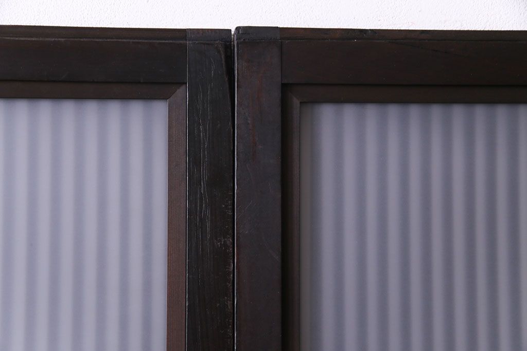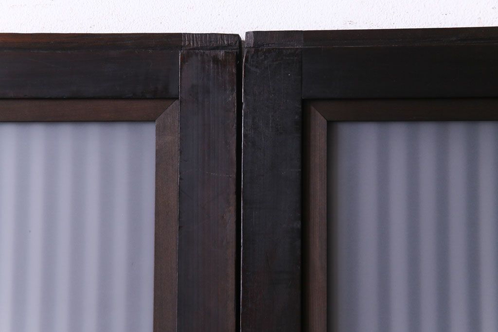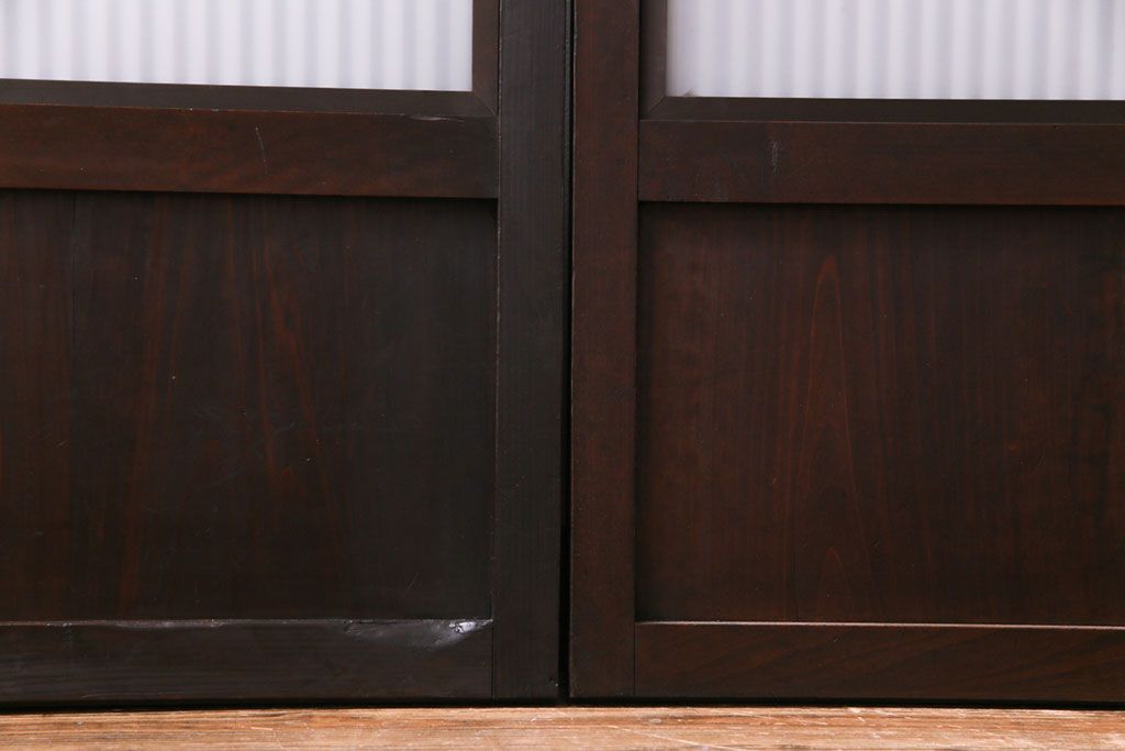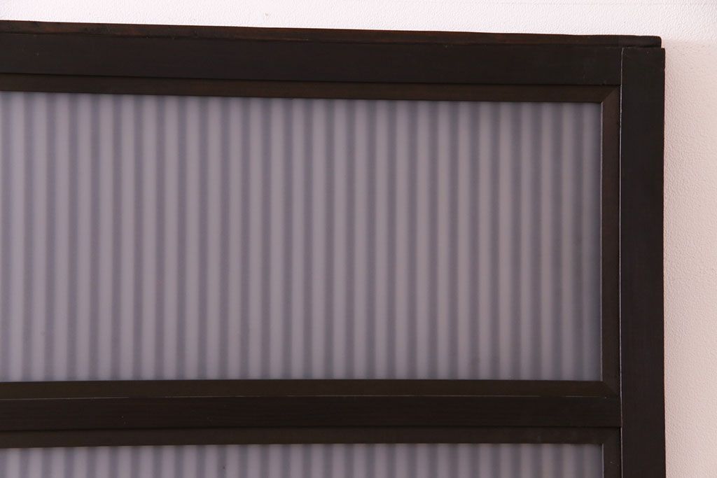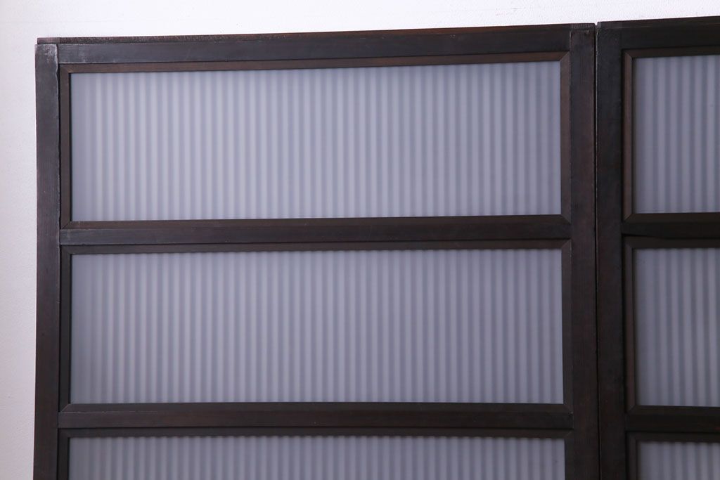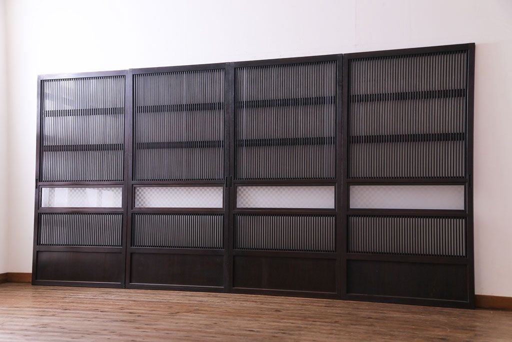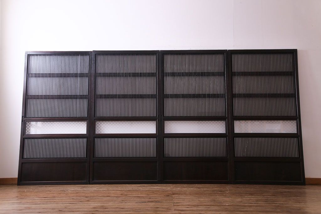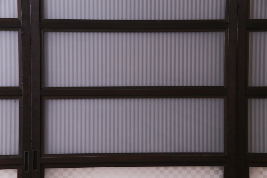 和製アンティーク 倹飩式裏ガラス 市松模様のガラスが目を引くモダンな格子戸(ガラス帯戸、引き戸、ガラス戸)4枚セット