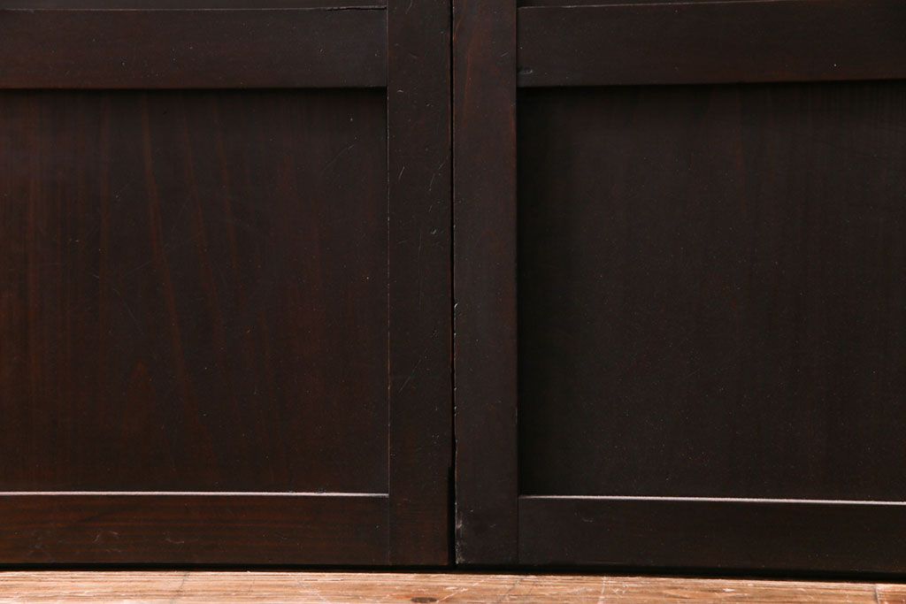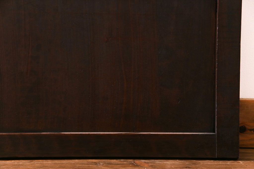 和製アンティーク 倹飩式裏ガラス 市松模様のガラスが目を引くモダンな格子戸(ガラス帯戸、引き戸、ガラス戸)4枚セットです。