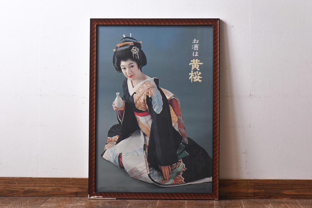 アンティーク雑貨 昭和レトロ 黄桜酒造株式会社「お酒は黄桜」 三浦布美子 額入りポスター(広告)