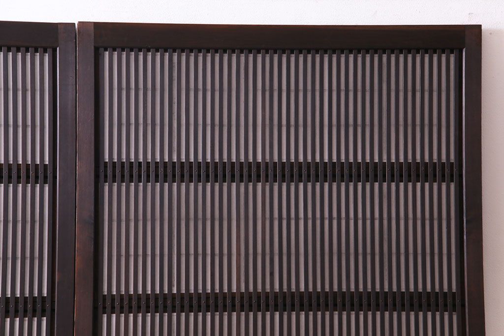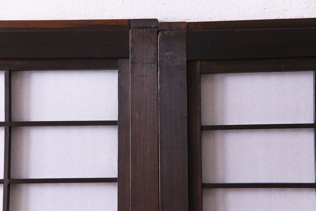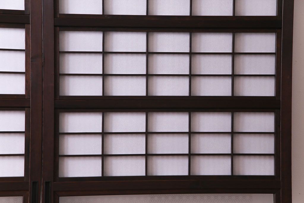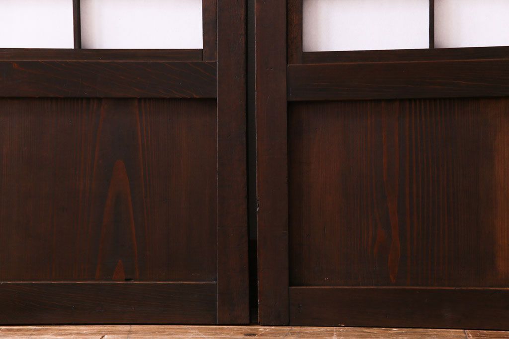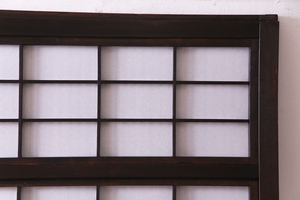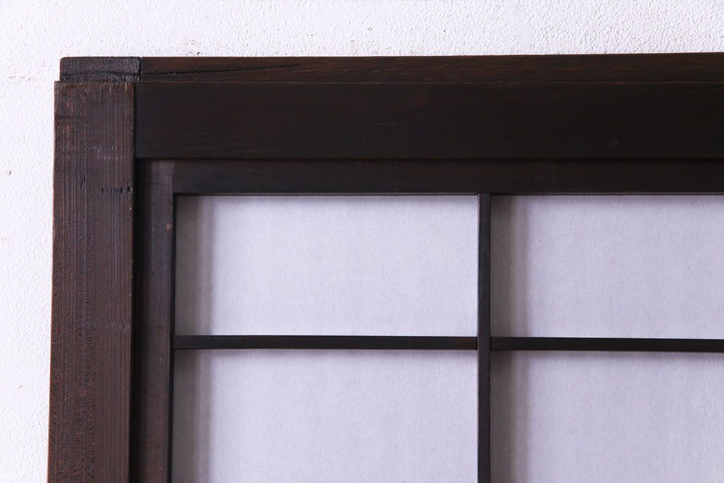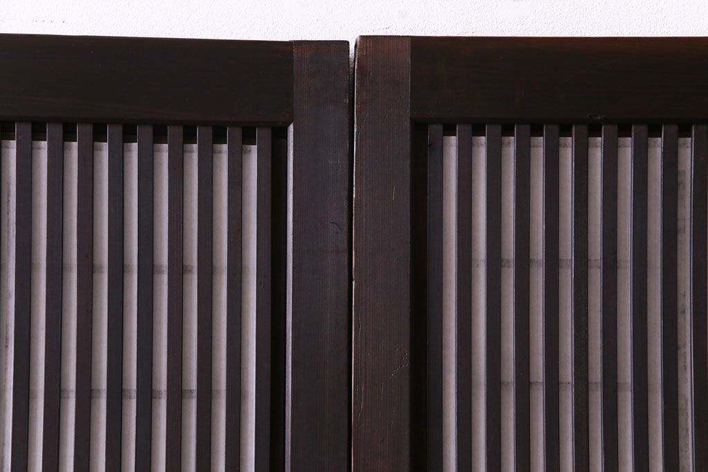 昭和初期 麻の葉ガラス 裏障子付き 和の雰囲気を引き立てる格子戸(ガラス帯戸、引き戸、建具)2枚セット