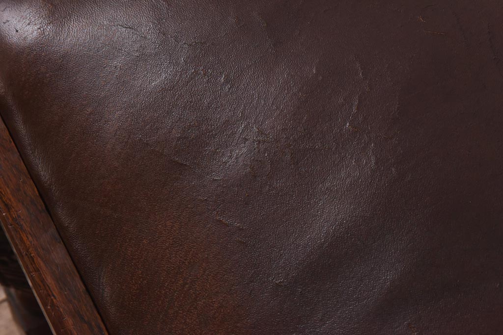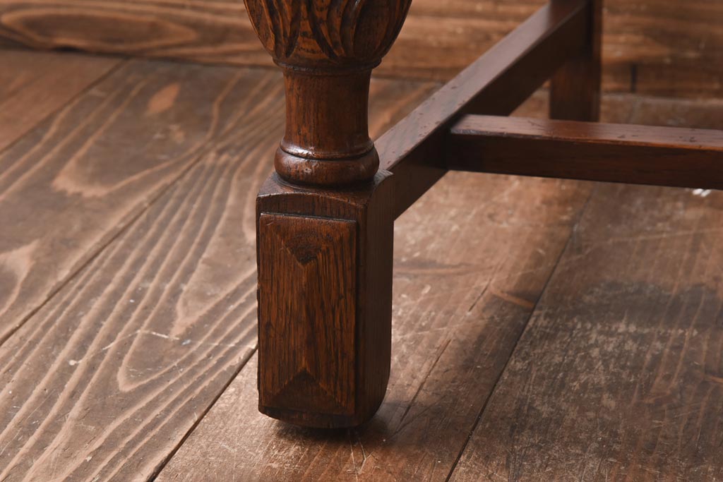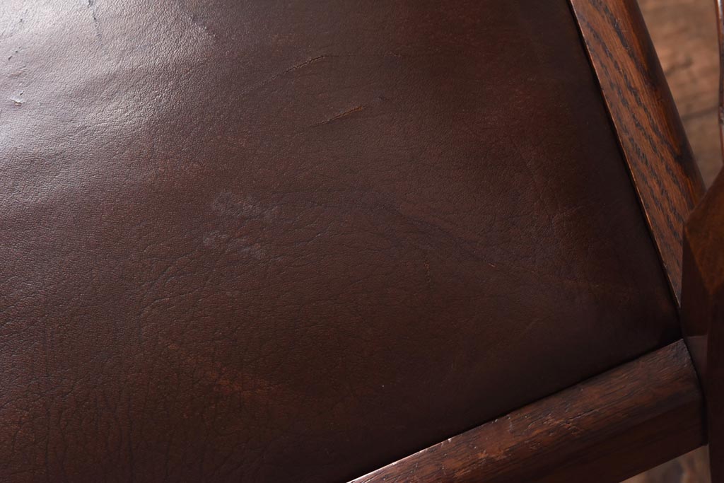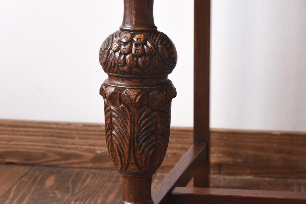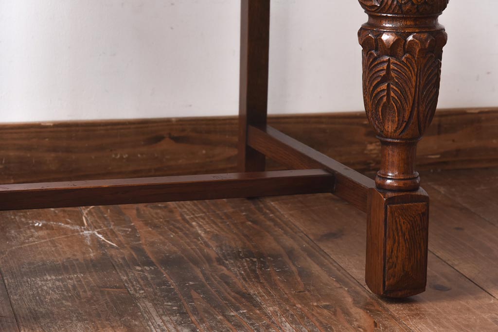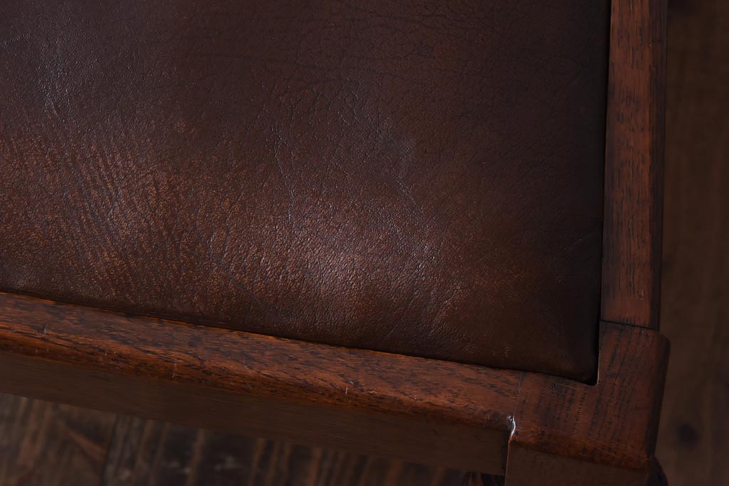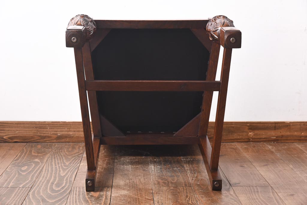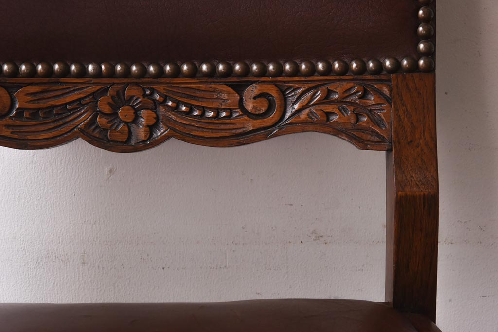 アンティーク家具 イギリスアンティーク オーク材 本革 彫刻の意匠がおしゃれなチェア(ダイニングチェア、椅子)(1)