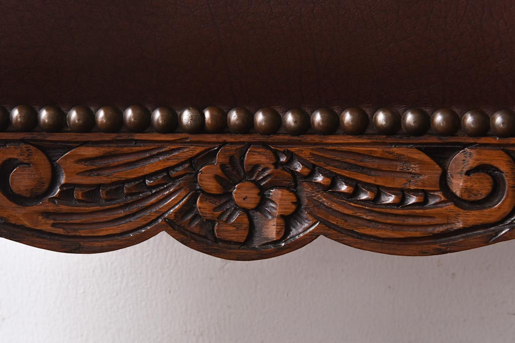 ラフジュ工房> 椅子・ベンチ> サロンチェア > アンティーク家具 イギリスアンティーク オーク材 本革 彫刻の意匠がおしゃれなチェア(ダイニングチェア、椅子)(1)