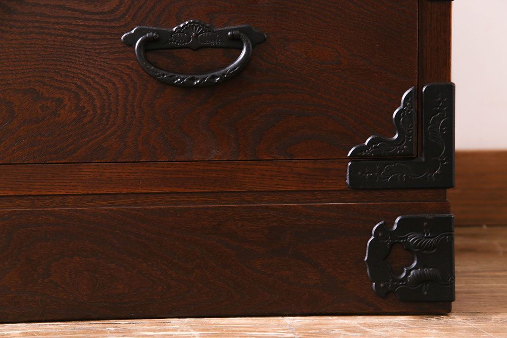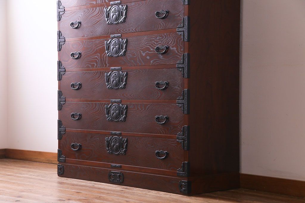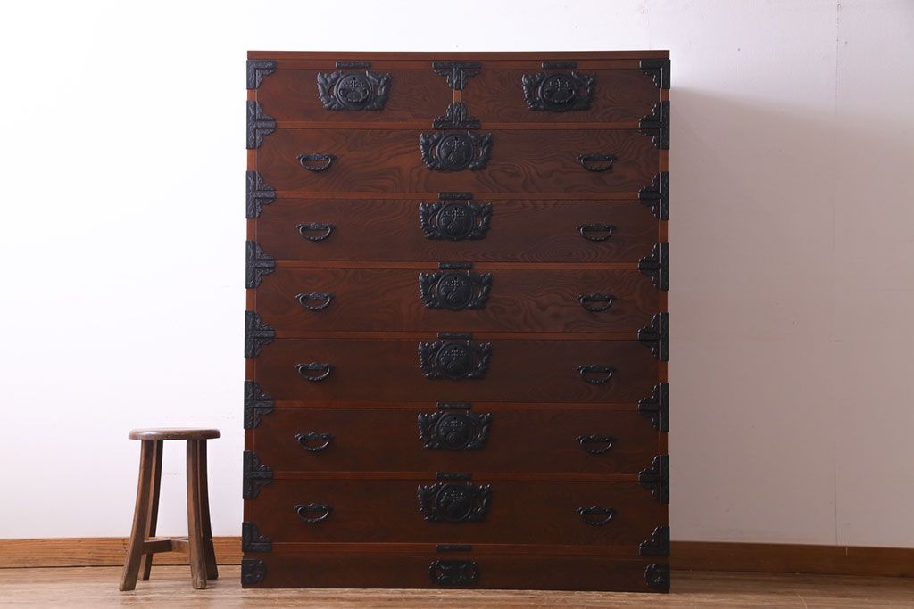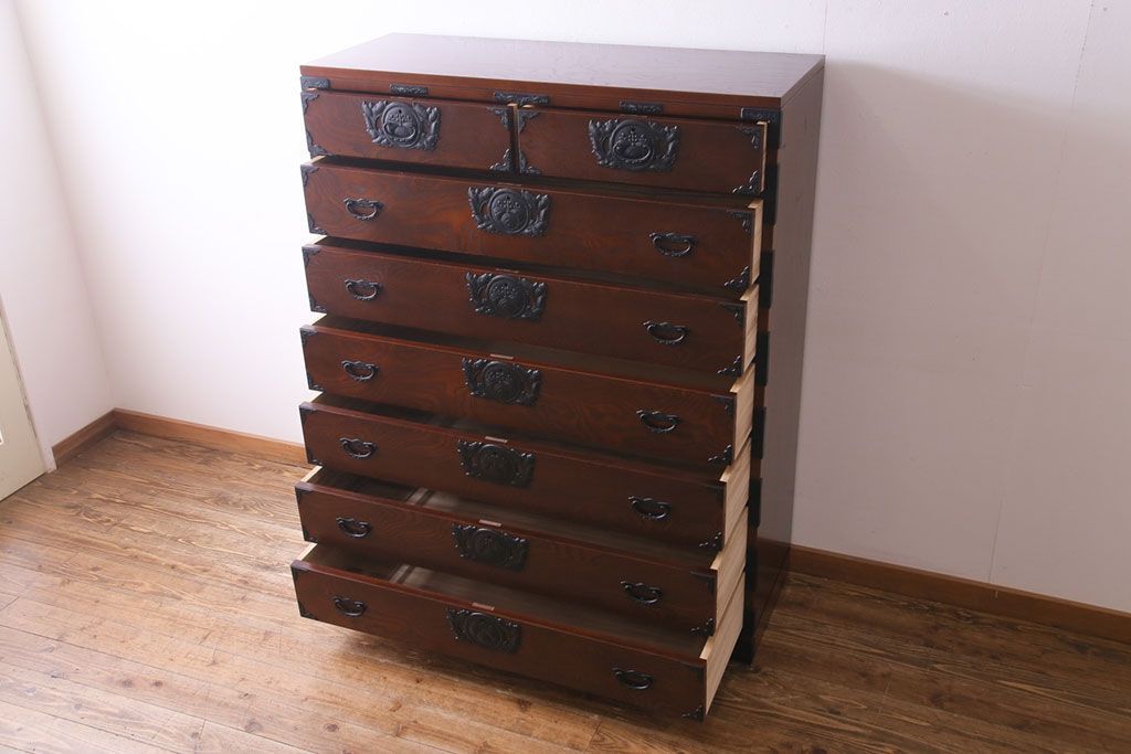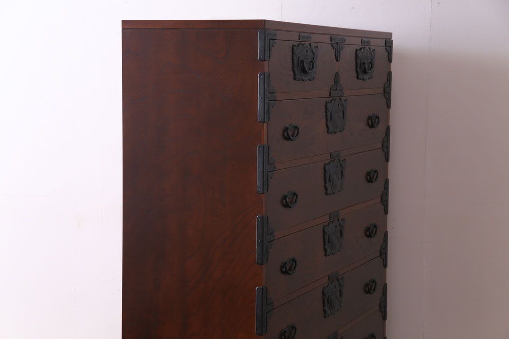 中古美品 南部箪笥 豪華な手打ち彫金金具が目を惹く衣装箪笥(引き出し、整理箪笥)(定価約70万円)