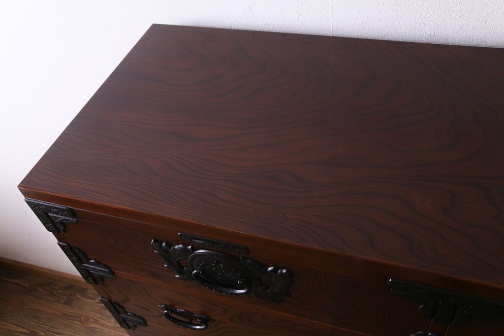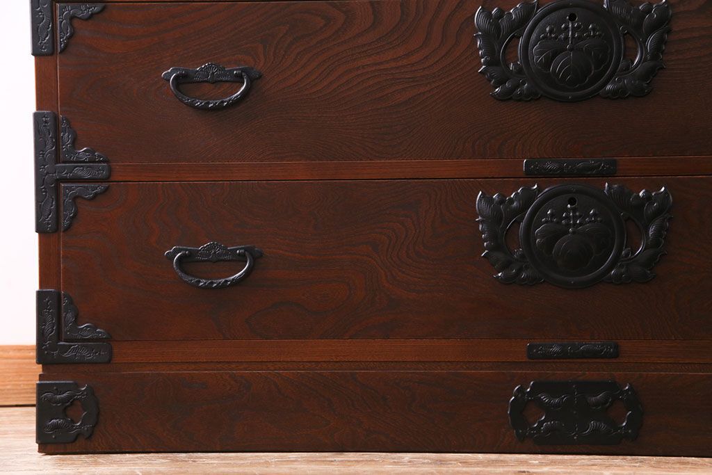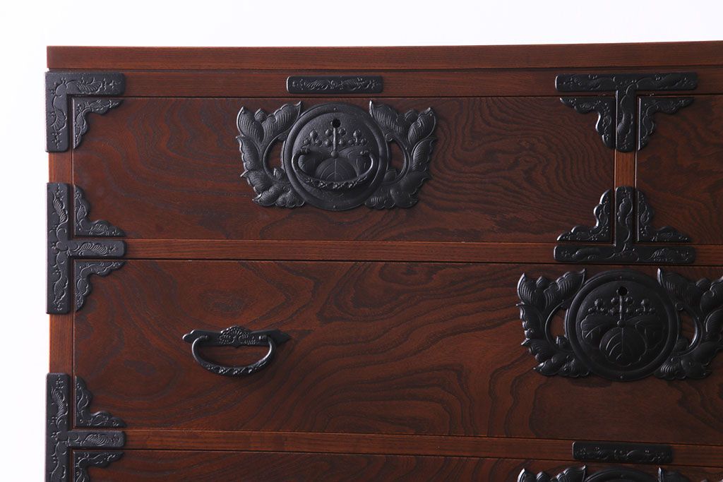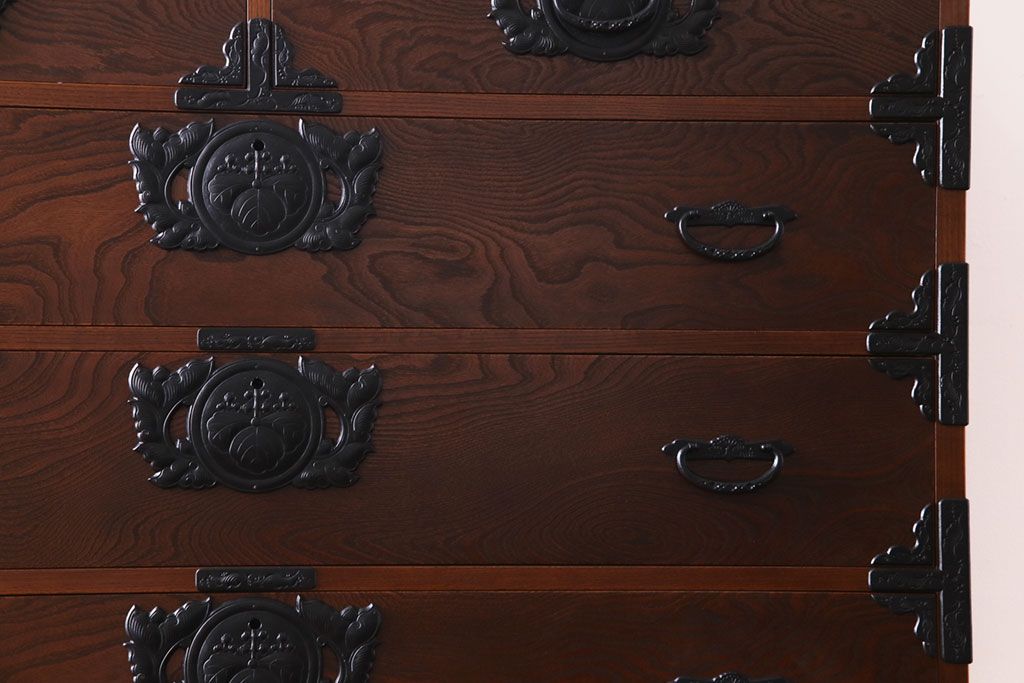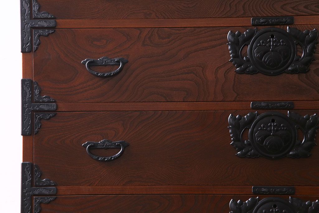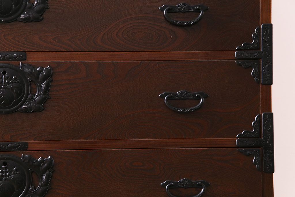 ラフジュ工房> 和箪笥 > 中古美品 南部箪笥 豪華な手打ち彫金金具が目を惹く衣装箪笥(引き出し、整理箪笥)(定価約70万円)