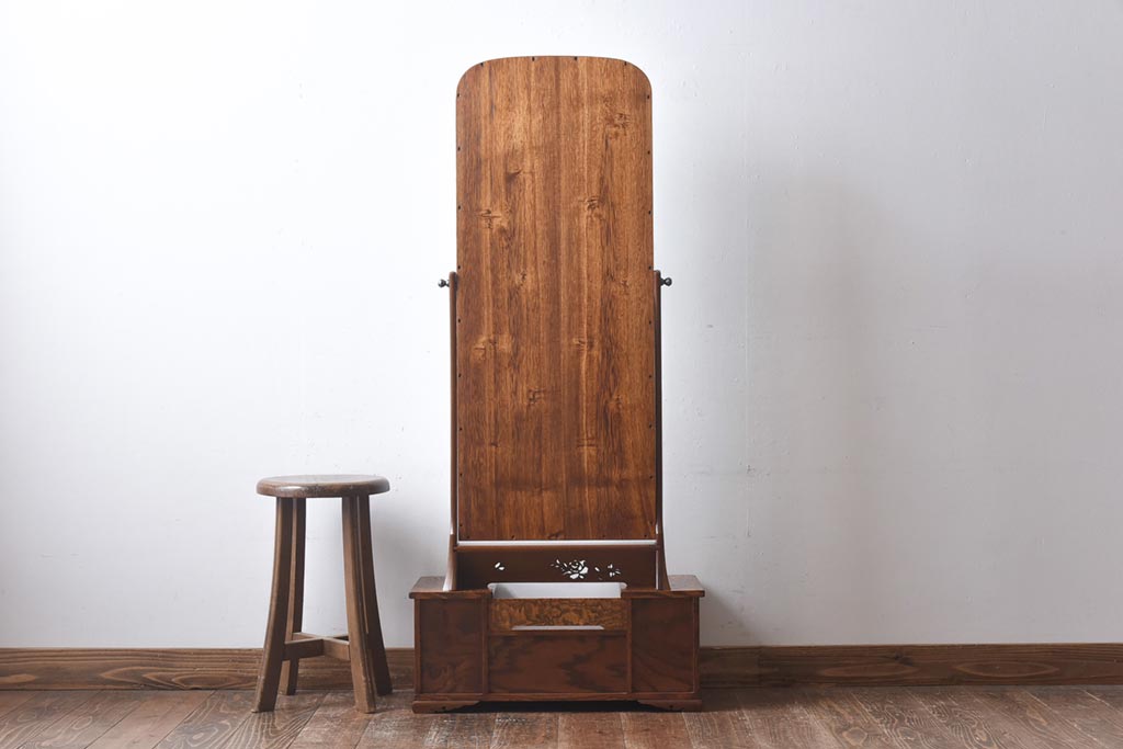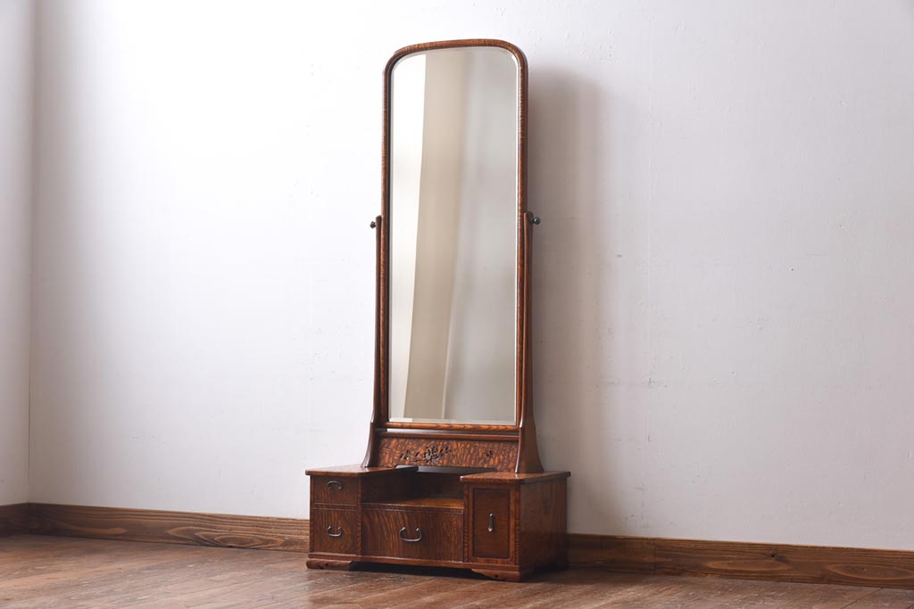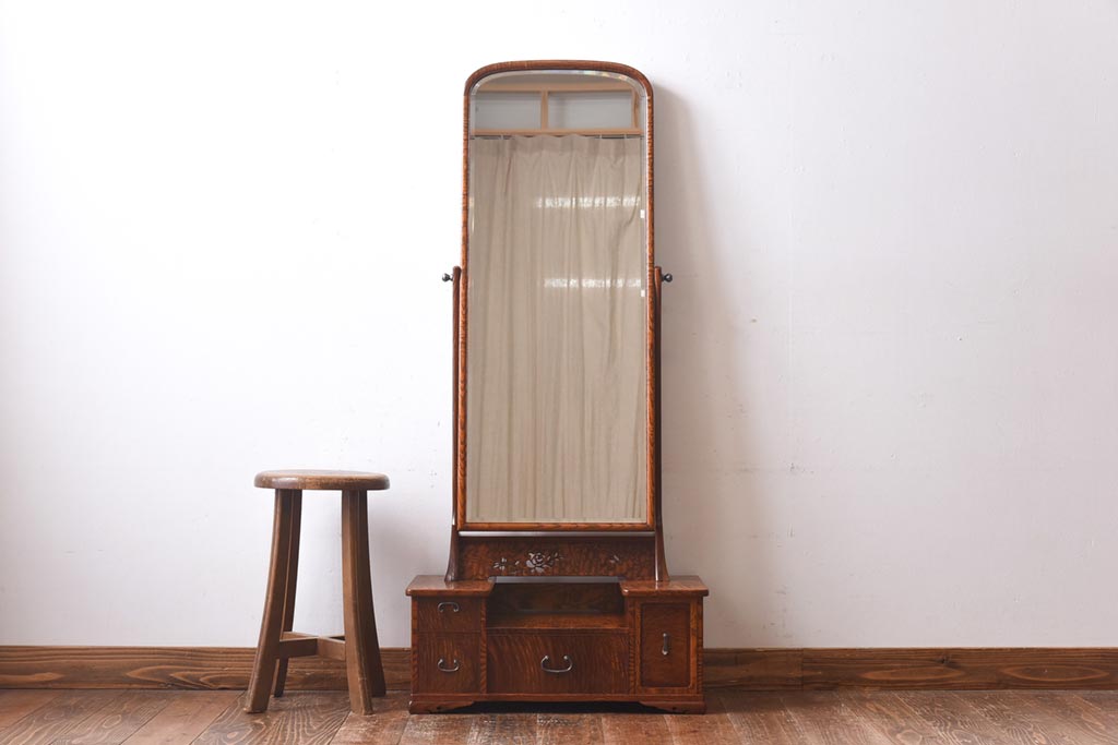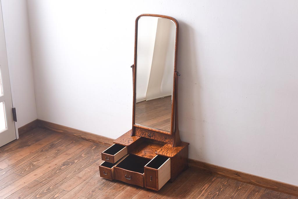 アンティーク雑貨 和製アンティーク タモ玉杢材張り 透かし彫りが上品なドレッサー(鏡台、ミラー)