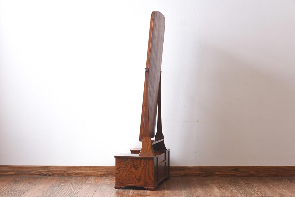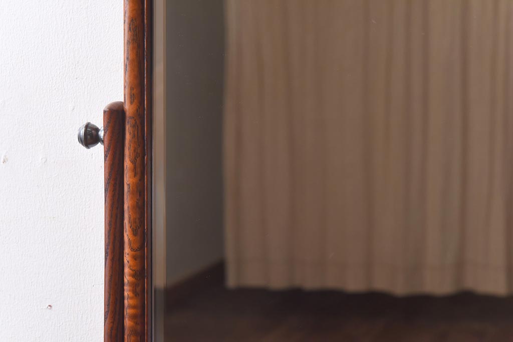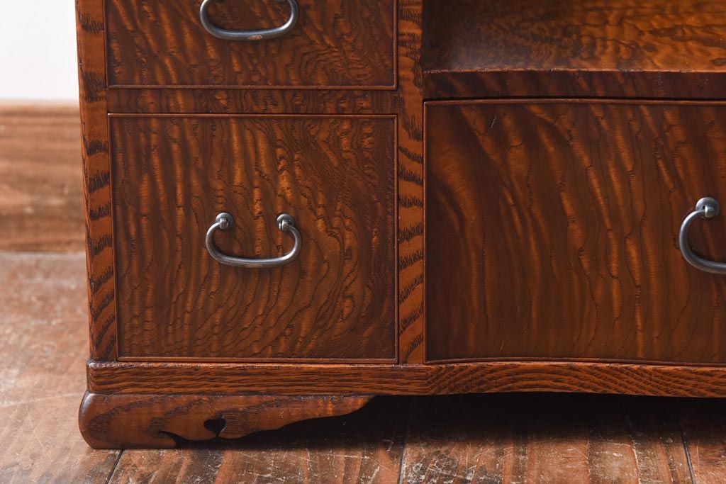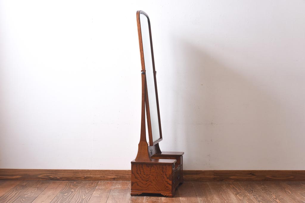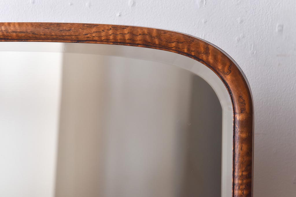 アンティーク雑貨 和製アンティーク タモ玉杢材張り 透かし彫りが上品なドレッサー(鏡台、ミラー)