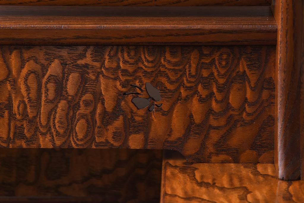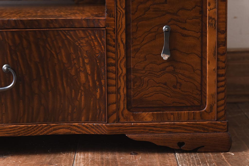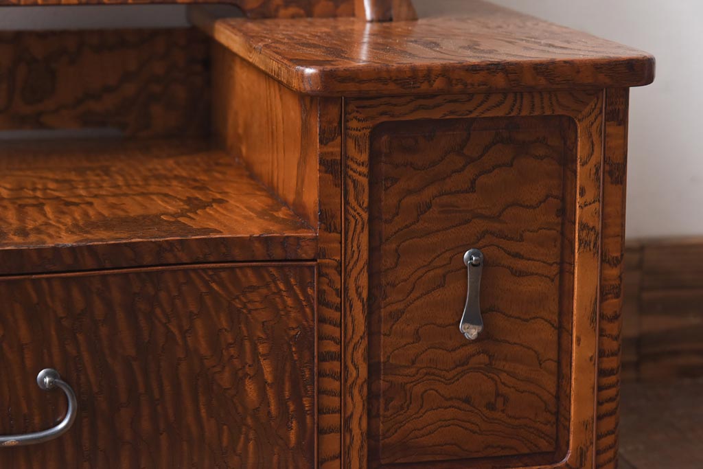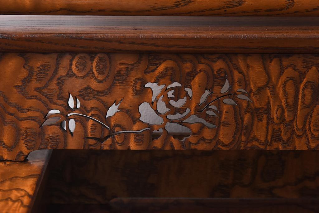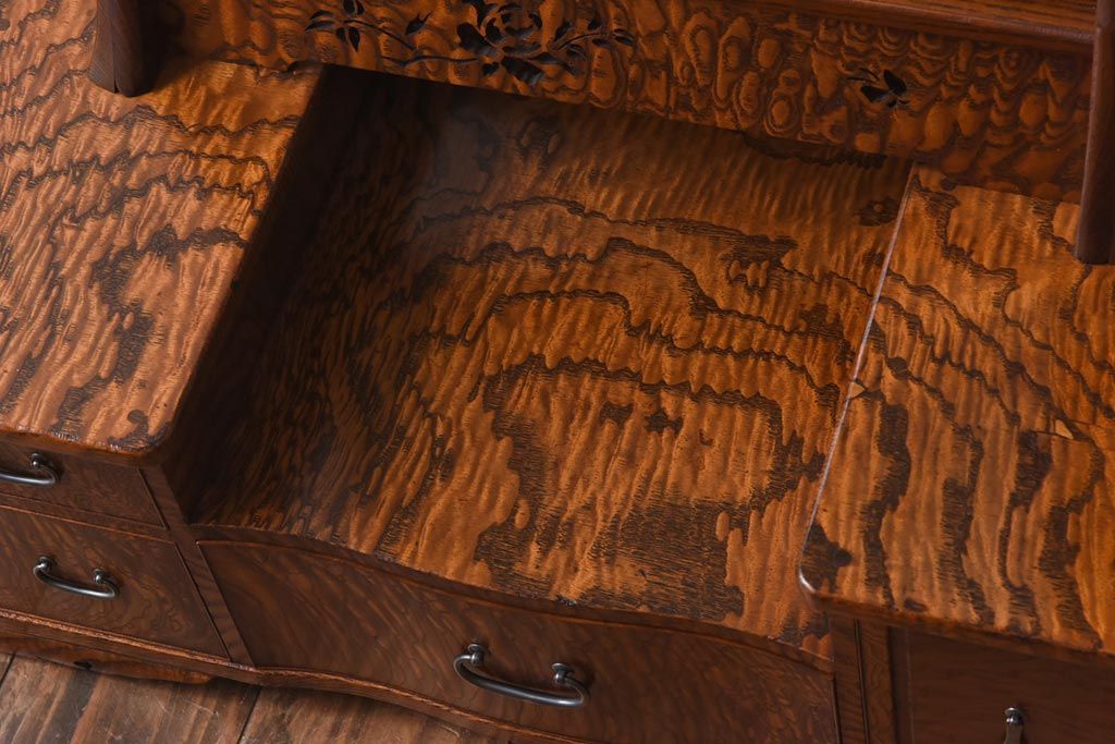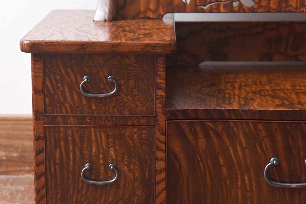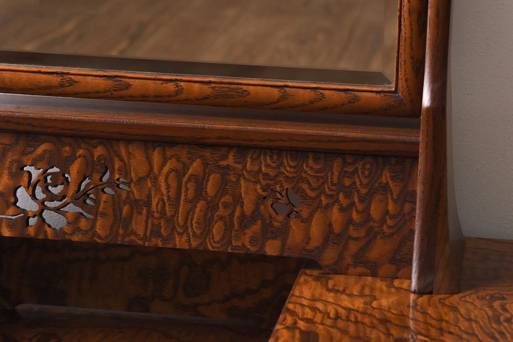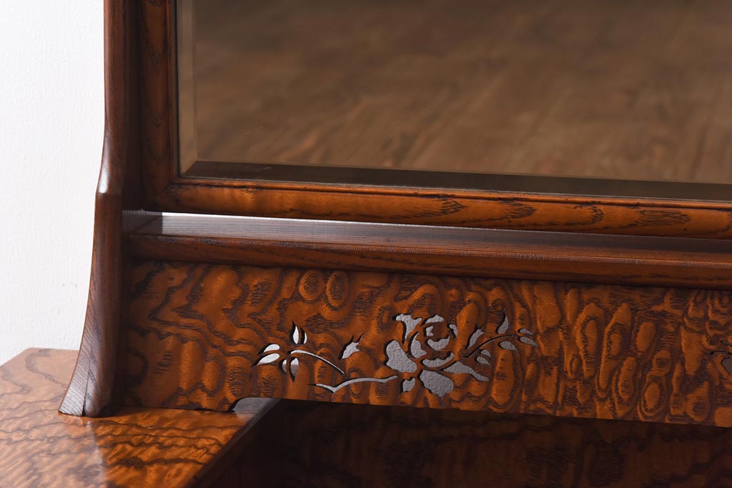 ラフジュ工房> ドレッサー・鏡台 > アンティーク雑貨 和製アンティーク タモ玉杢材張り 透かし彫りが上品なドレッサー(鏡台、ミラー)