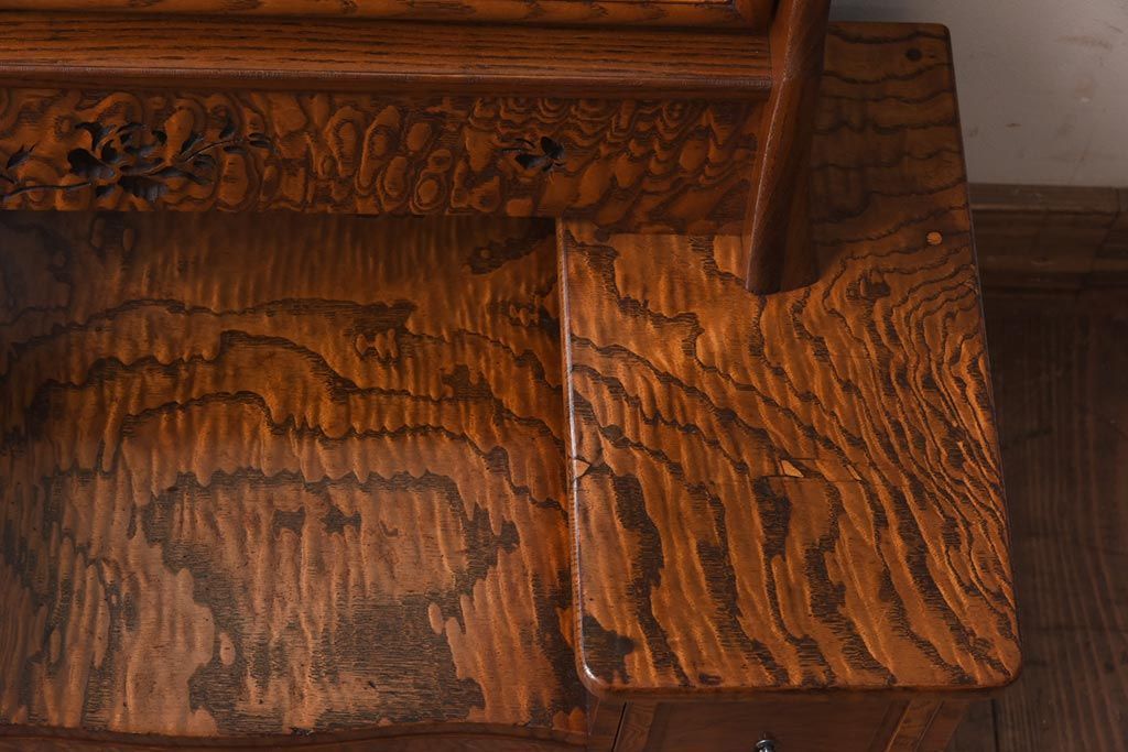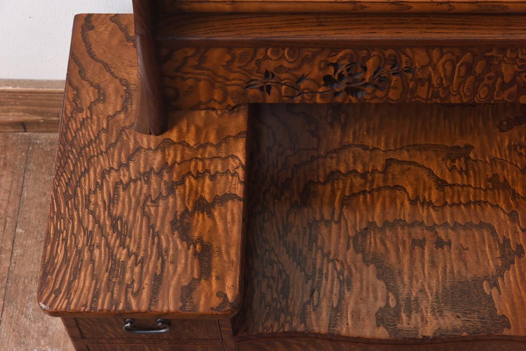 ラフジュ工房> ドレッサー・鏡台> 鏡台 > アンティーク雑貨 和製アンティーク タモ玉杢材張り 透かし彫りが上品なドレッサー(鏡台、ミラー)