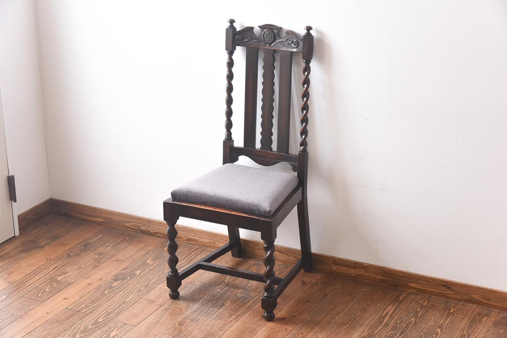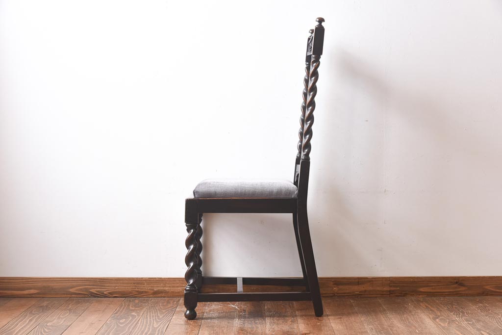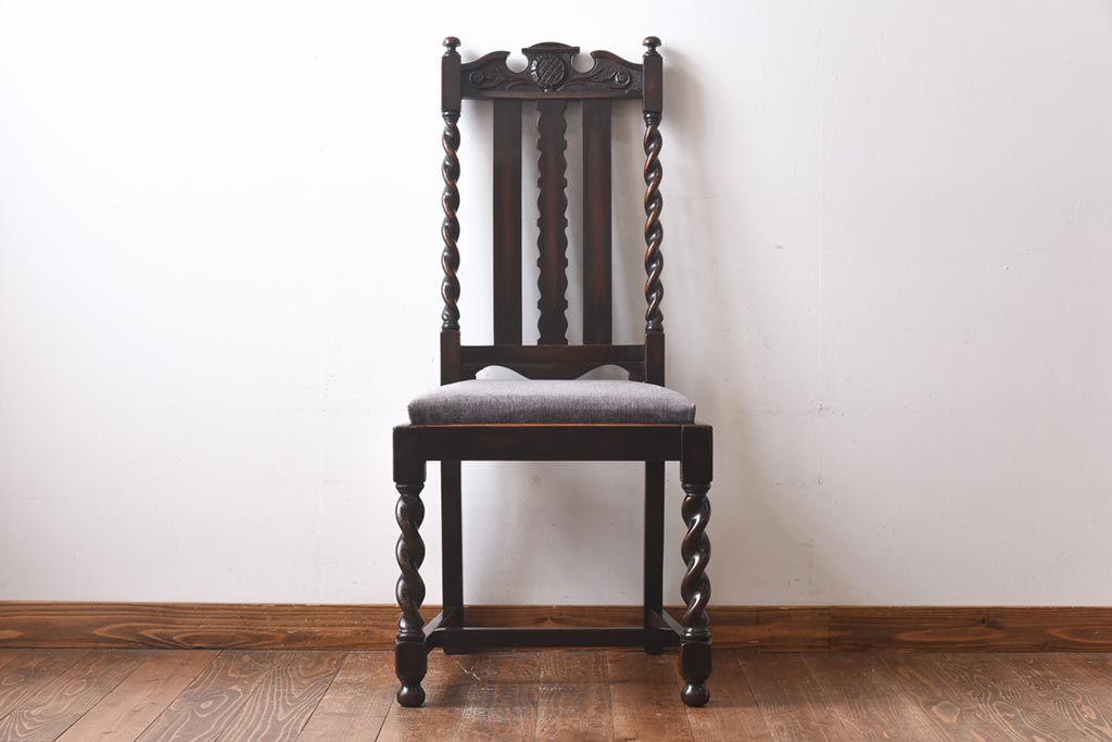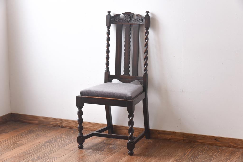 アンティーク家具 イギリスアンティーク 気品漂うバーリーシュガーツイストチェア(ダイニングチェア、椅子)(1)